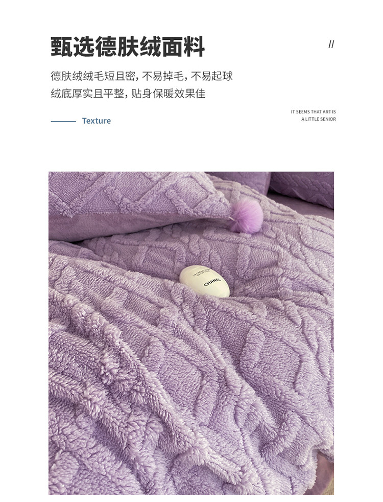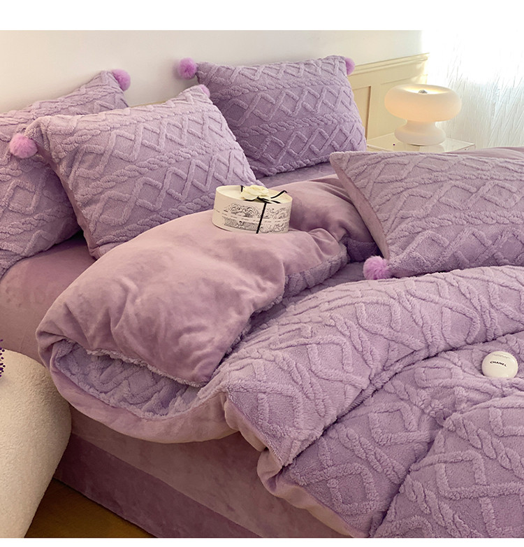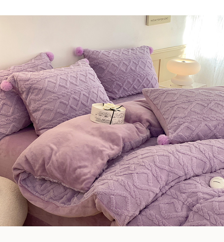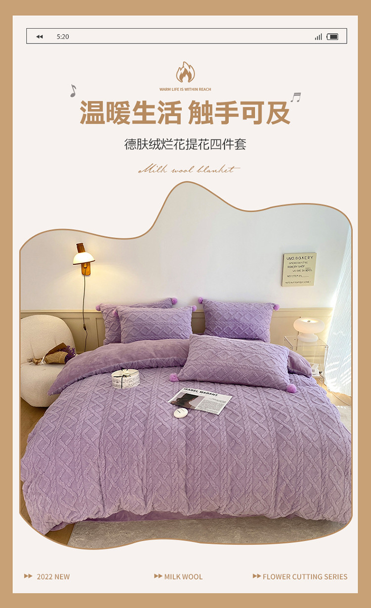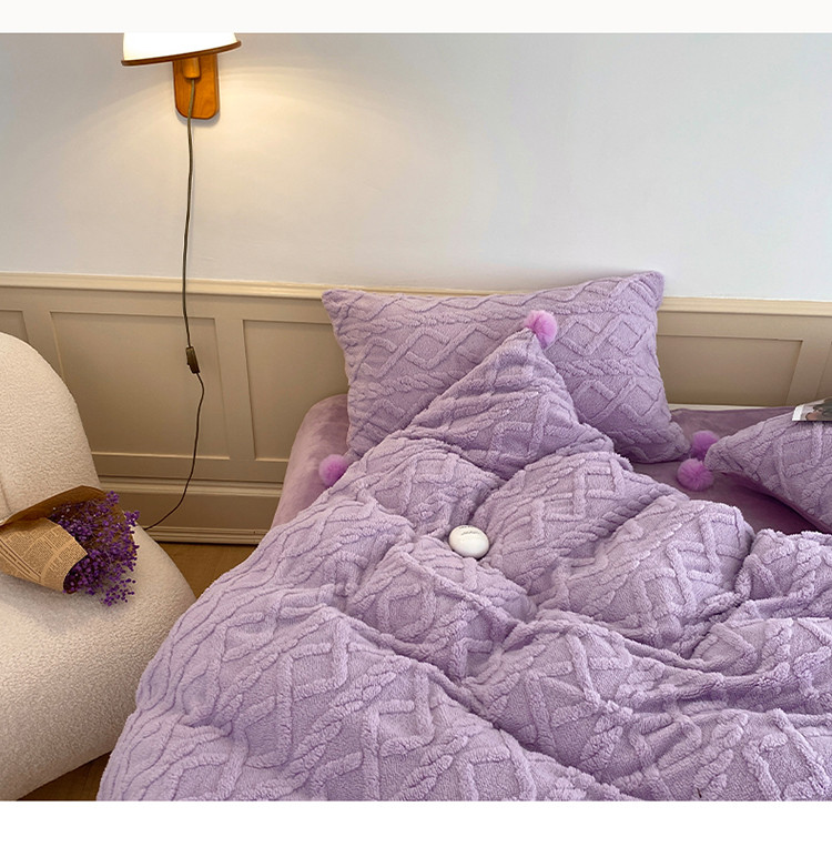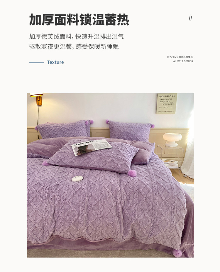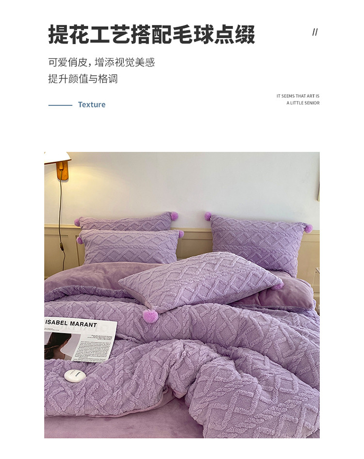 眠屿 2022新款提花烂花工艺四件套 香芋紫