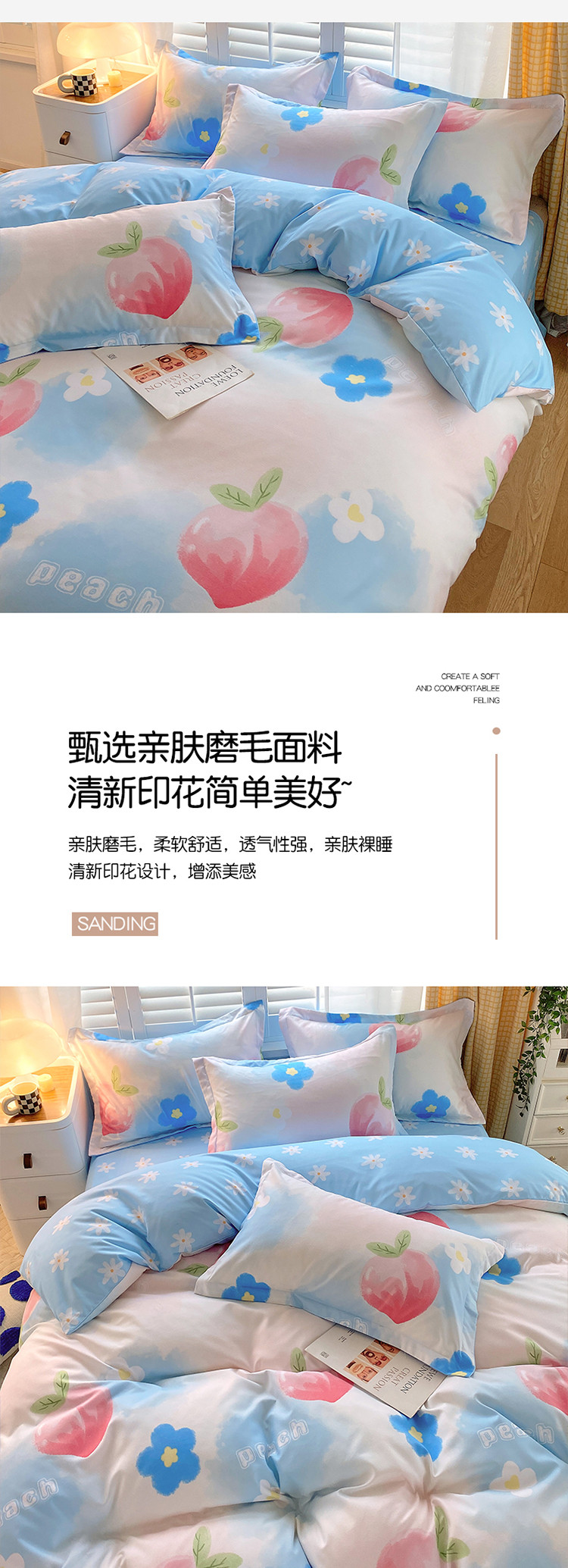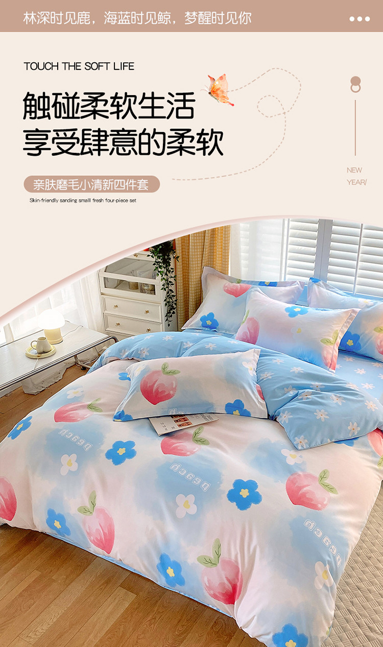 当前位置: 91家纺网 > 商品网购 > 床品套件 > 四件套 > 化纤普通四件套 > 艾橙 秋冬新款140g植物羊绒磨毛四件套系列 美人季桃