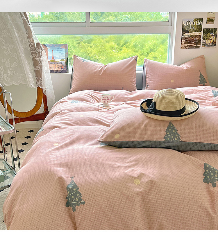(总)田野 2025新款全棉水洗棉提花四件套,花田,花颜,帽子狗,蘑菇,飘带,泰迪狗,小树林-咖,小象,小雨点,樱桃-绿