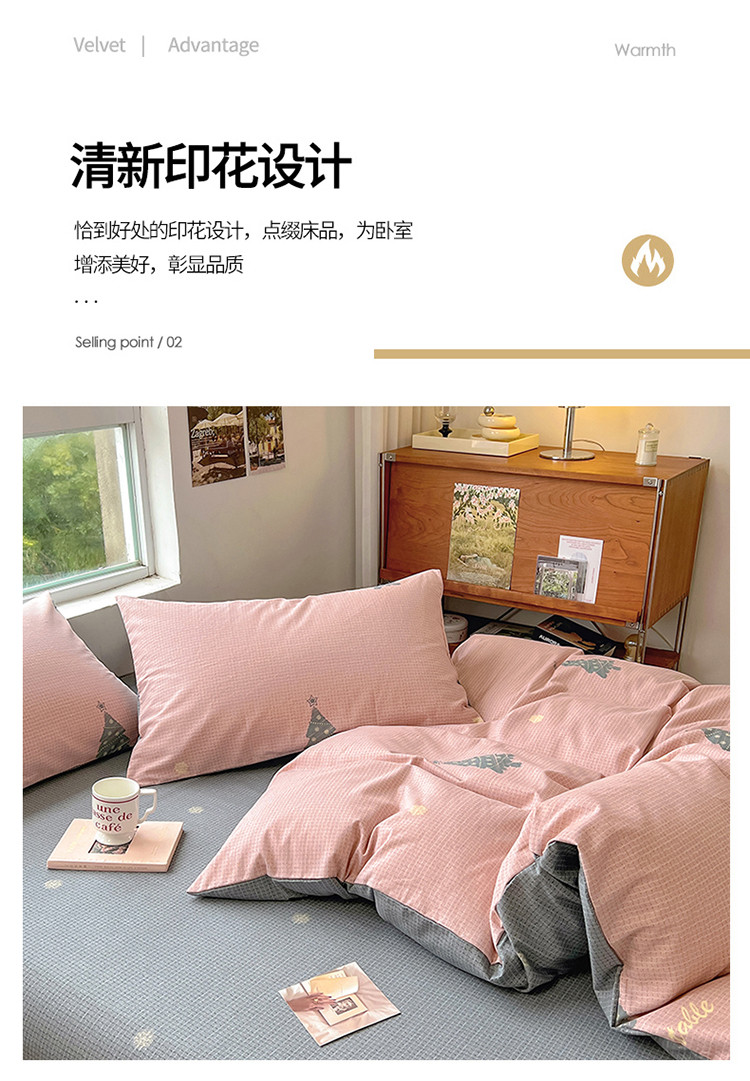 商品名称:田野 2022新款全棉加厚磨毛四件套 小树林