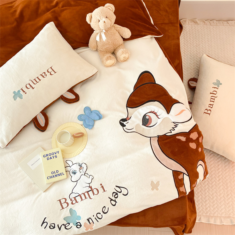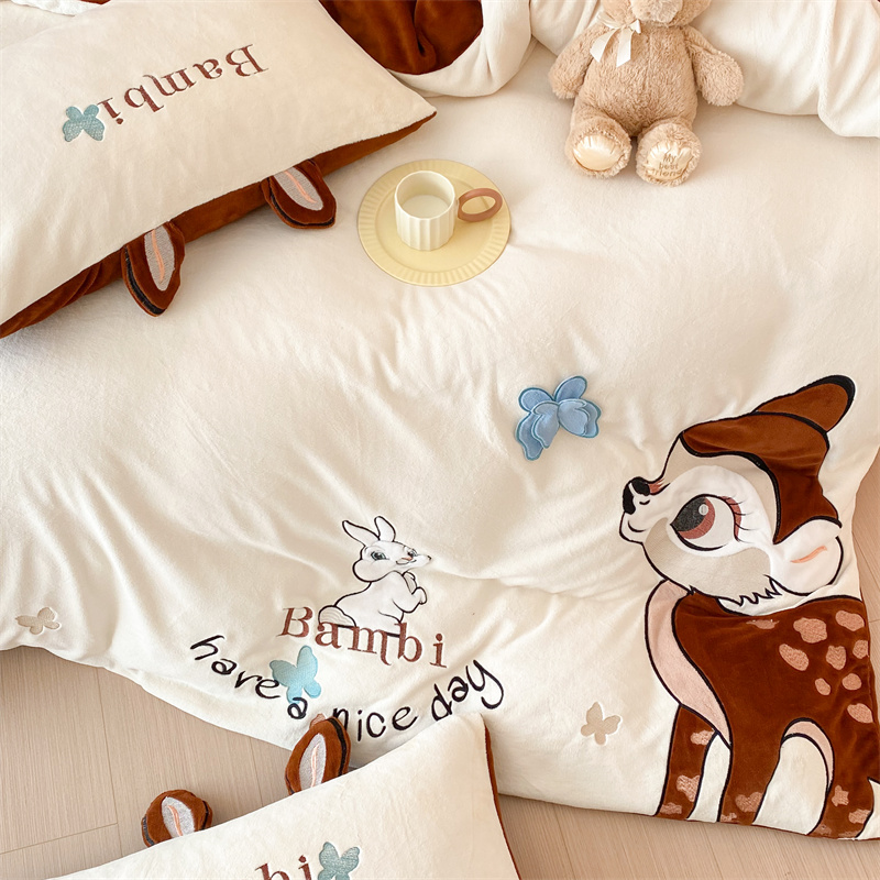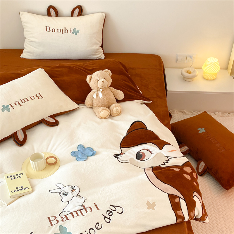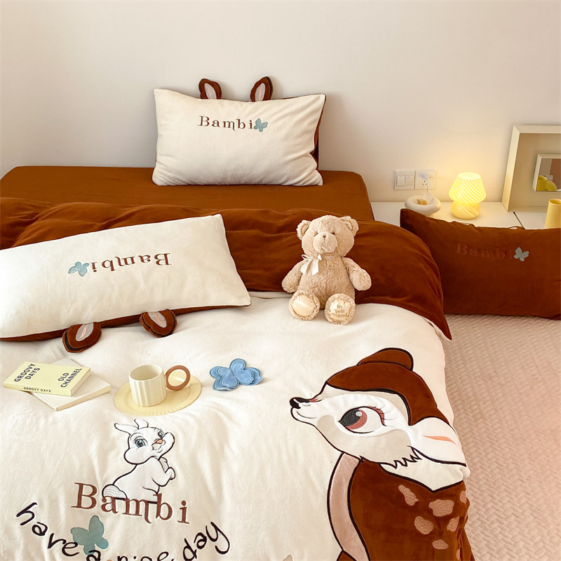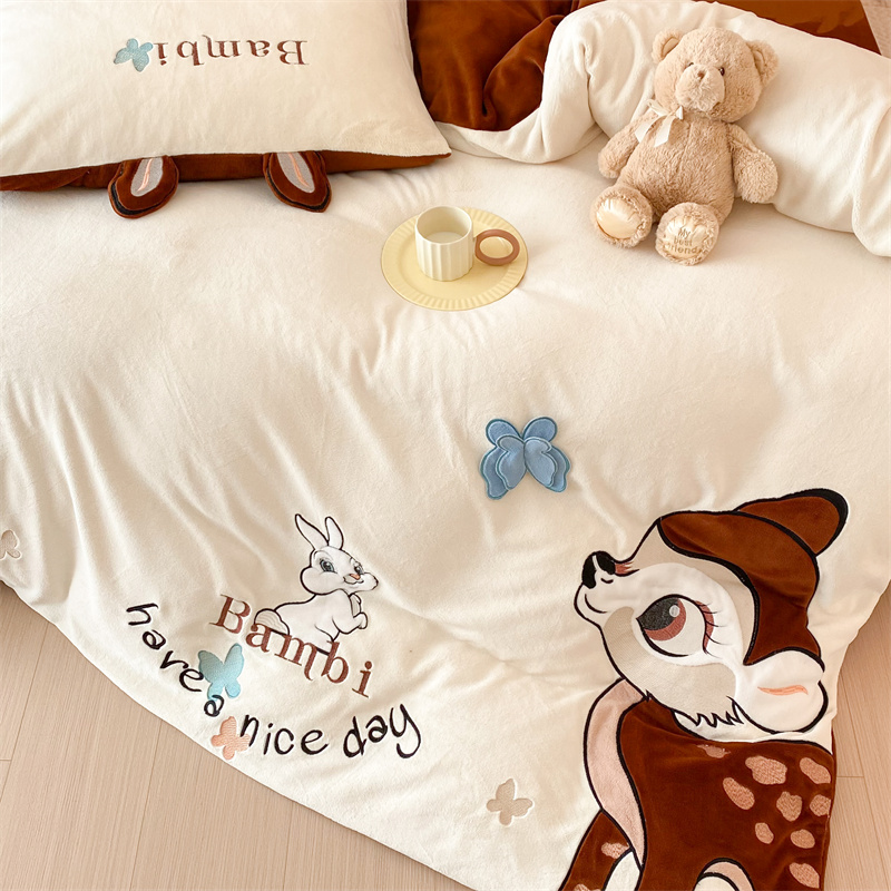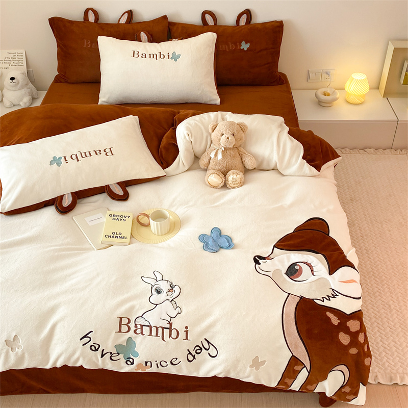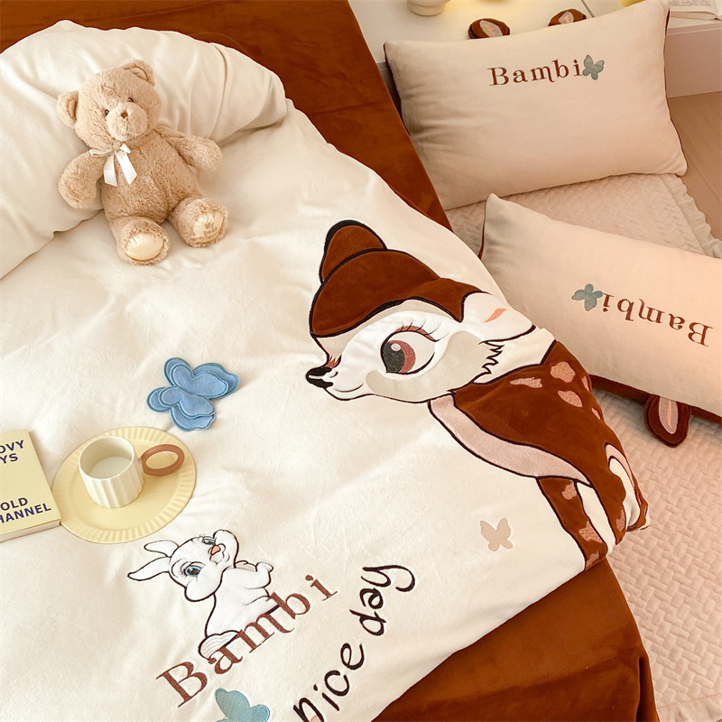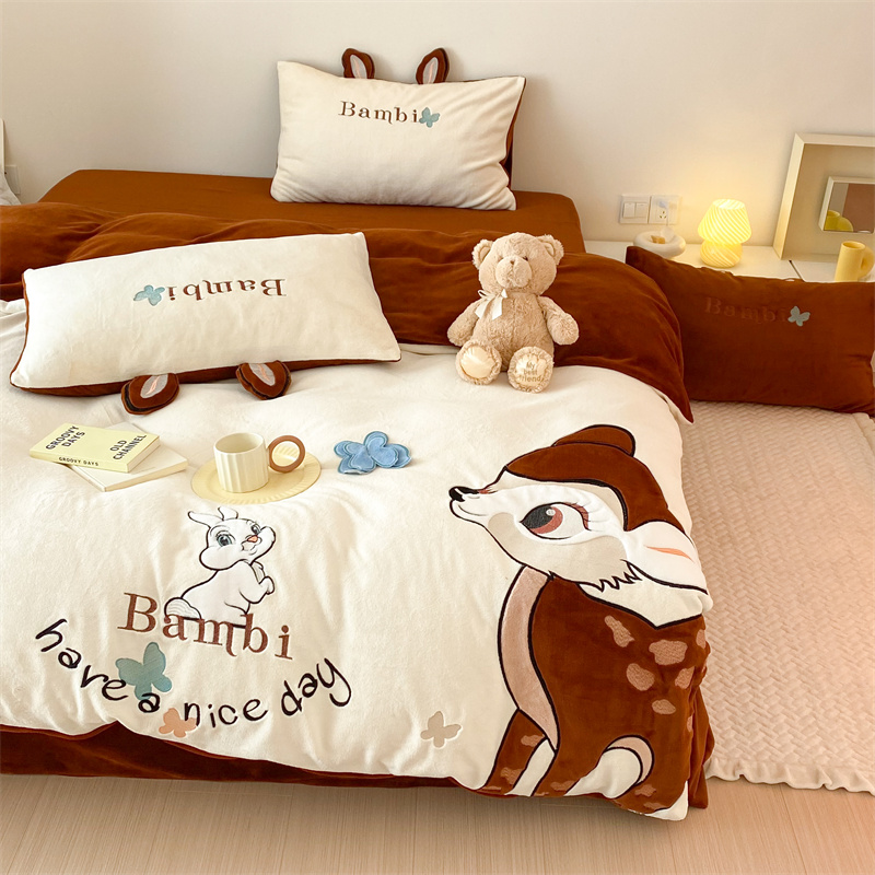 朗莎 2022新款迪士尼230g高克重牛奶绒四件套 比比鹿