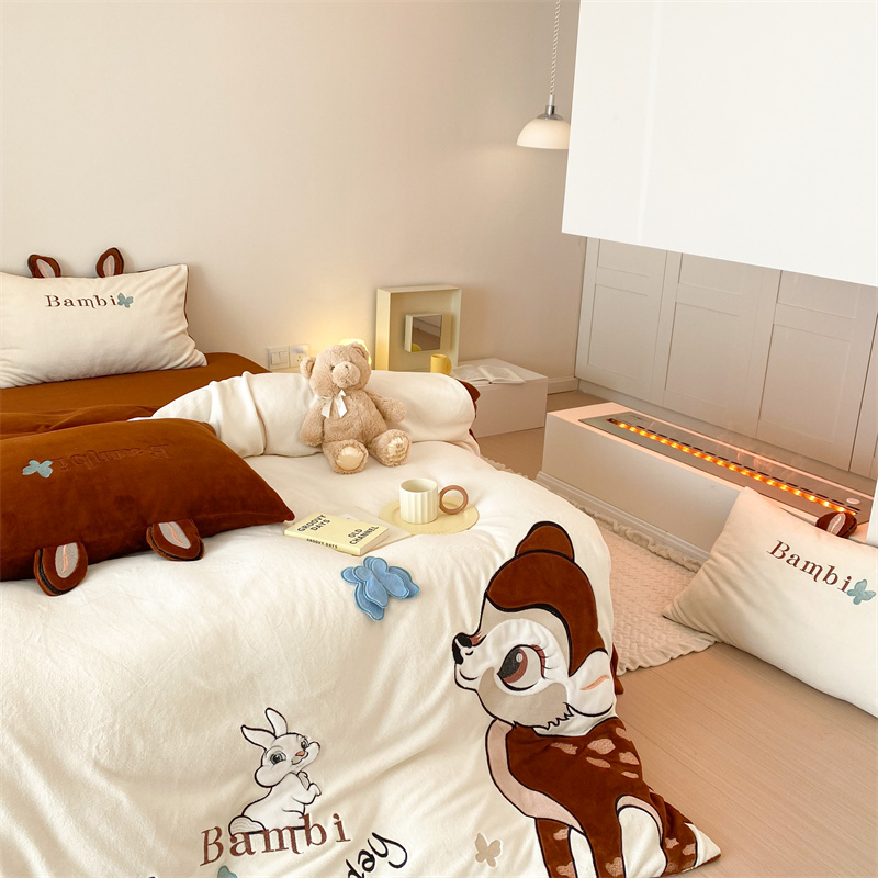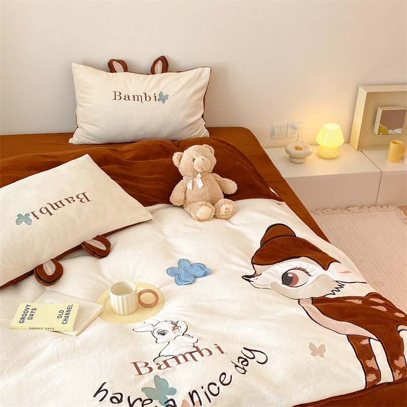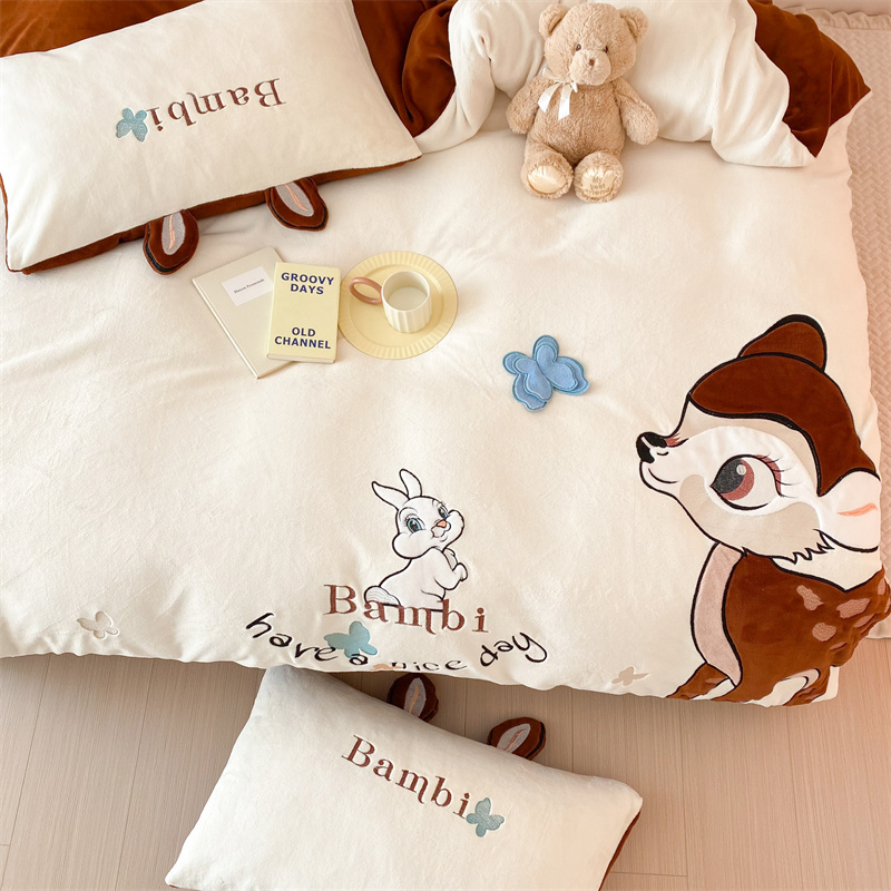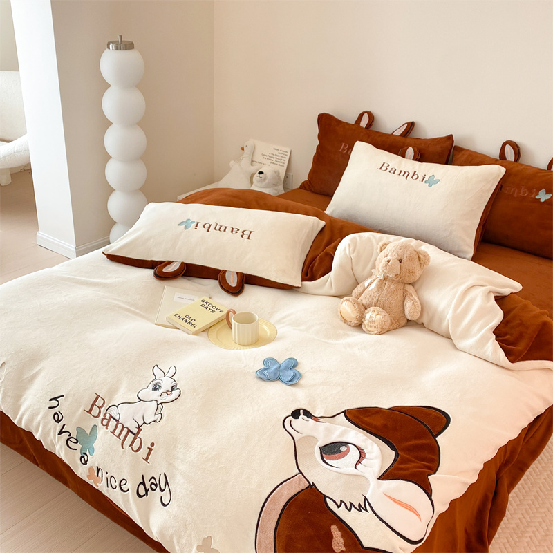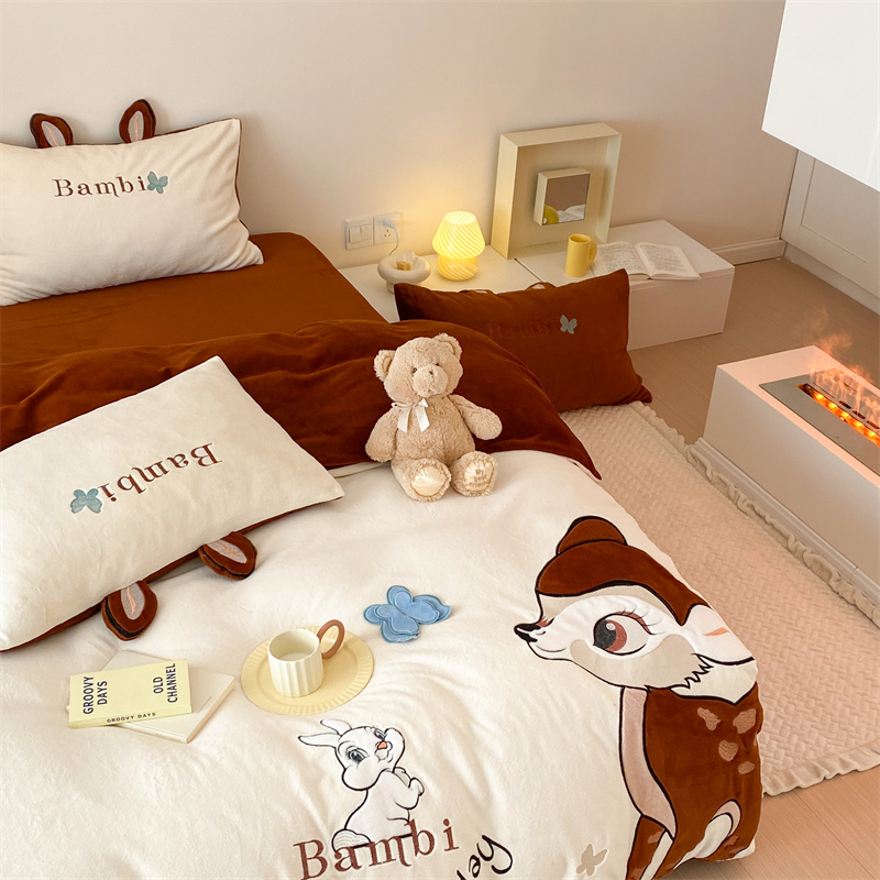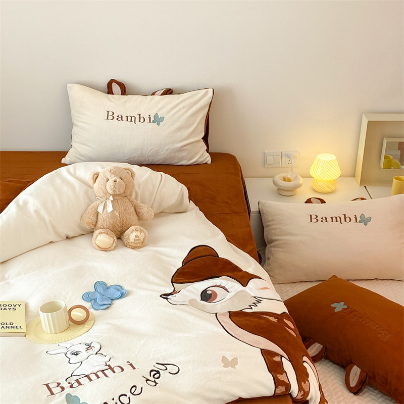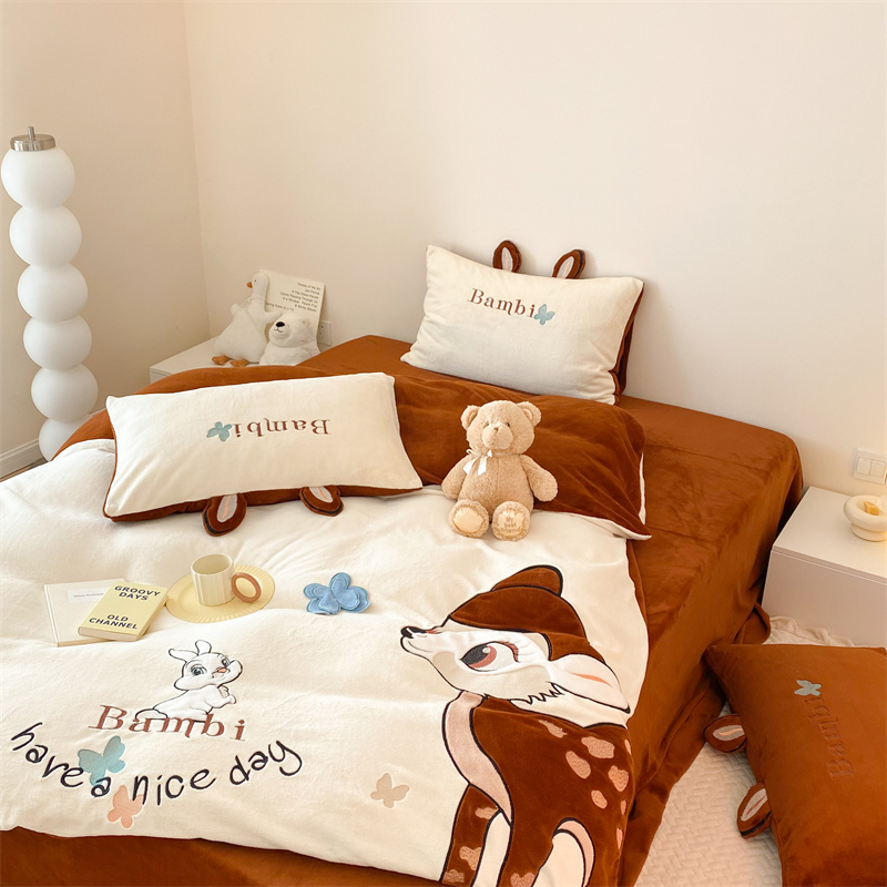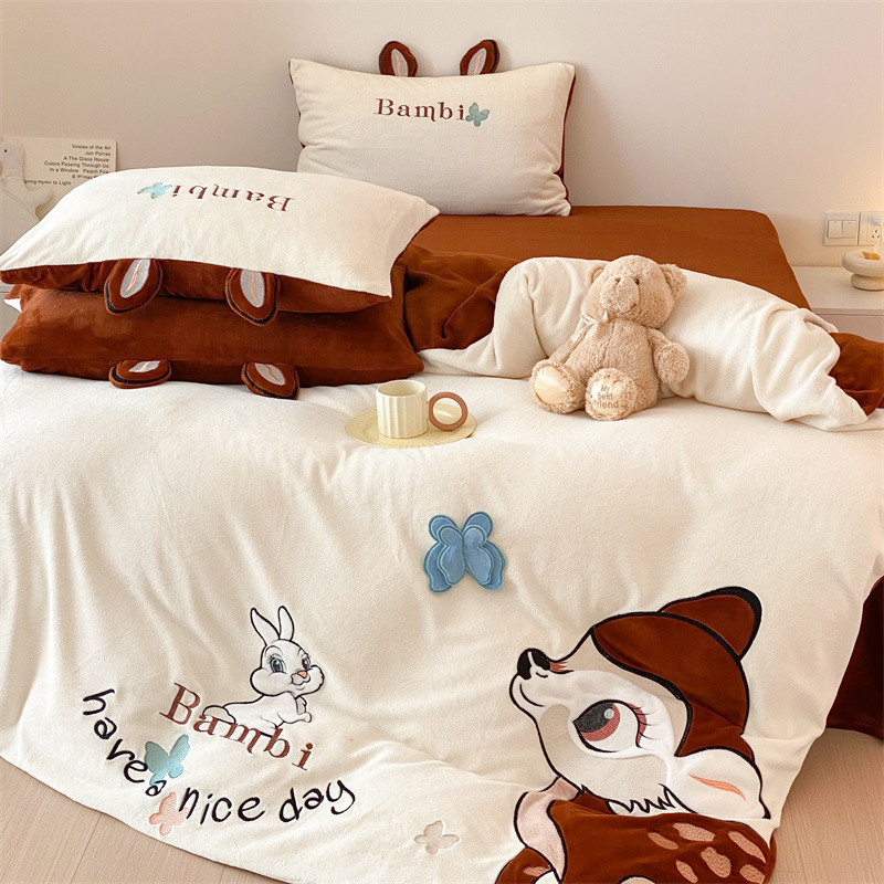 朗莎 2022新款迪士尼230g高克重牛奶绒四件套 比比鹿