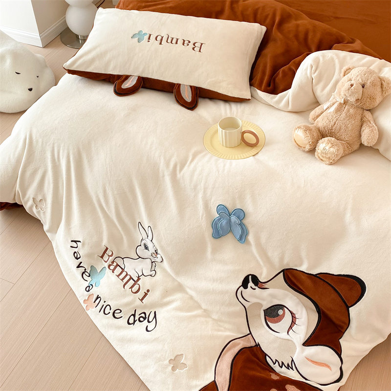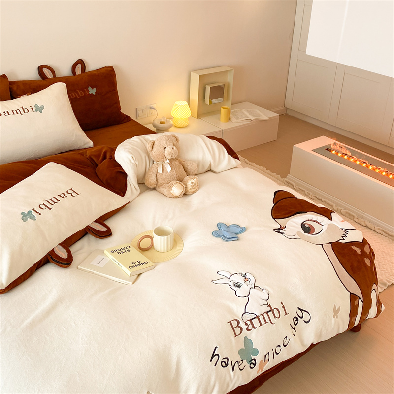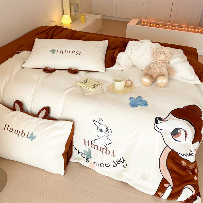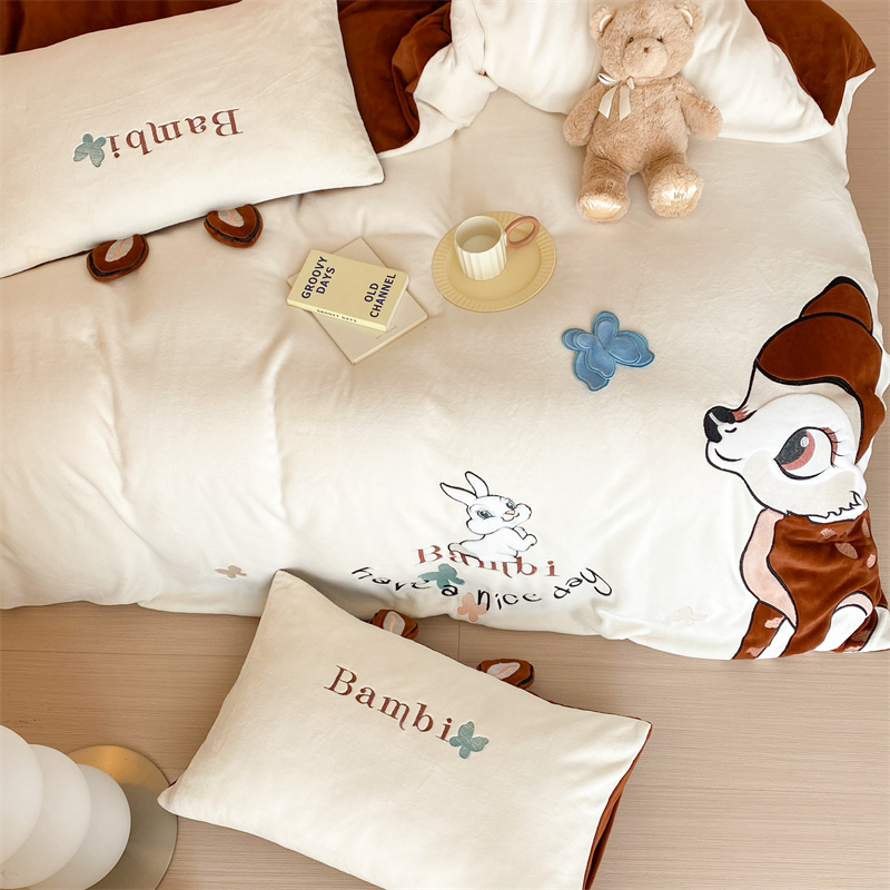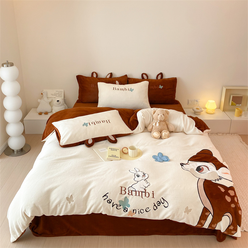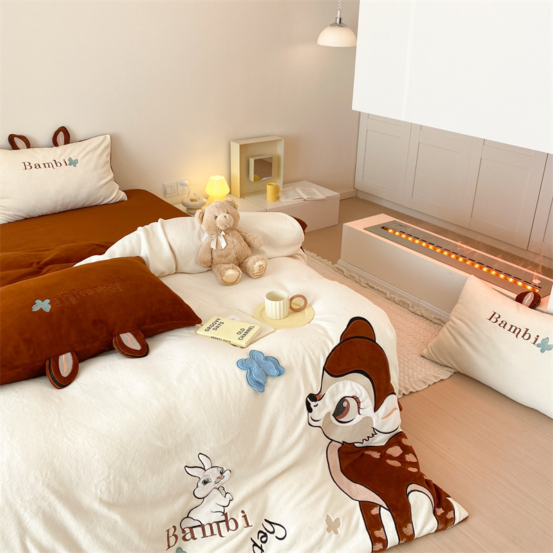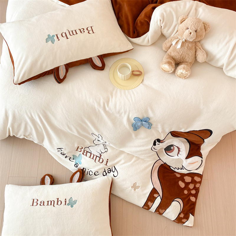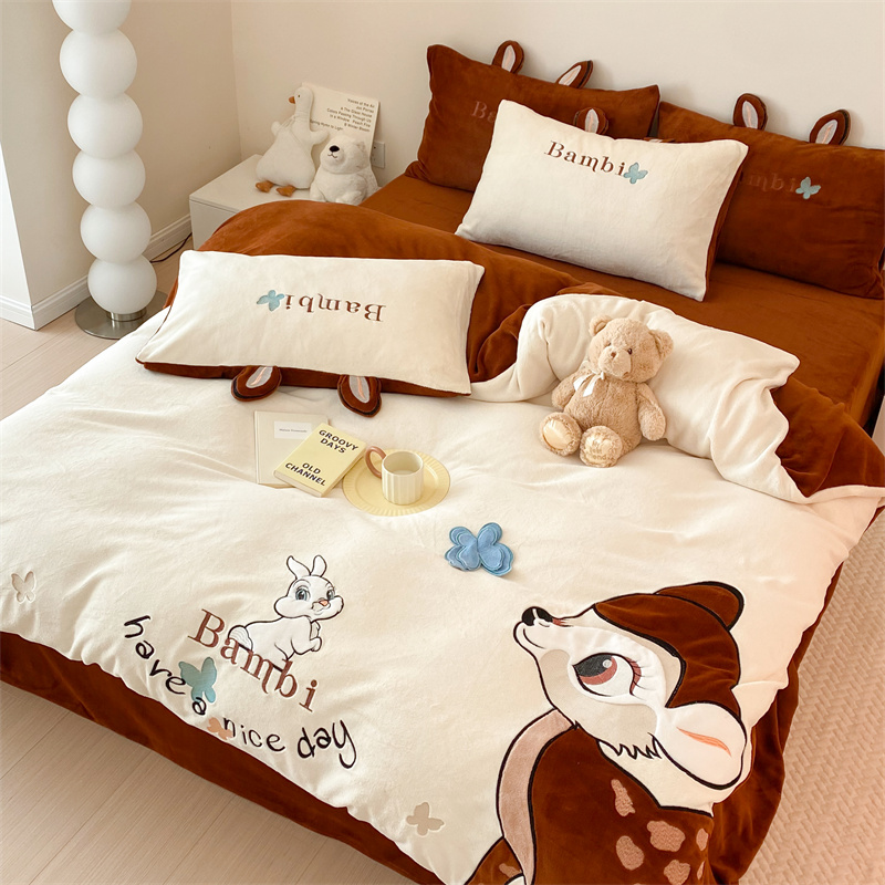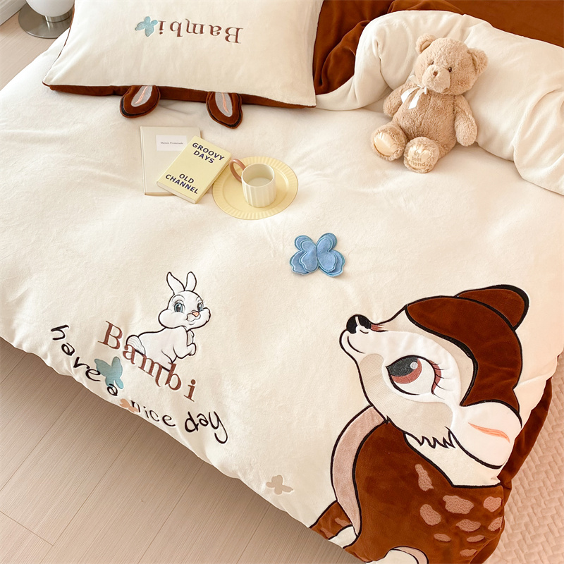 朗莎 2022新款迪士尼230g高克重牛奶绒四件套 比比鹿