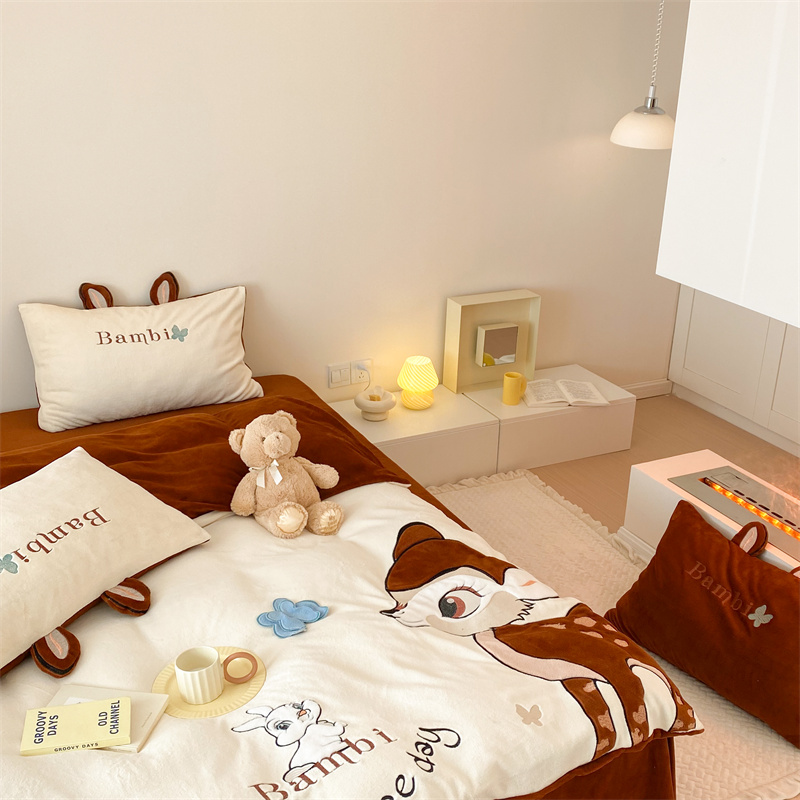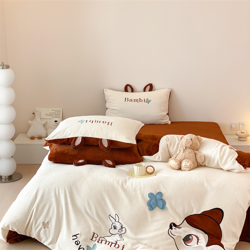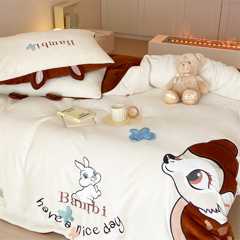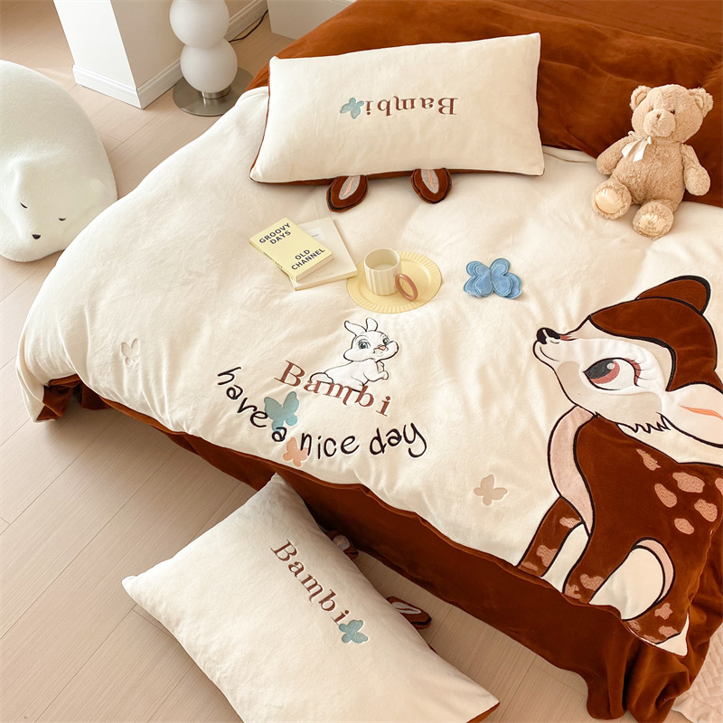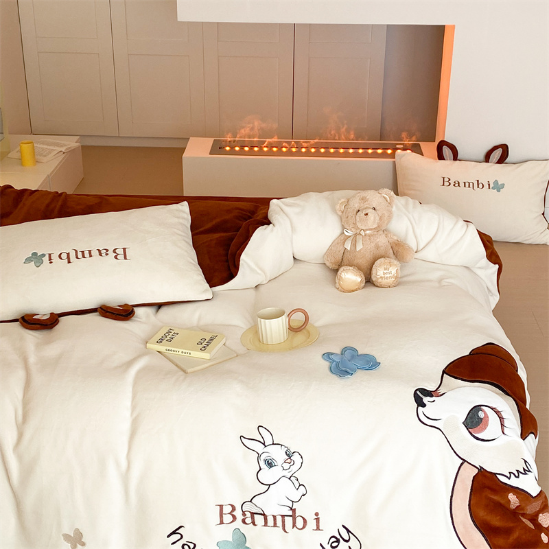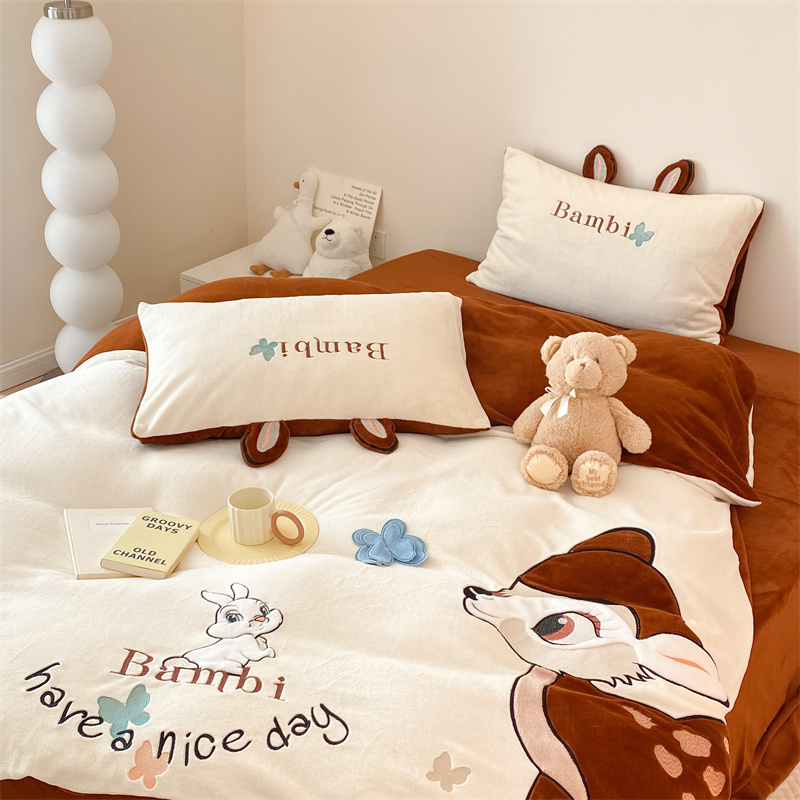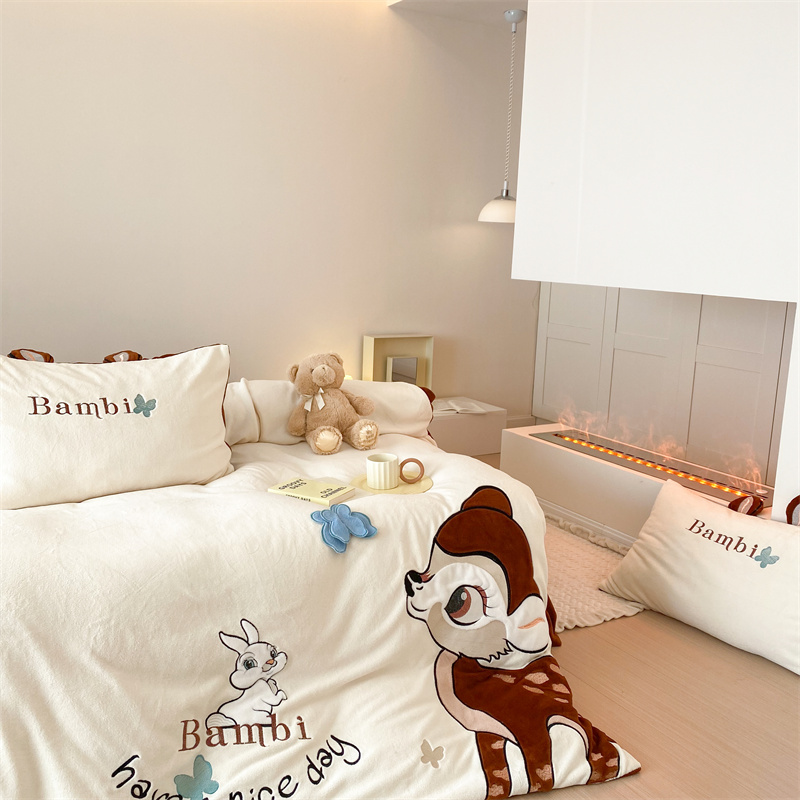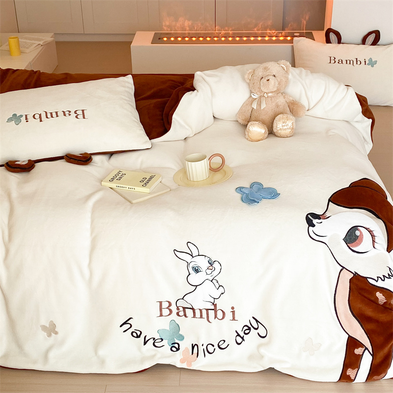 朗莎 2022新款迪士尼230g高克重牛奶绒四件套 比比鹿