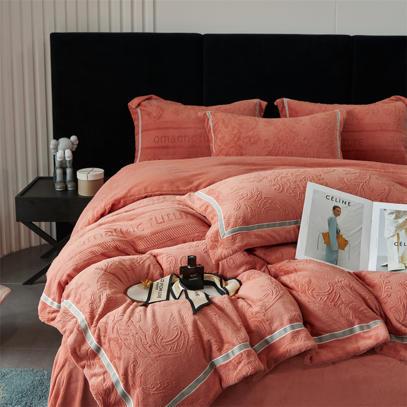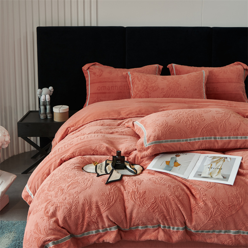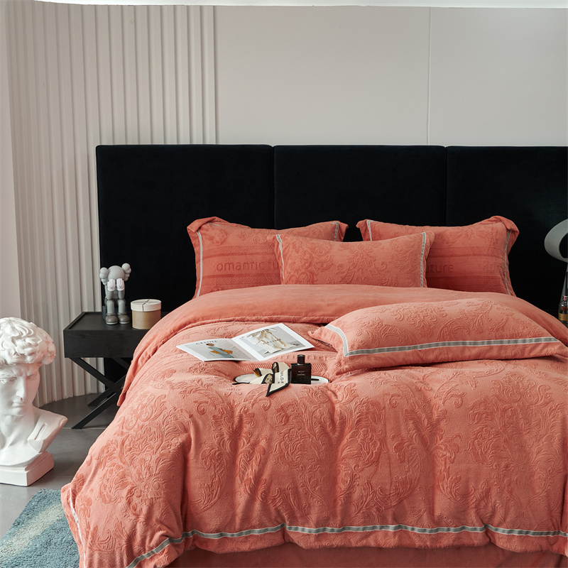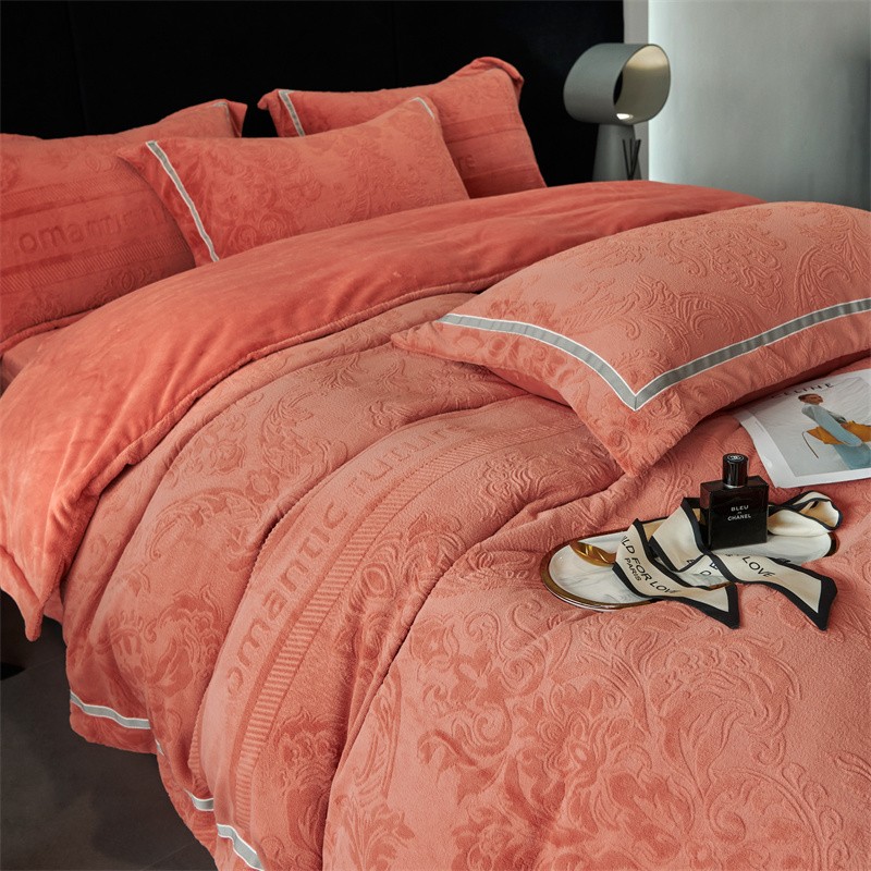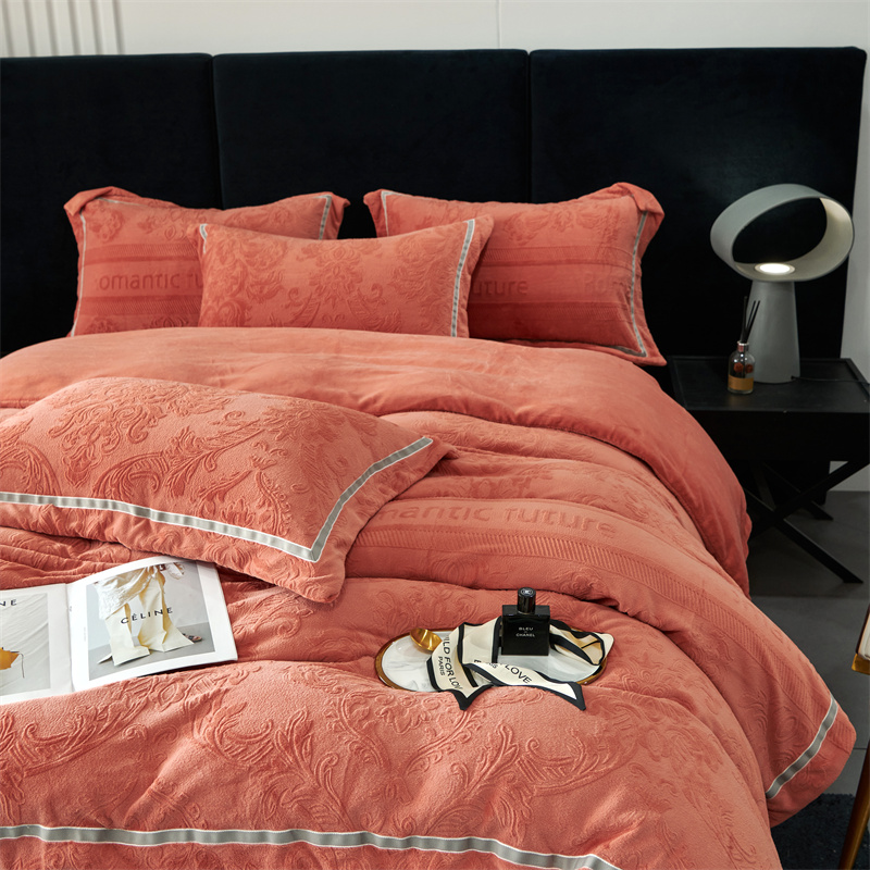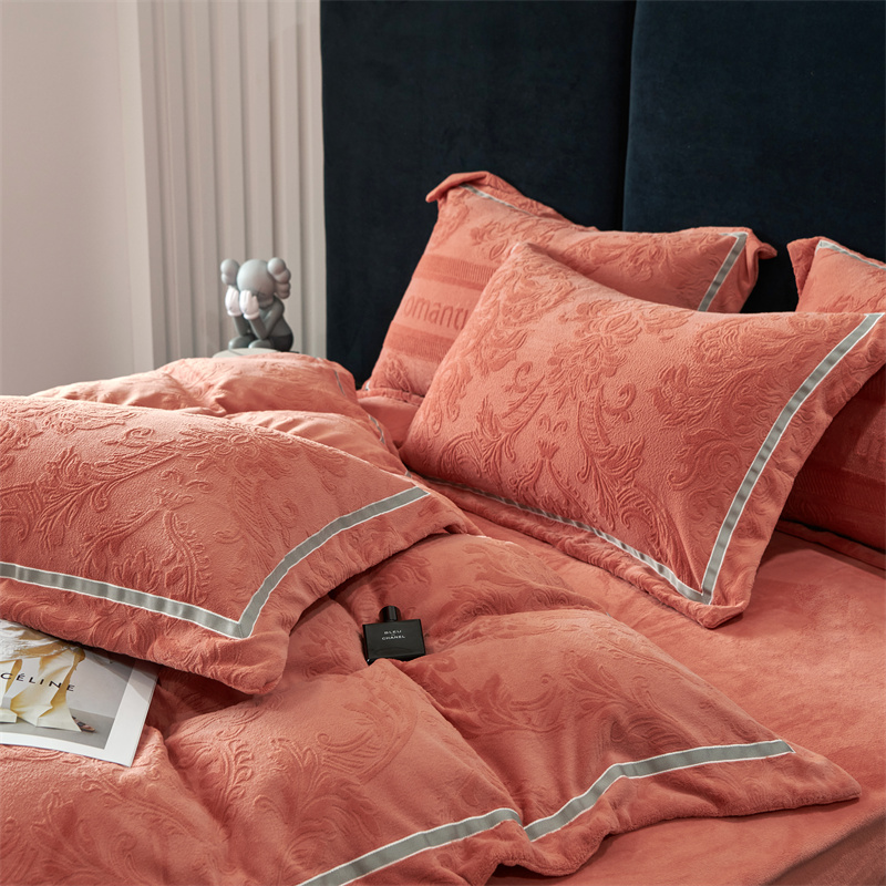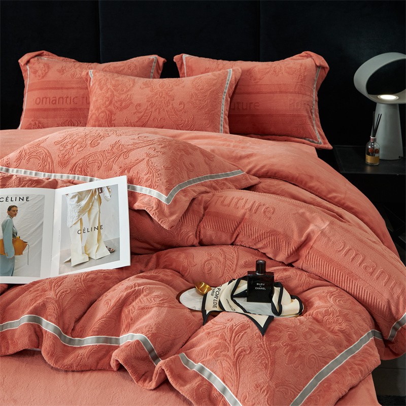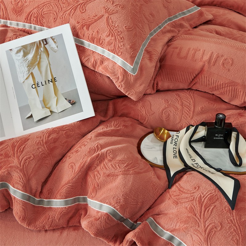 商品名称:榻尚家居 2023新款260克全消光高端浮雕绒四件套 瑞丽-焦糖