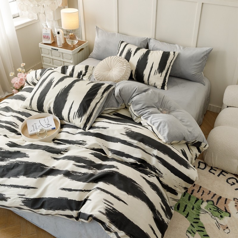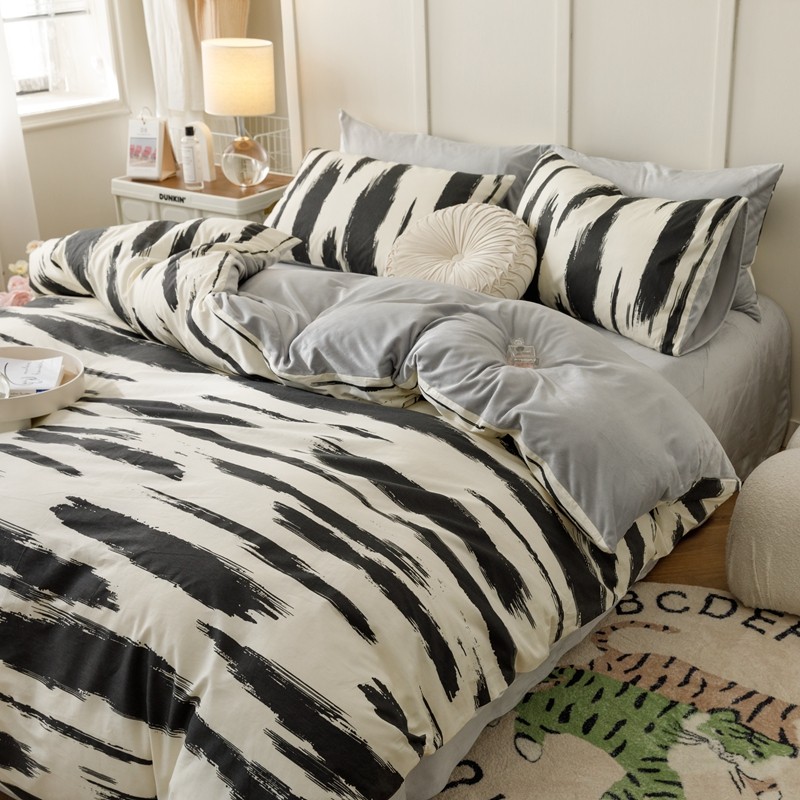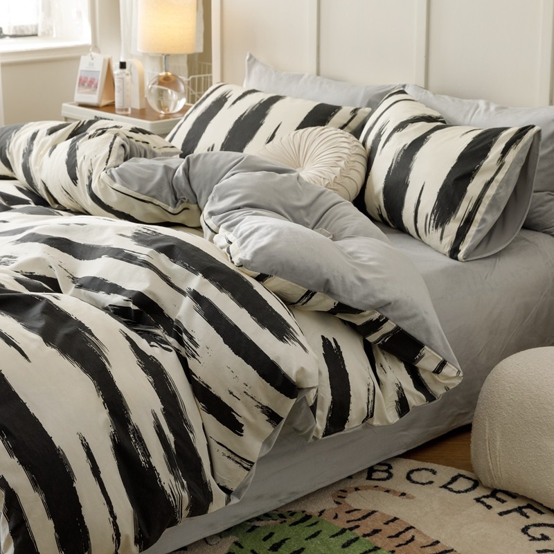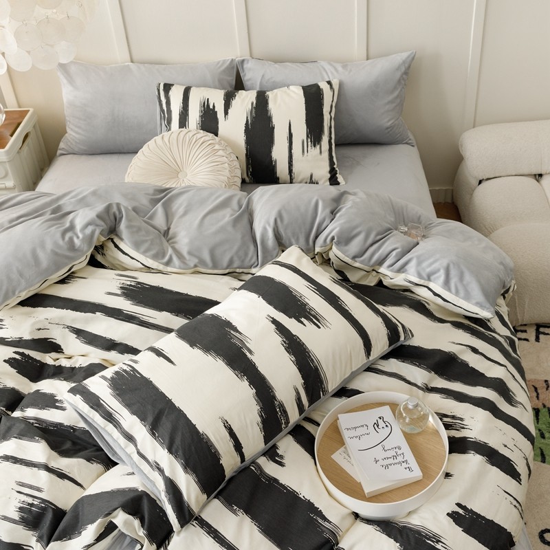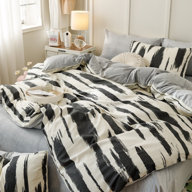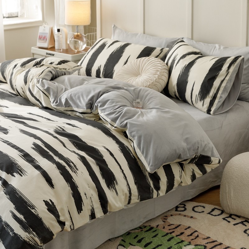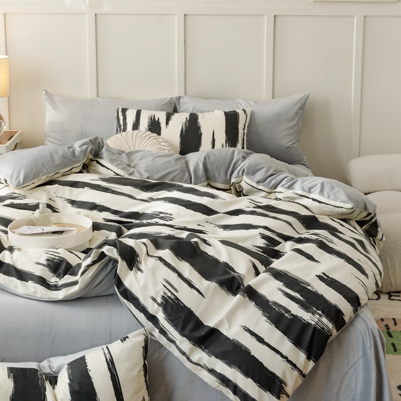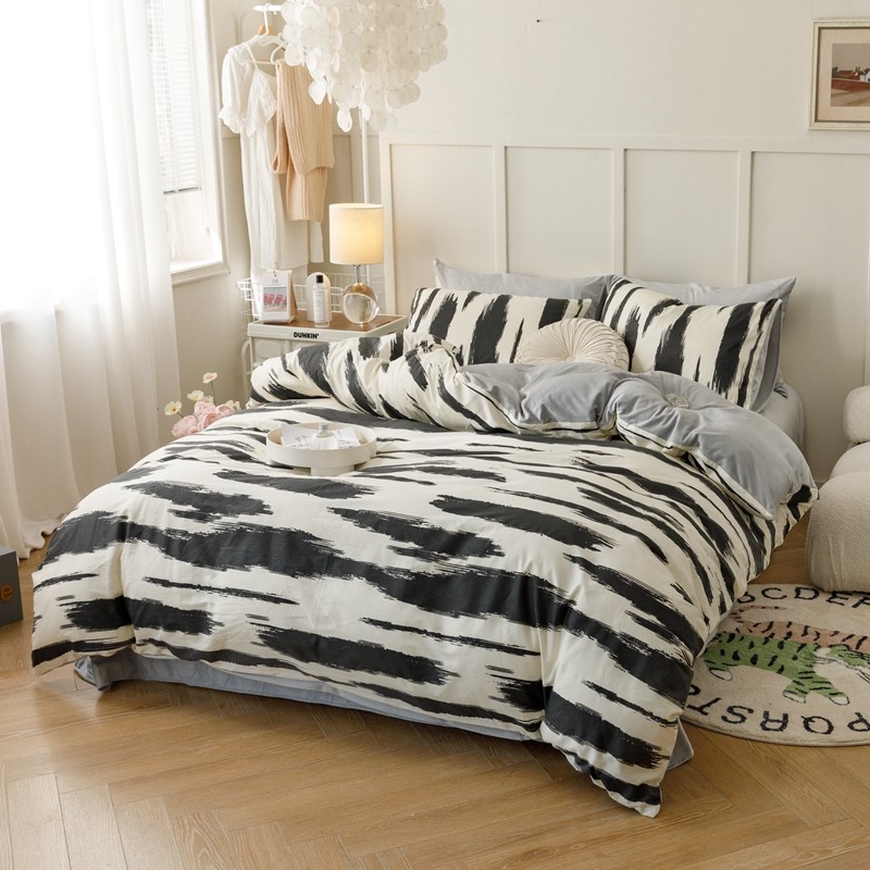 商品名称:珺柔 2022新款印花水晶绒四件套 黑条纹
