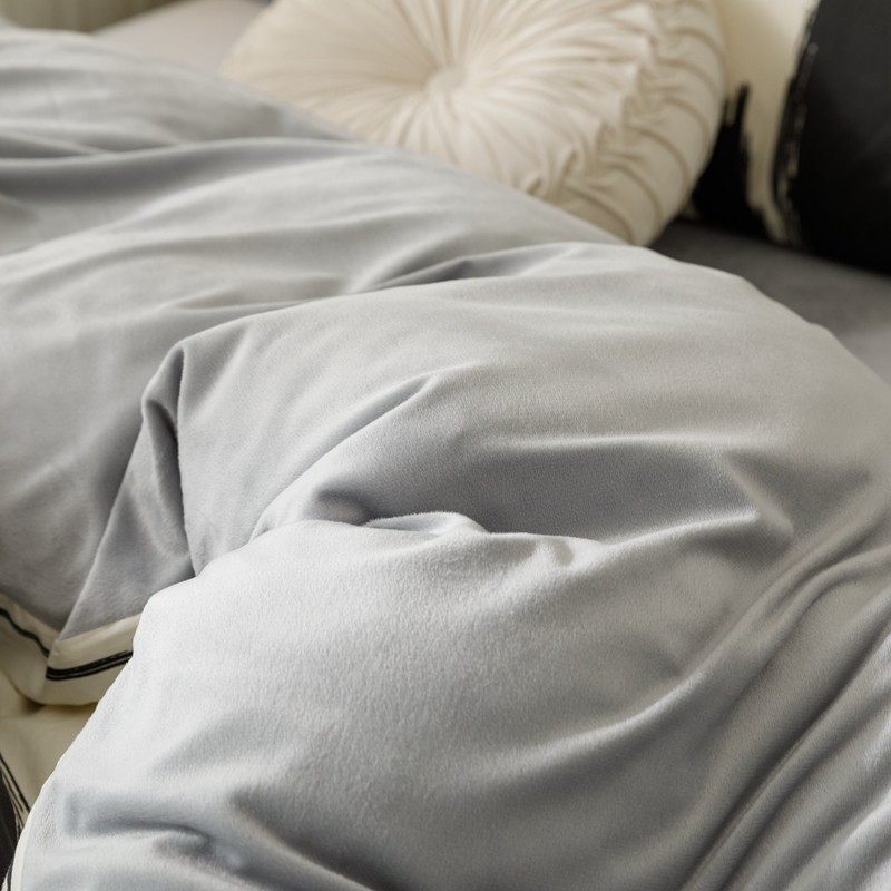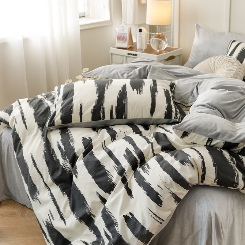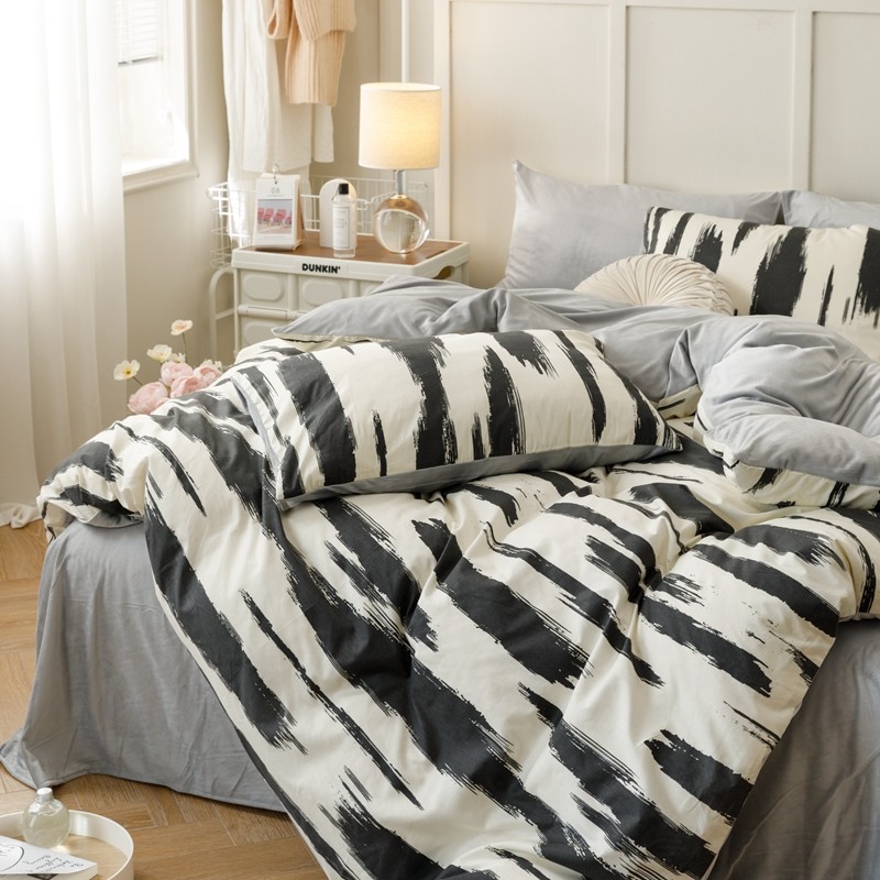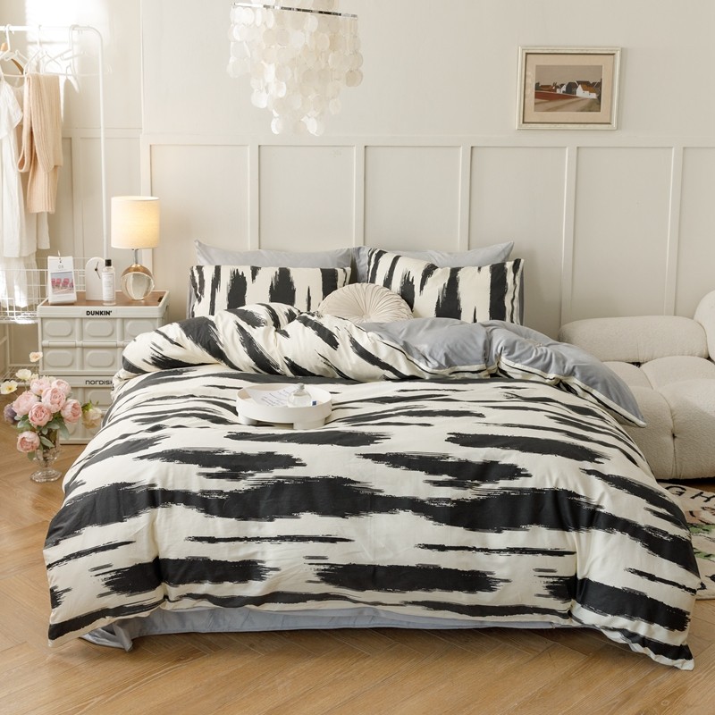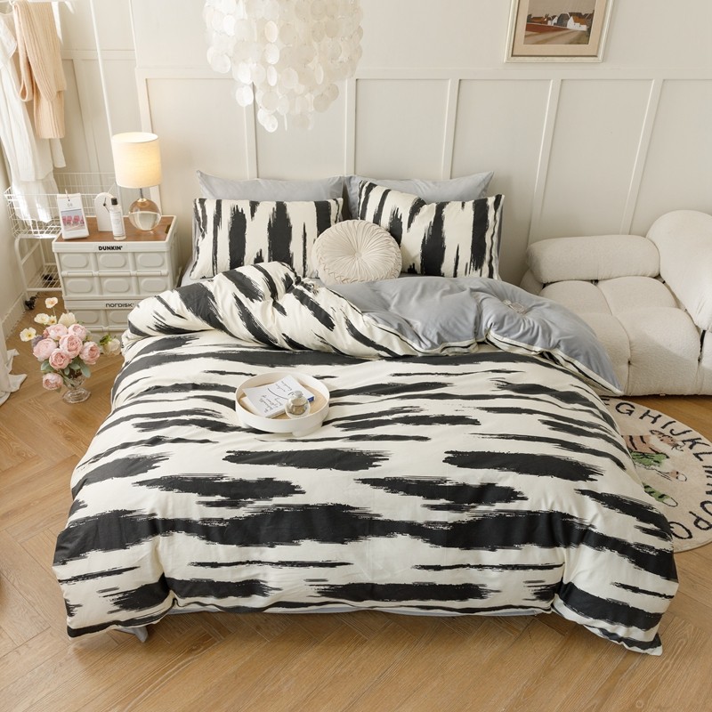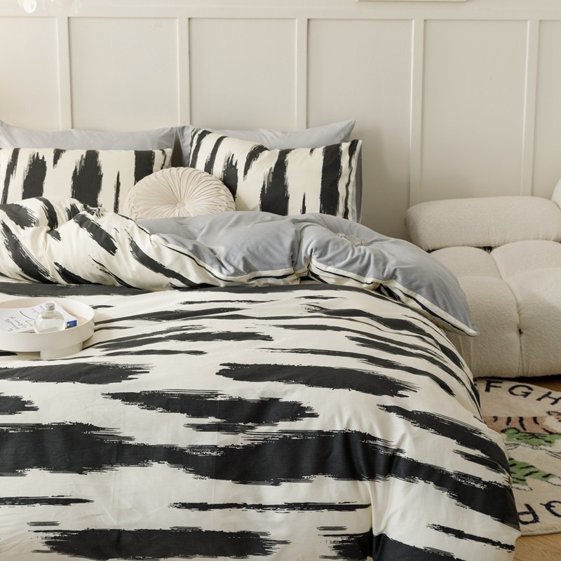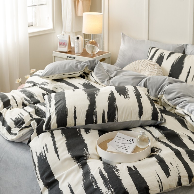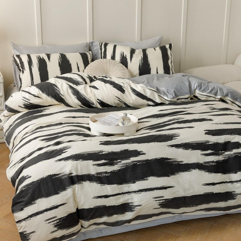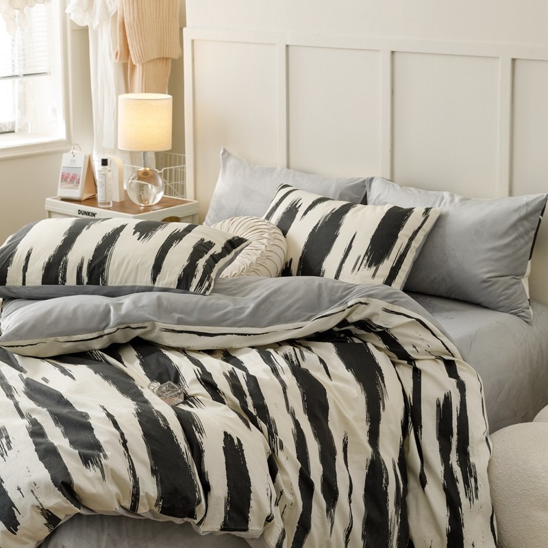 商品名称:珺柔 2022新款印花水晶绒四件套 黑条纹
