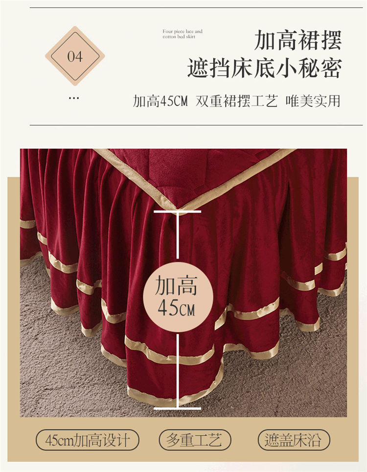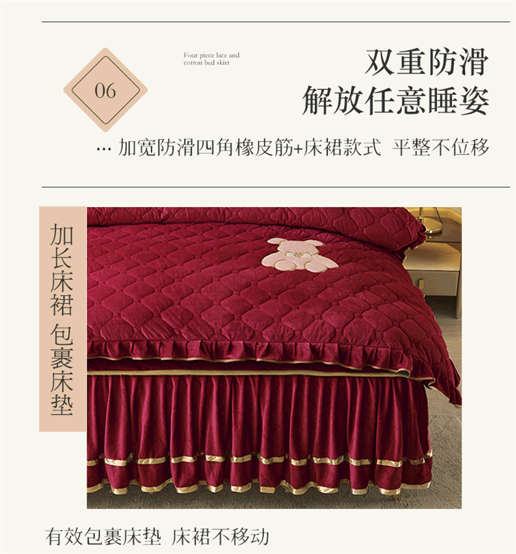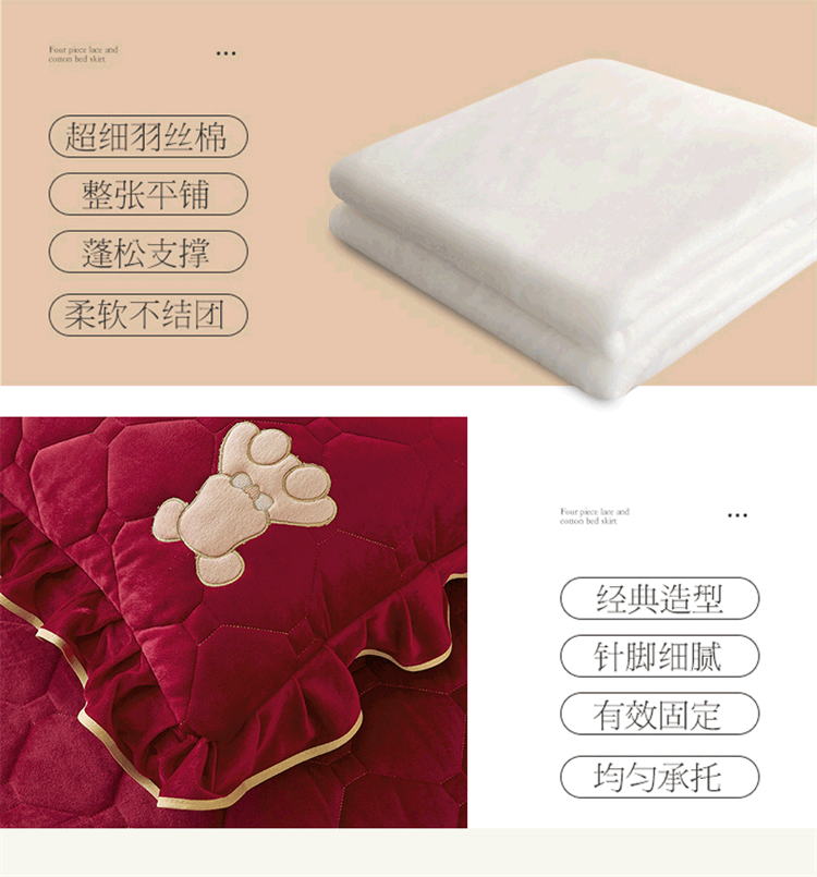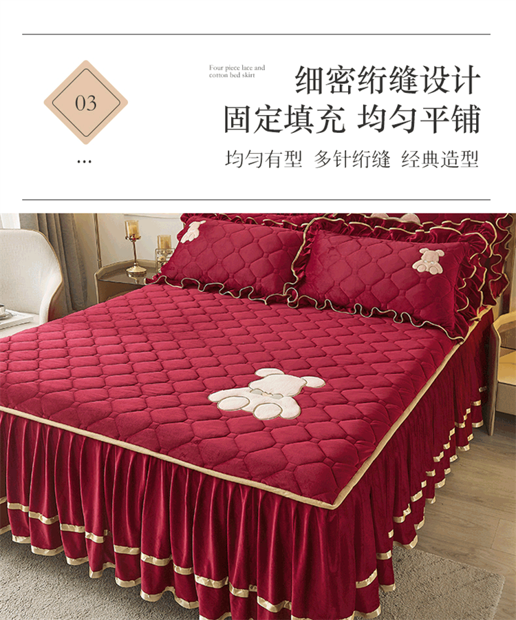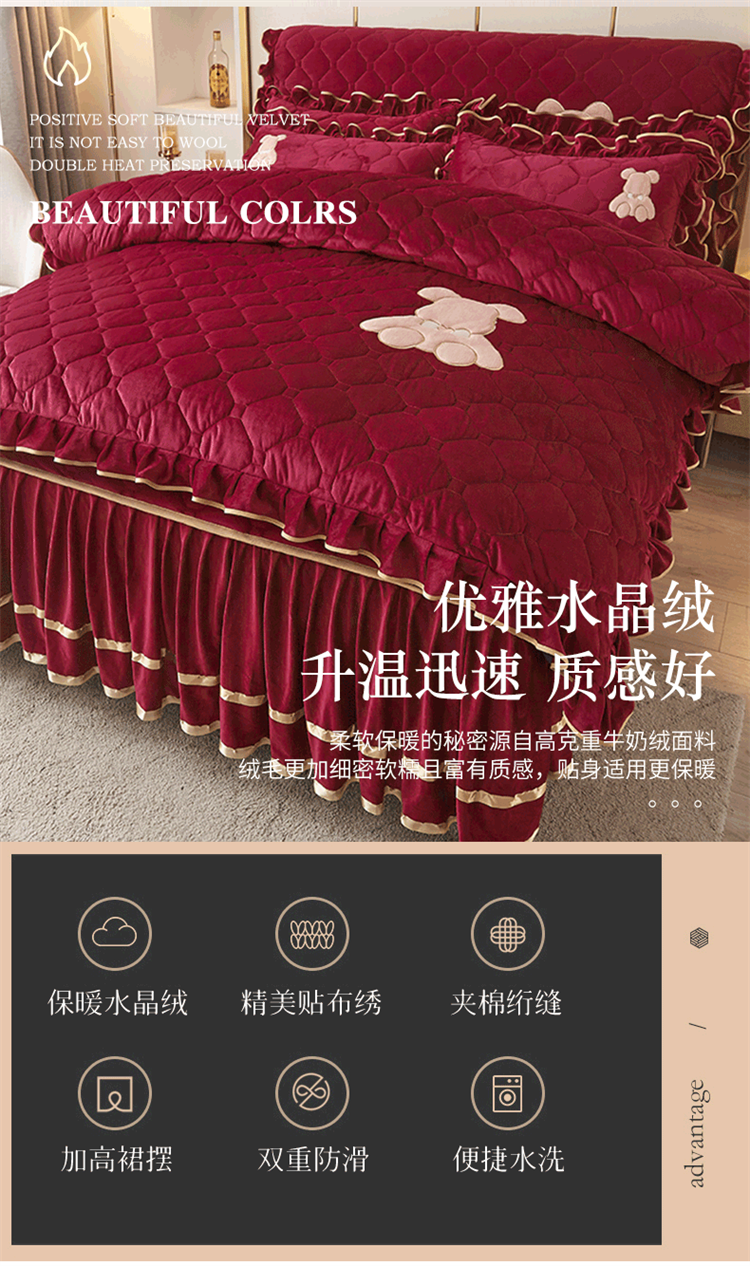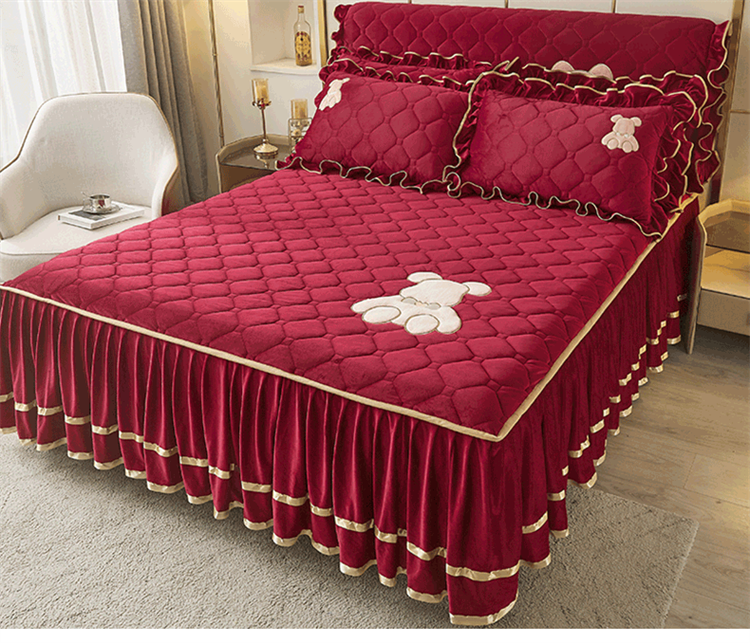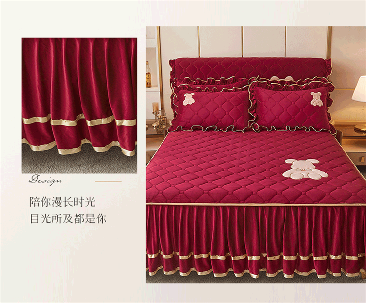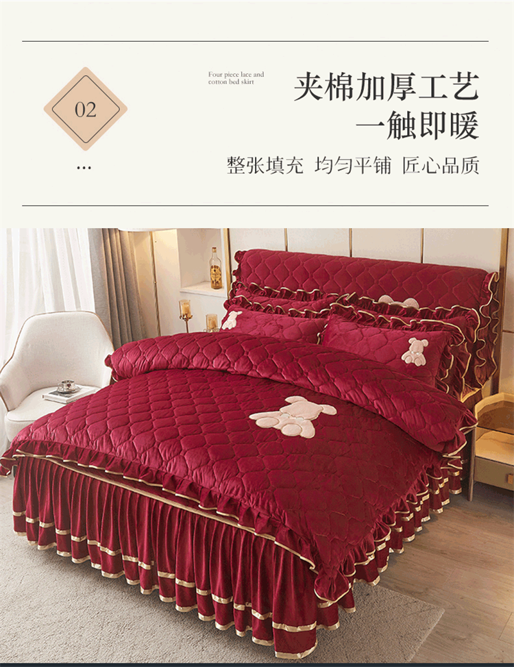 当前位置: 91家纺网 > 商品网购 > 床品套件 > 四件套 > 水晶绒四件套 > 屹成家纺 2024新款亲肤水晶绒夹棉床裙四件套-小熊款 酒红