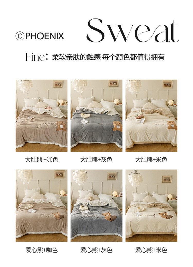 总铭动2023新款牛奶绒羊羔绒双面贴布刺绣小熊毛毯盖毯披肩毯,爱心熊+灰色,爱心熊+咖色,爱心熊+米色,大肚熊 +咖色,大肚熊+灰色,大肚熊+米色
