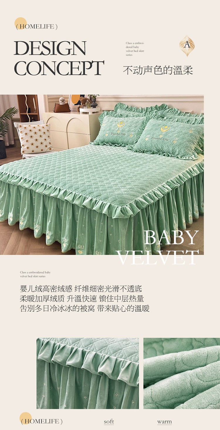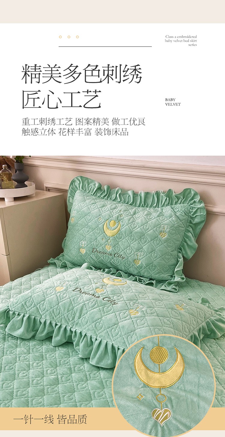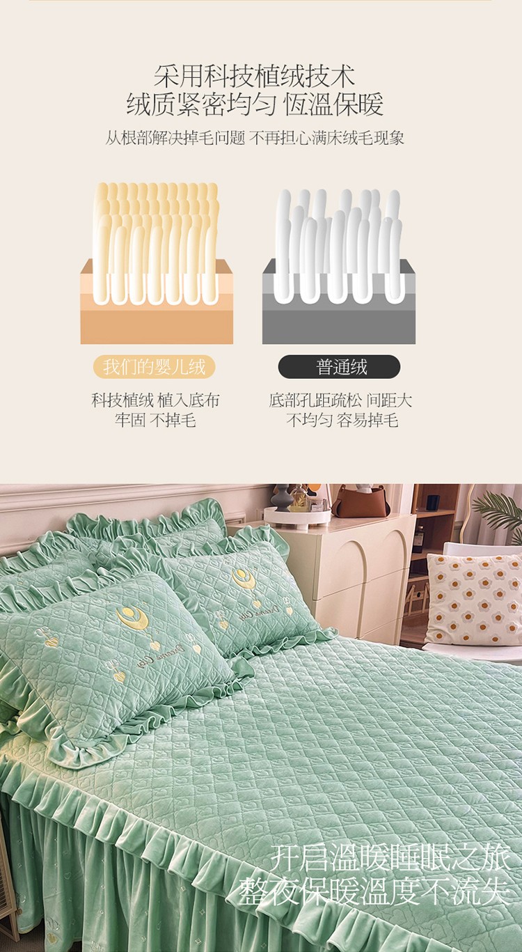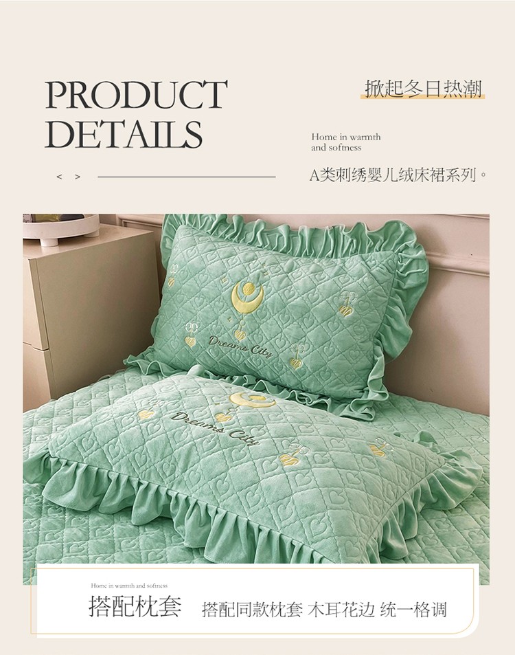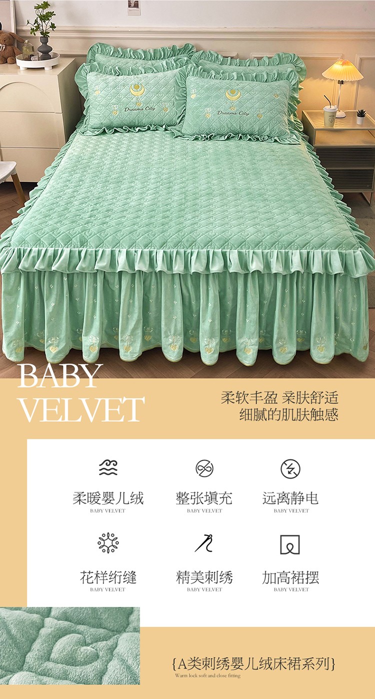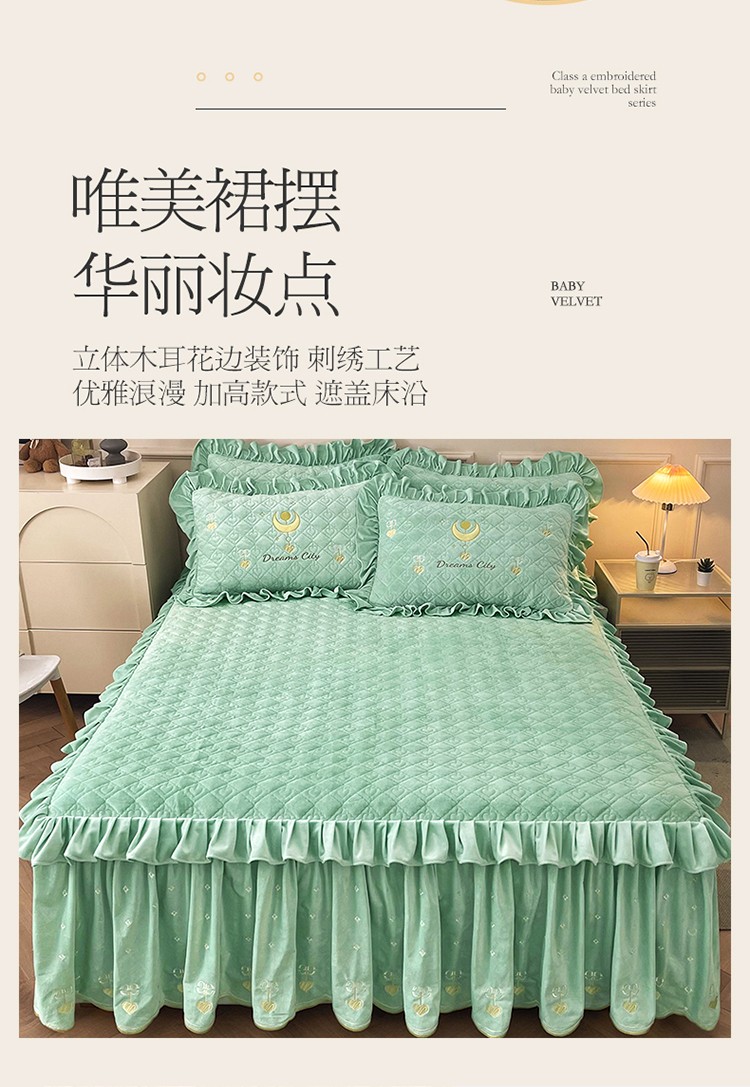 商品名称:宜凡家纺 2022新款A类婴儿绒床裙星悦系列三件套 星悦-薄荷