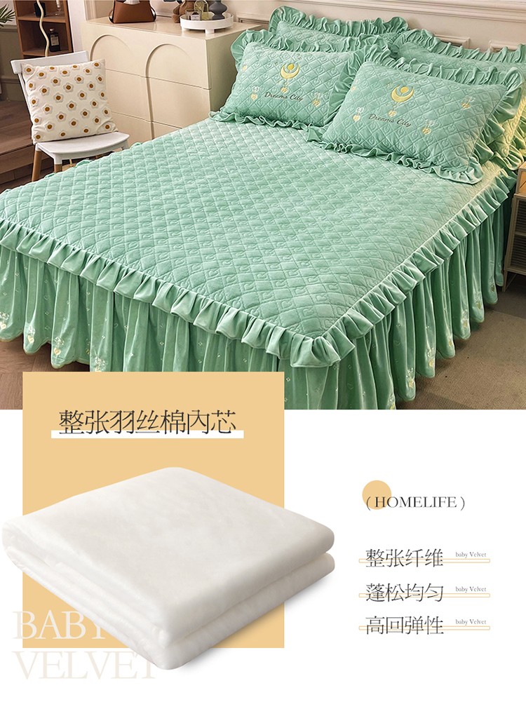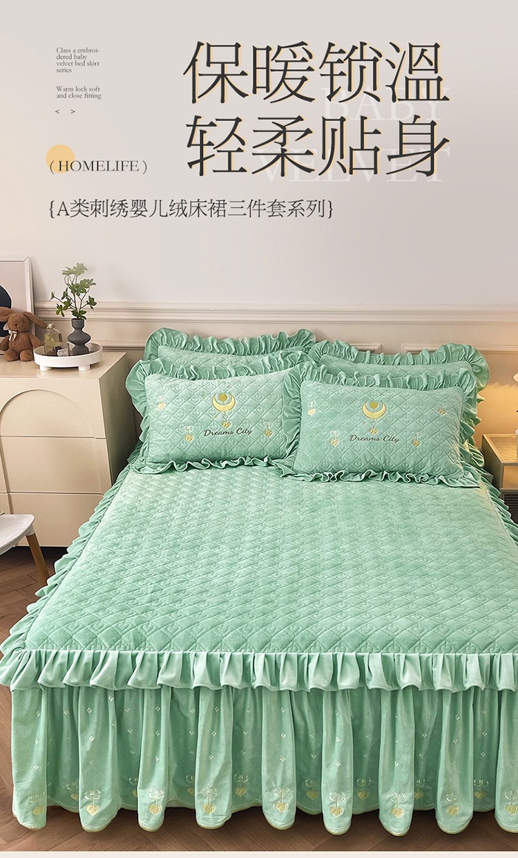 宜凡家纺 2022新款A类婴儿绒床裙星悦系列三件套 星悦-薄荷