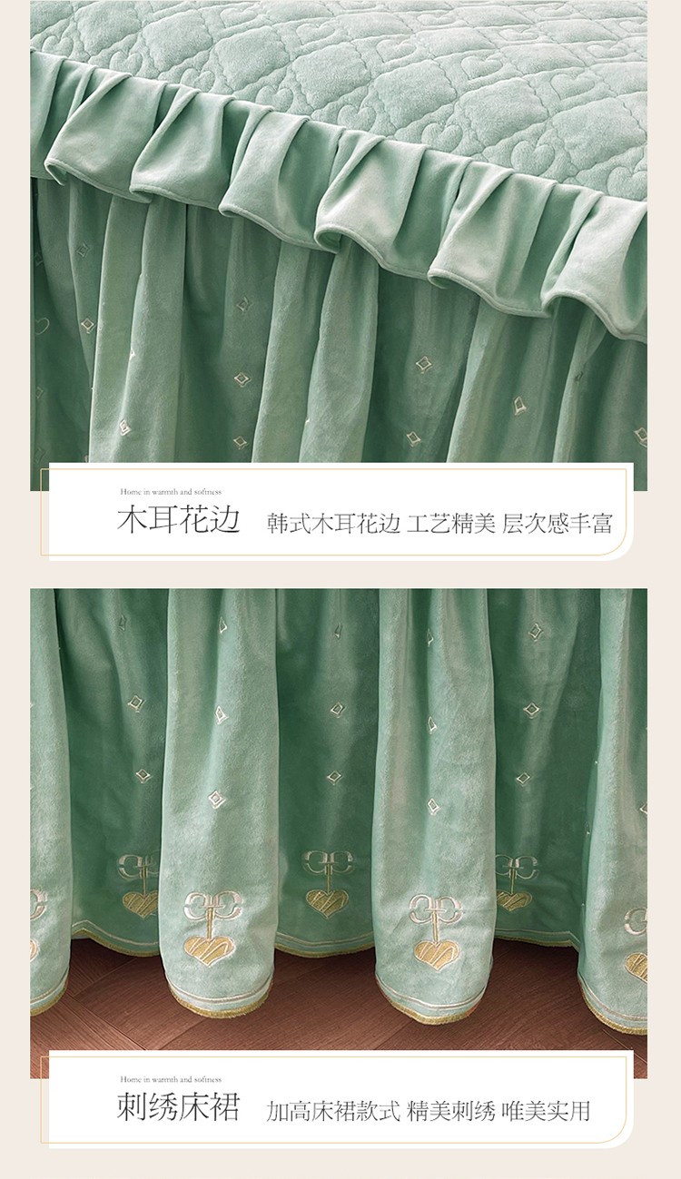 (总)宜凡家纺 2025新款兔绒提花牛奶绒夹棉床裙四件套,爱心 少女粉,爱心 粉紫,爱心 驼色,蝶舞 大红,蝶舞 米色,蝶舞 浅紫,蝶舞 玉色,简爱 苍青,简爱 豆沙紫,简爱 玉色,樱桃 苍青,樱桃 豆沙紫,樱桃 奶油白