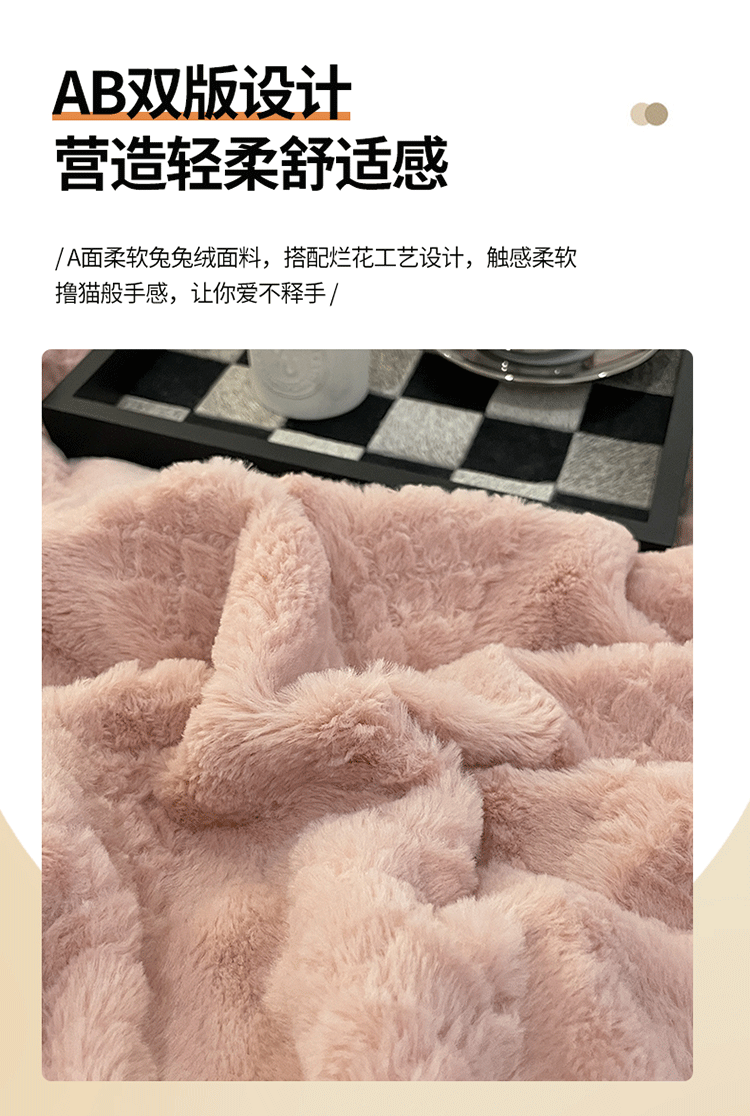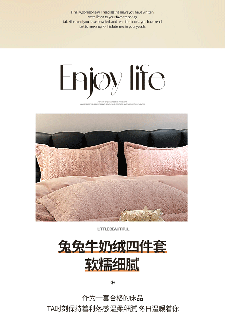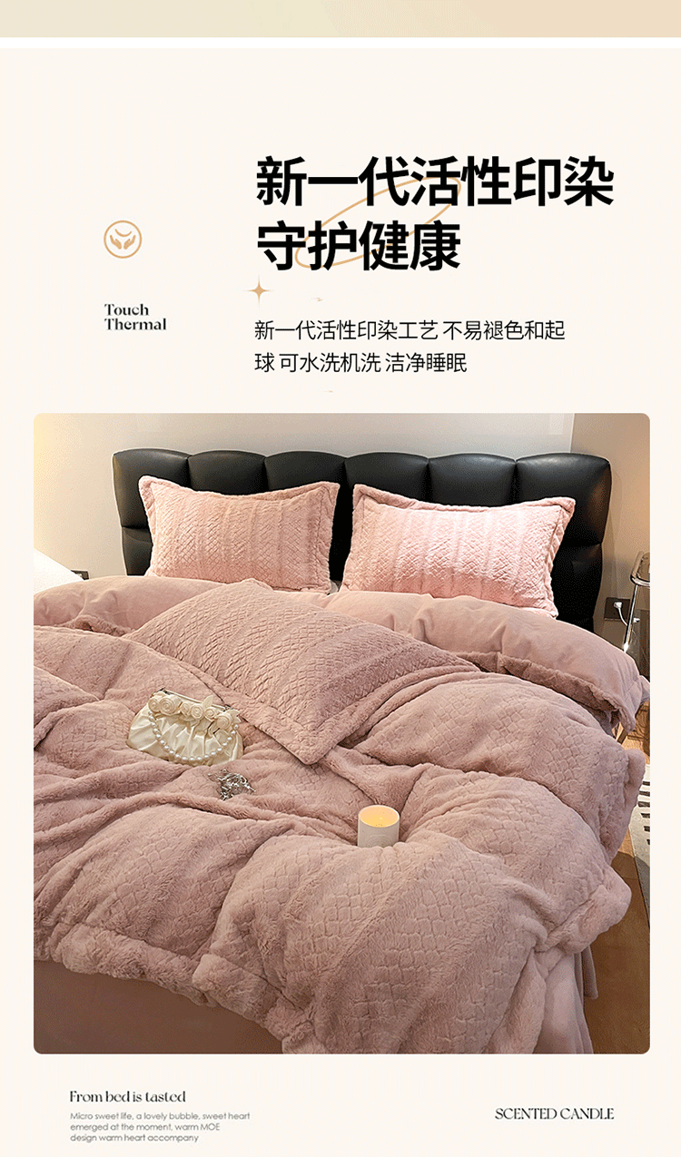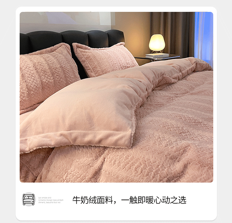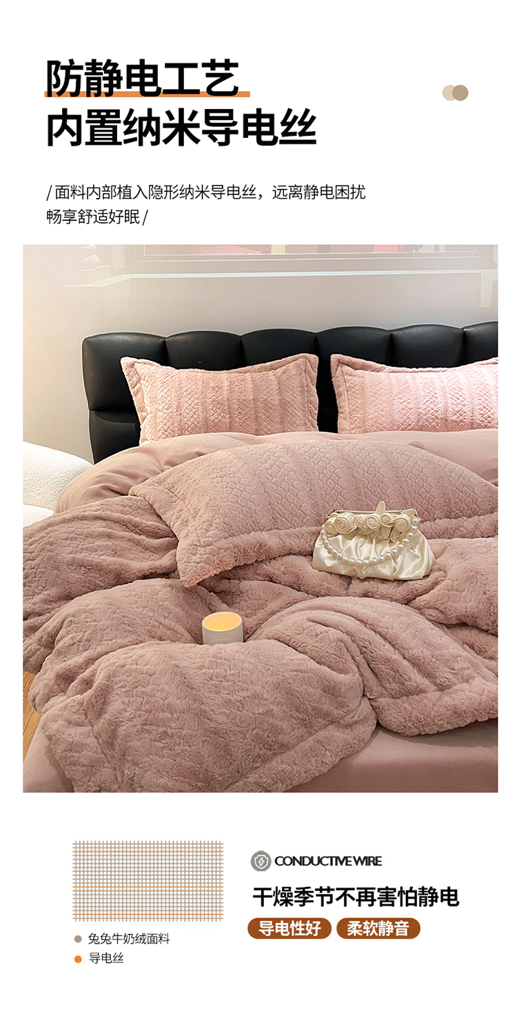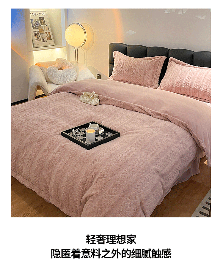 商品名称:米奈 2024新款新款高克重立体雕花兔兔绒四件套 粉豆沙
