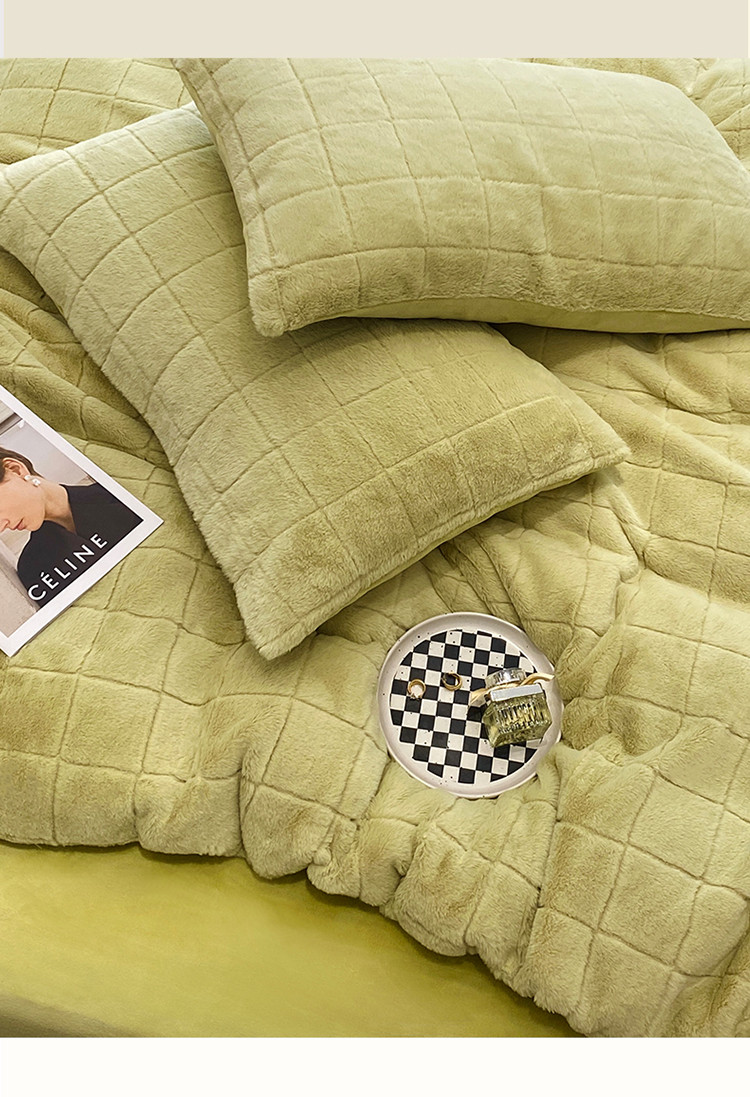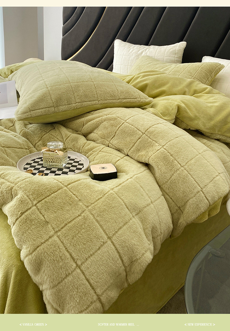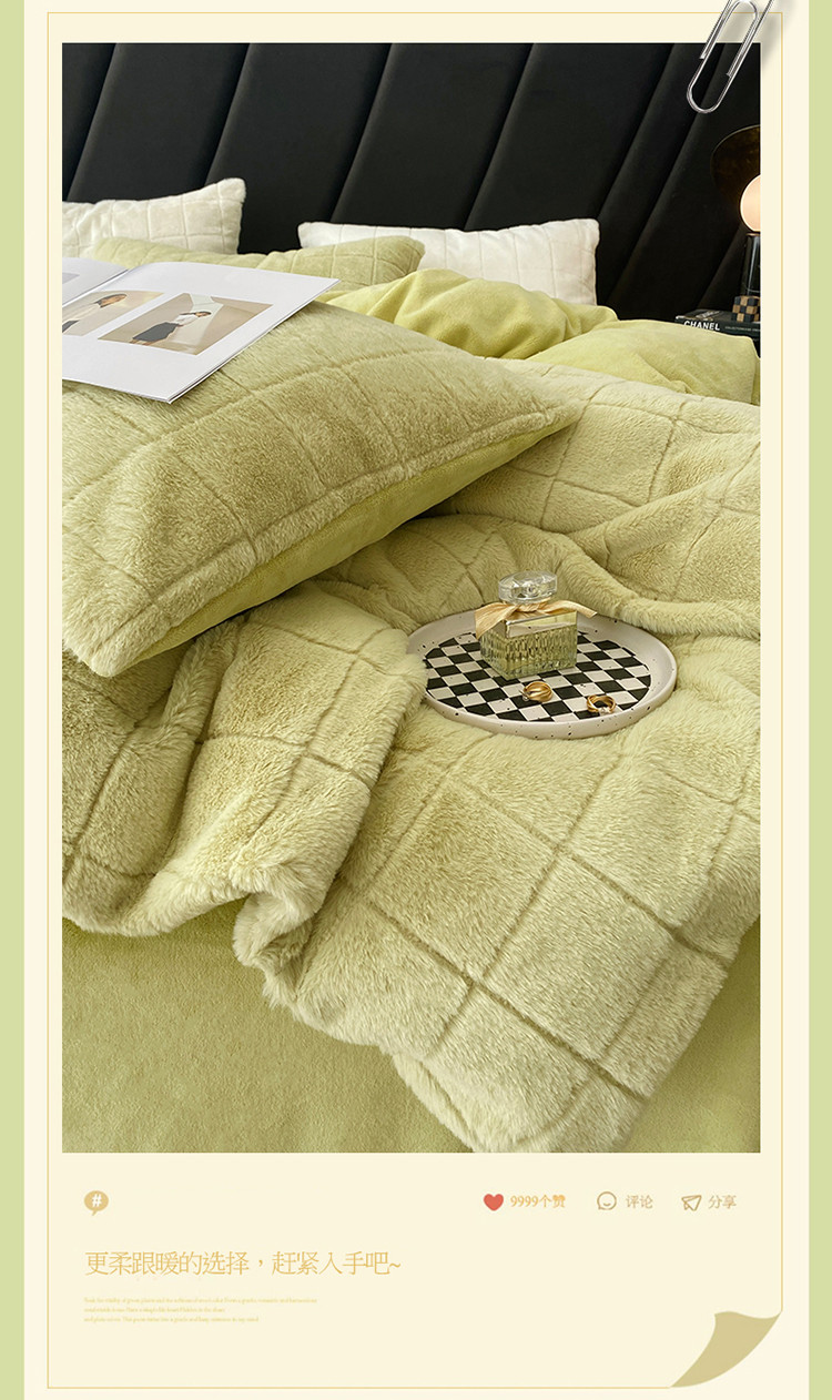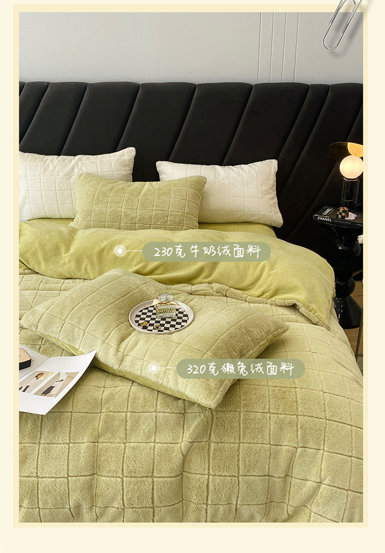 商品名称:名品优仓 2022新款獭兔绒四件套-莫尼卡 香草绿
