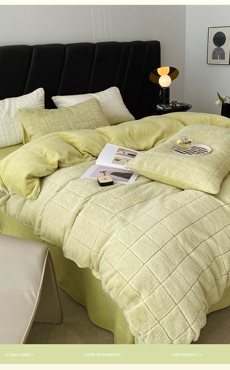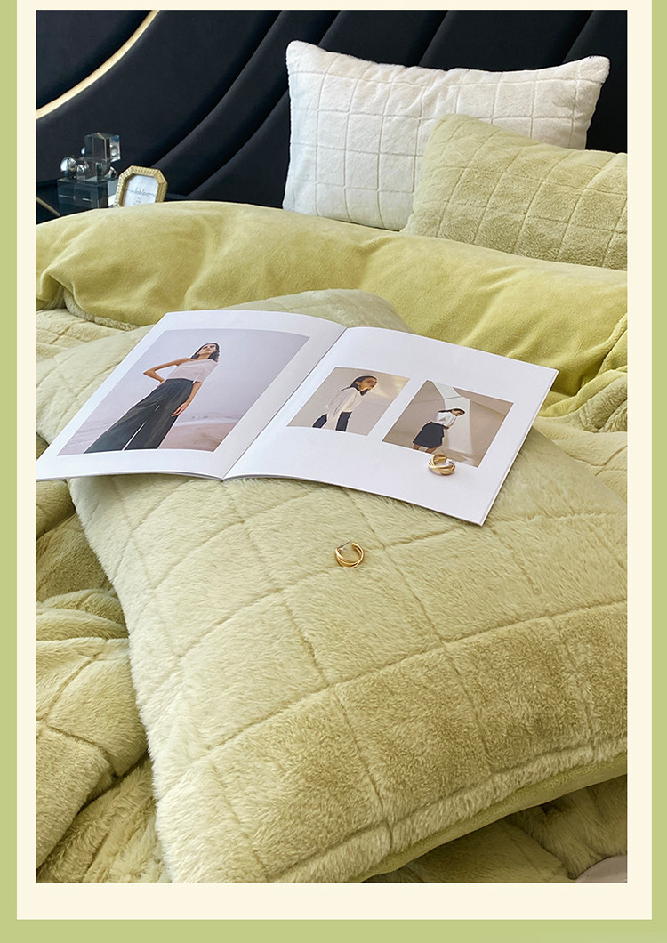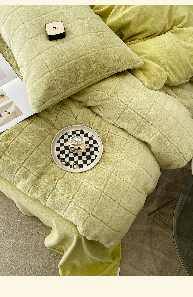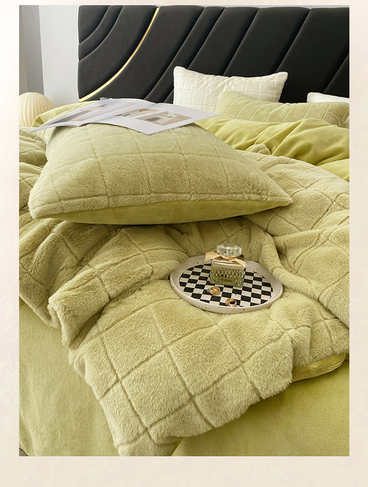 商品名称:名品优仓 2022新款獭兔绒四件套-莫尼卡 香草绿