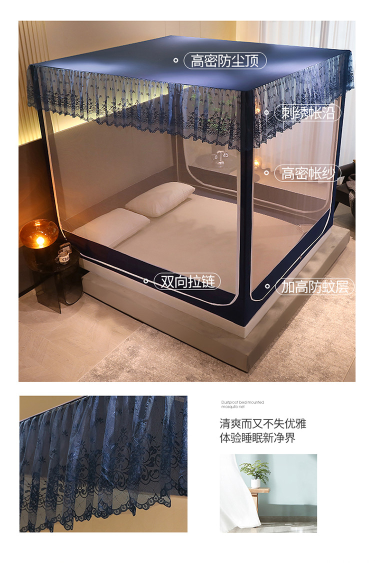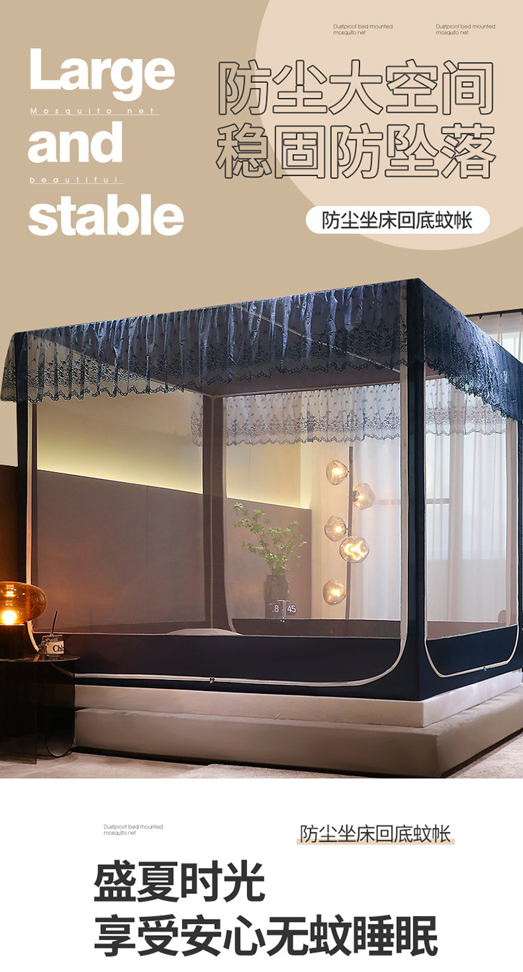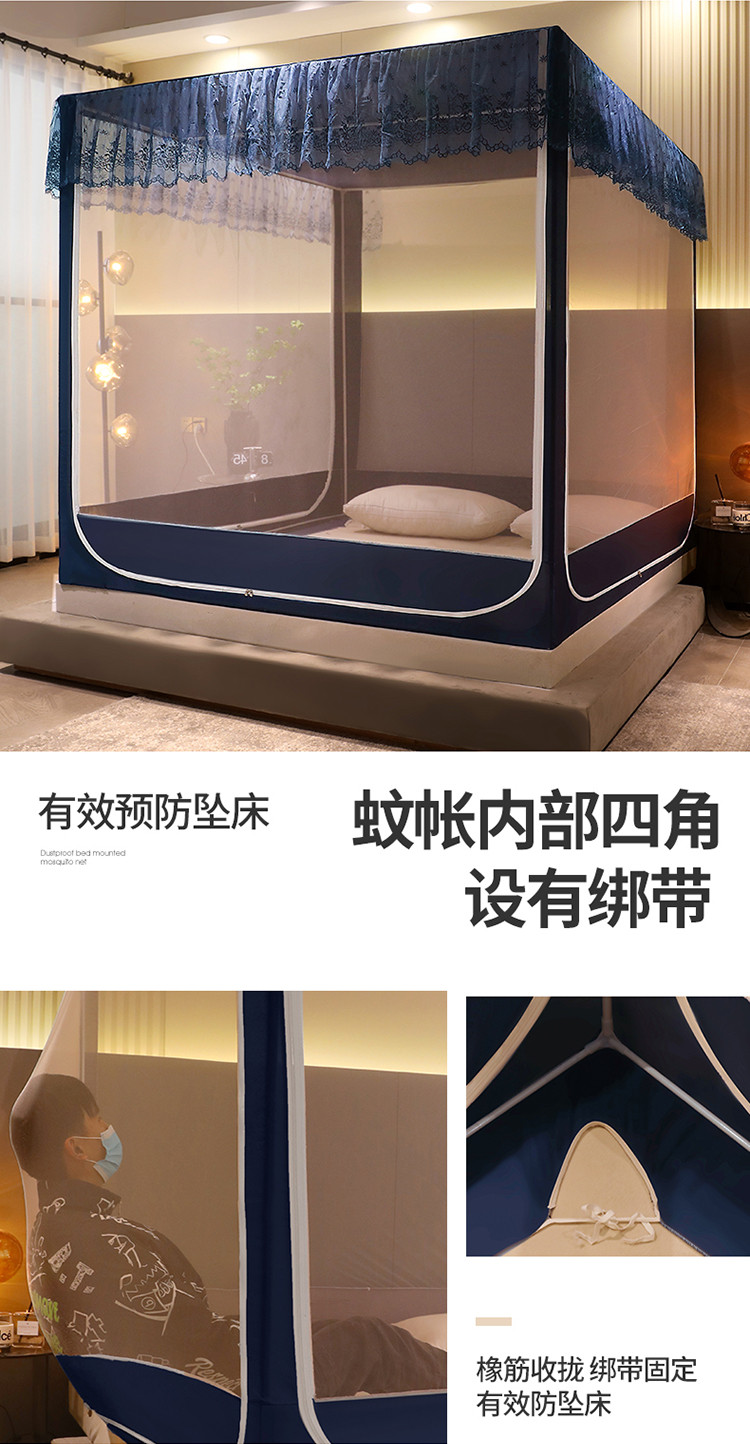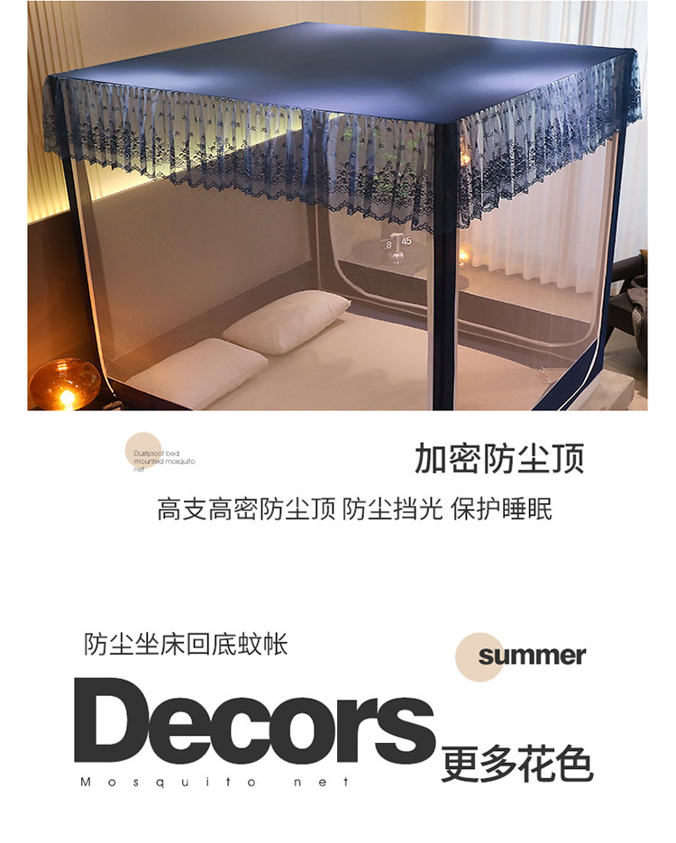 商品名称:千逸虹 2024新款防尘坐床回底蚊帐 优梦-藏青