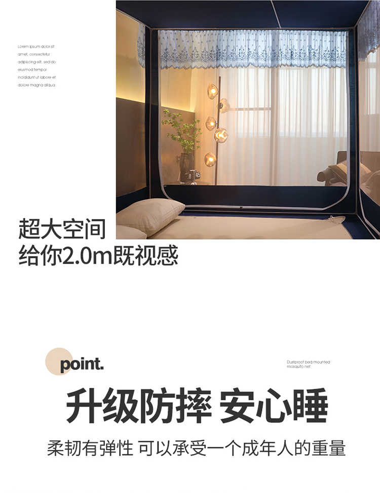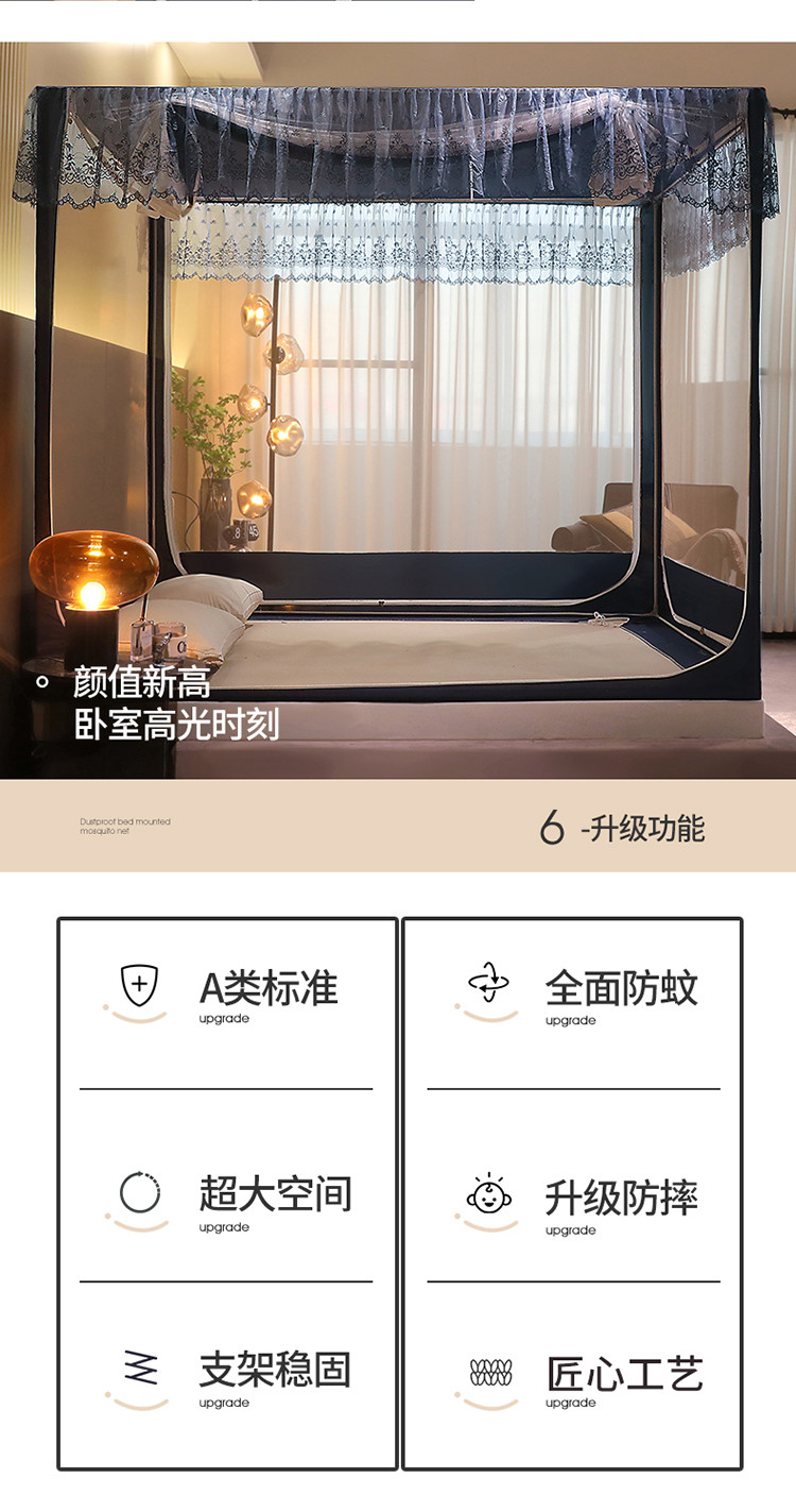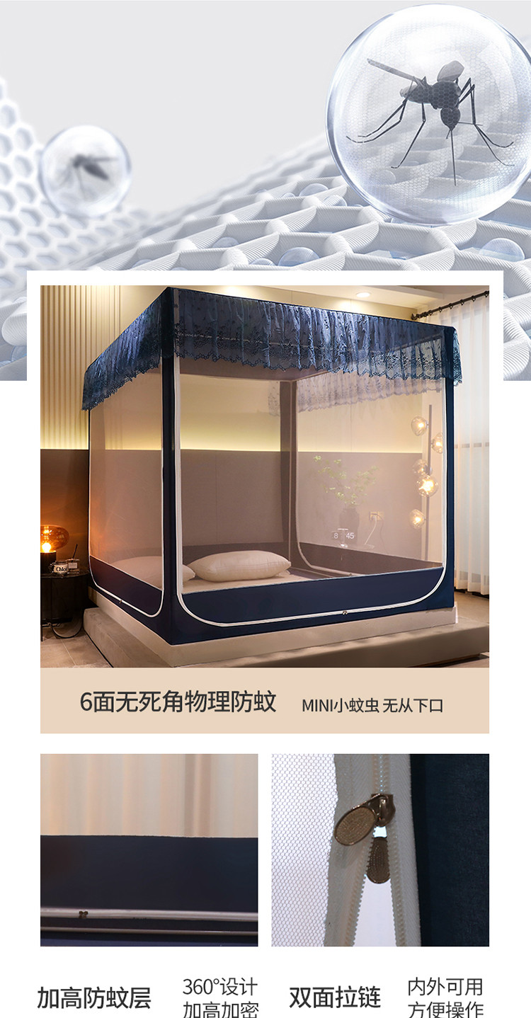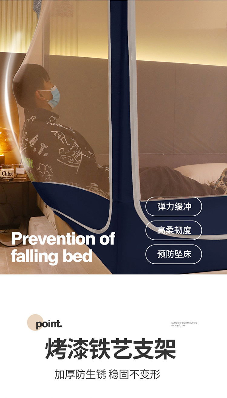 商品名称:千逸虹 2024新款防尘坐床回底蚊帐 优梦-藏青