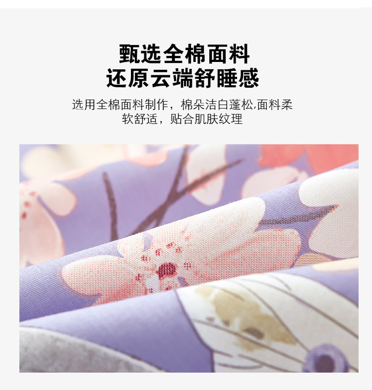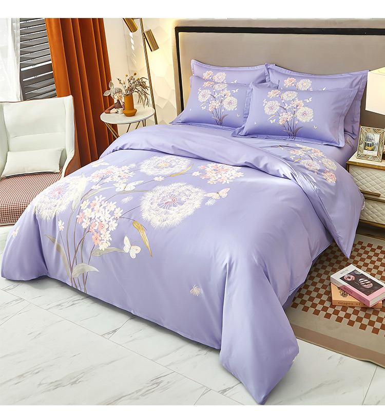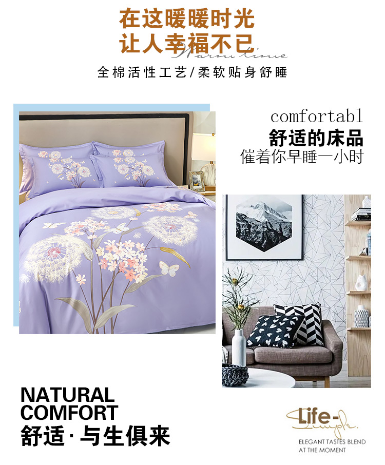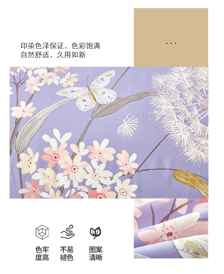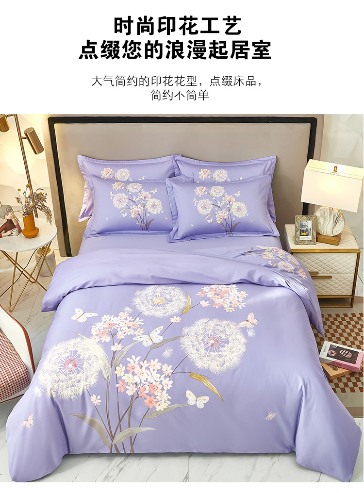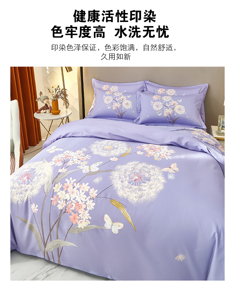 商品名称:雲归梦2023新款13372全棉活性大版印花简约居家四件套 兰亭若梦紫