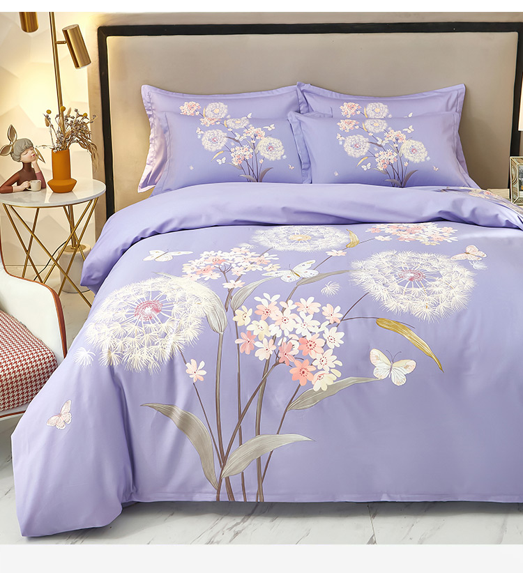 雲归梦2023新款13372全棉活性大版印花简约居家四件套 兰亭若梦紫