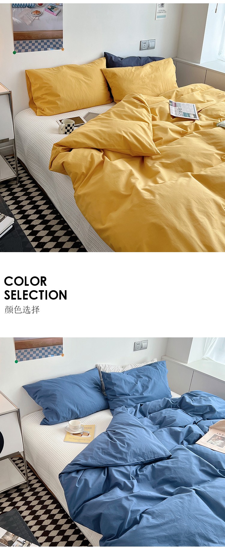 北欧风ins纯棉水洗棉床四件套全棉简约被套床单上三件套床笠,白色+藏青,藏青+浅蓝,鹅黄+螺旋藻绿,鹅黄+牛油果,螺旋藻绿+鹅黄,千夏紫+水貂灰,千夏紫+薇薇紫,薇薇紫+浅灰,浅蓝+鹅黄,浅蓝+白色,浅蓝+藏青