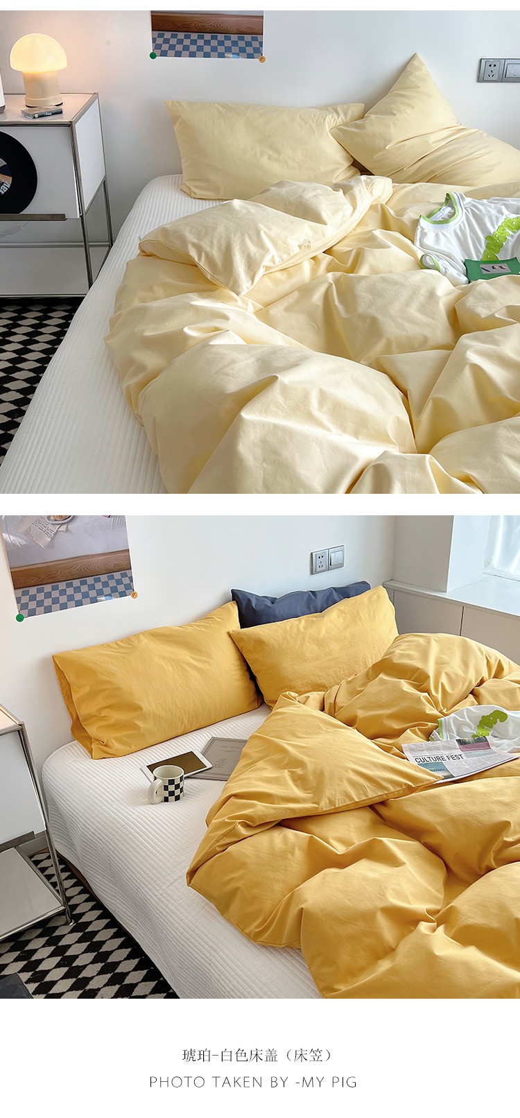 商品名称:猪先生 2022新款极简风纯棉床盖床笠四件套 琥珀+极简白