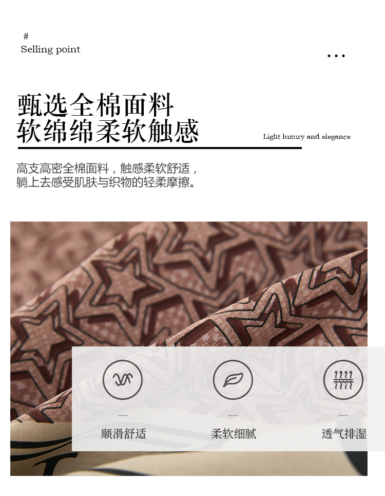 商品名称:雲归梦 新款13372全棉活性工艺款小版印花四件套 劳伦咖