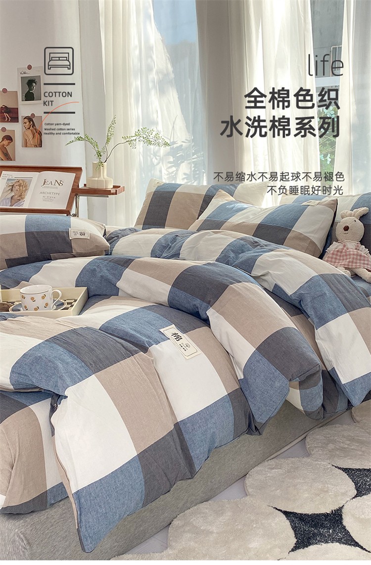 当前位置: 91家纺网 > 商品网购 > 床品套件 > 四件套 > 水洗棉四件套 > 云家2023无印风色织全棉纯棉水洗棉系列四件套纯色格子 蓝大格