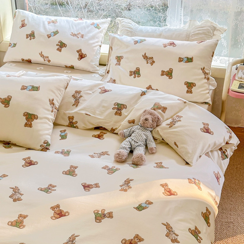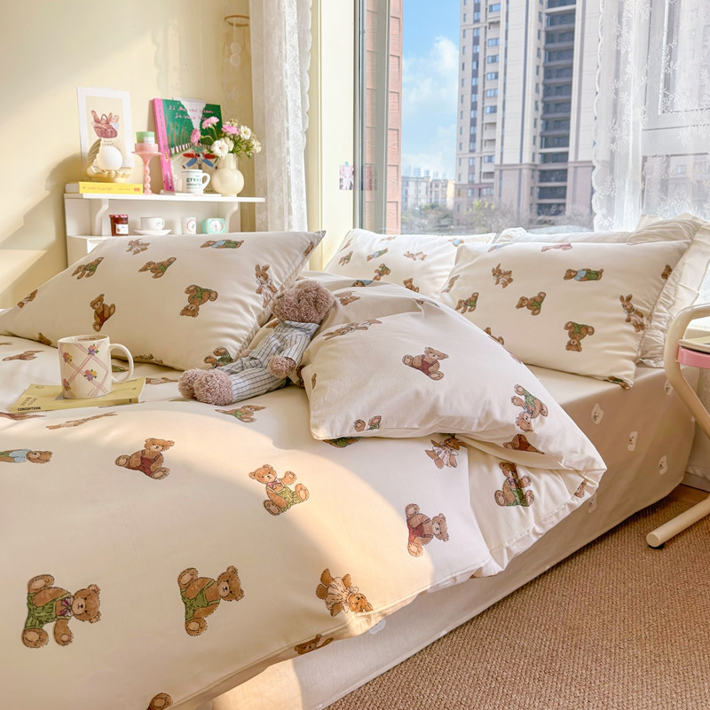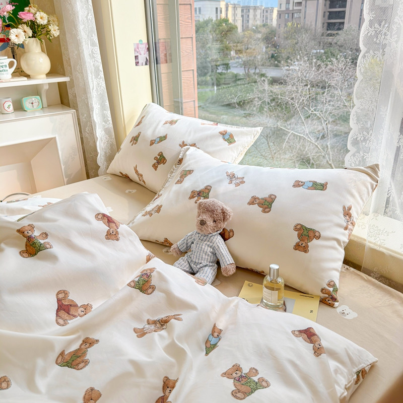 商品名称:沐辰 2023新款13372全棉印花四件套-萌趣系列 泰迪小熊