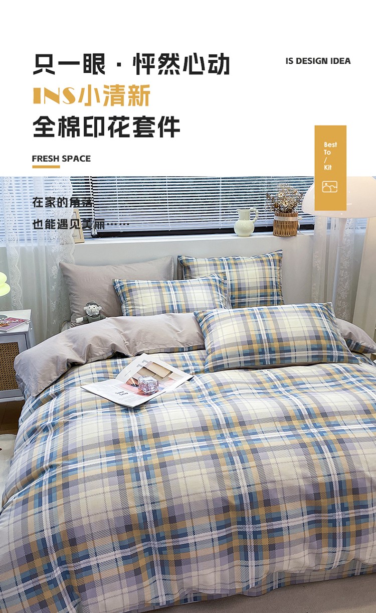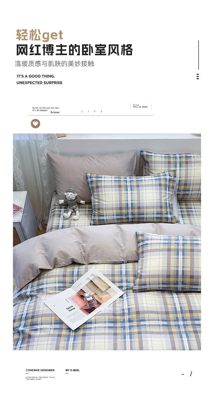 商品名称:绵庭 2023新款12868全棉ins小清新印花四件套 悠闲格调-浅咖