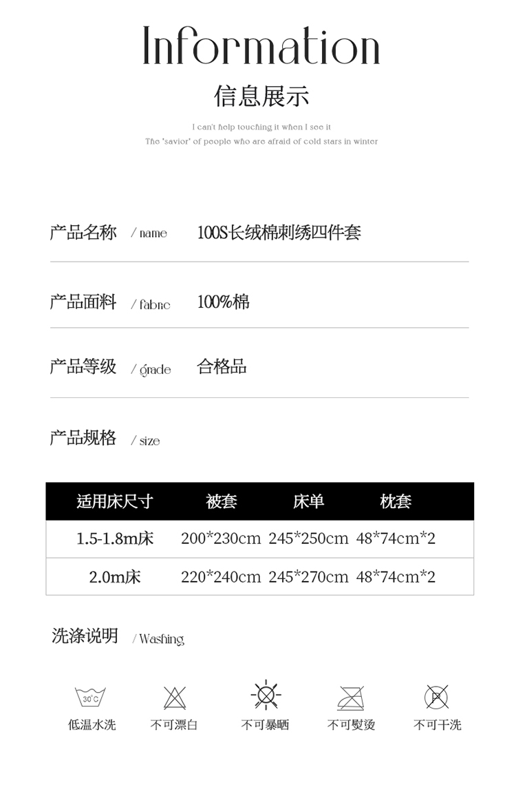 商品名称: (总)名品优仓 2023新款高支高密长绒棉刺绣款四件套-简忆