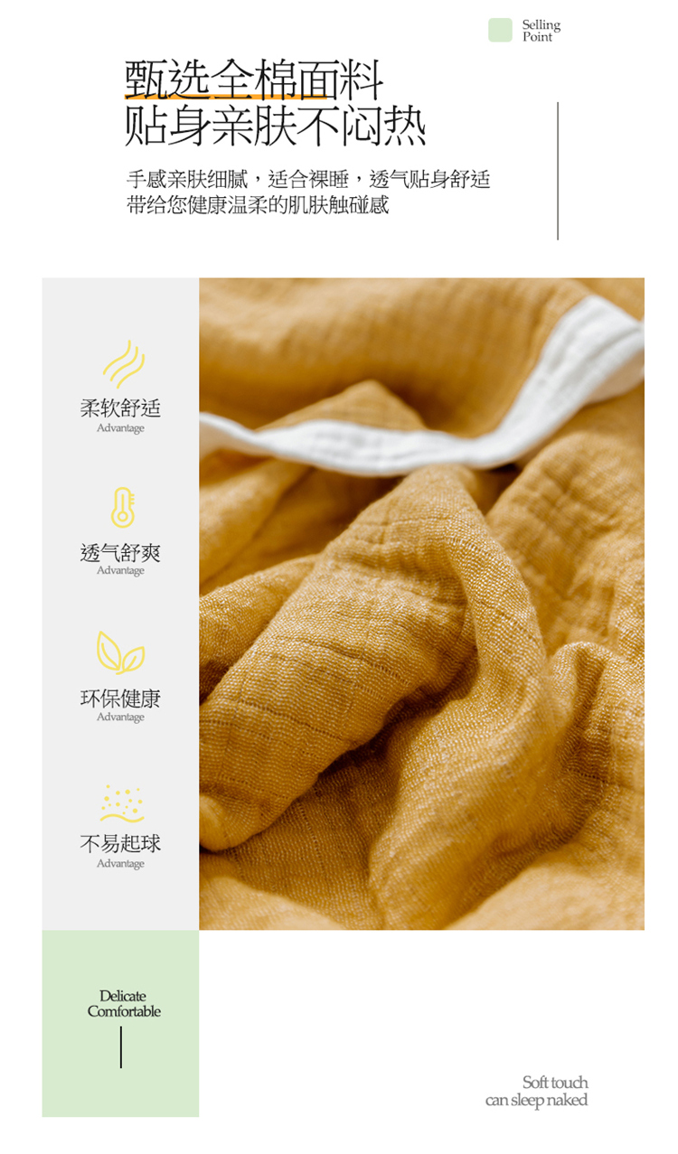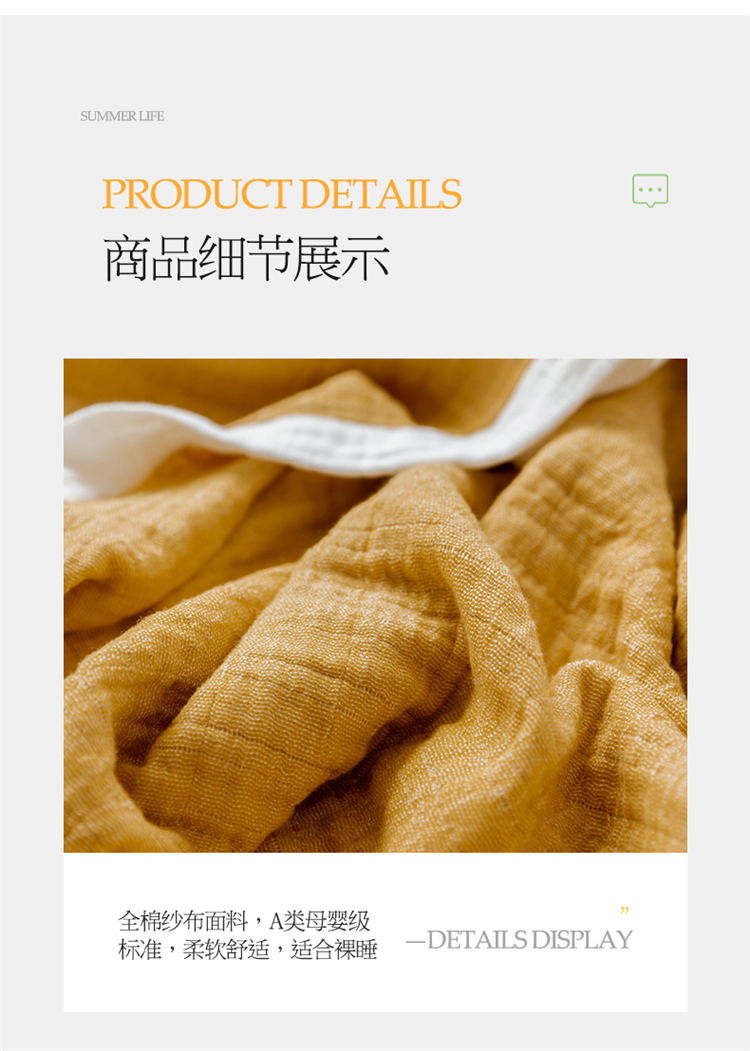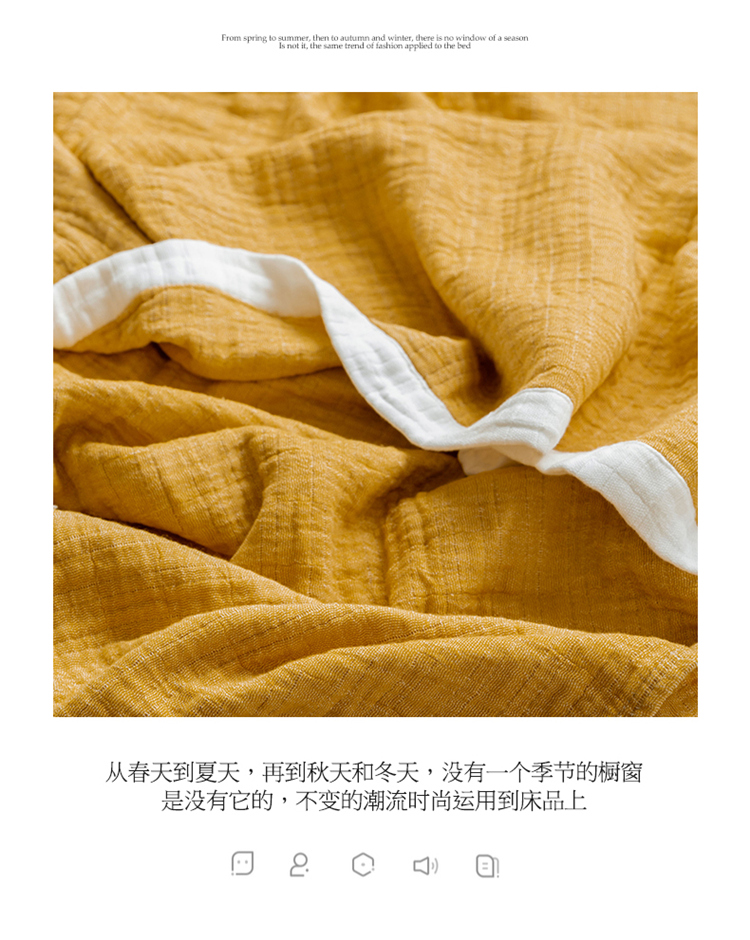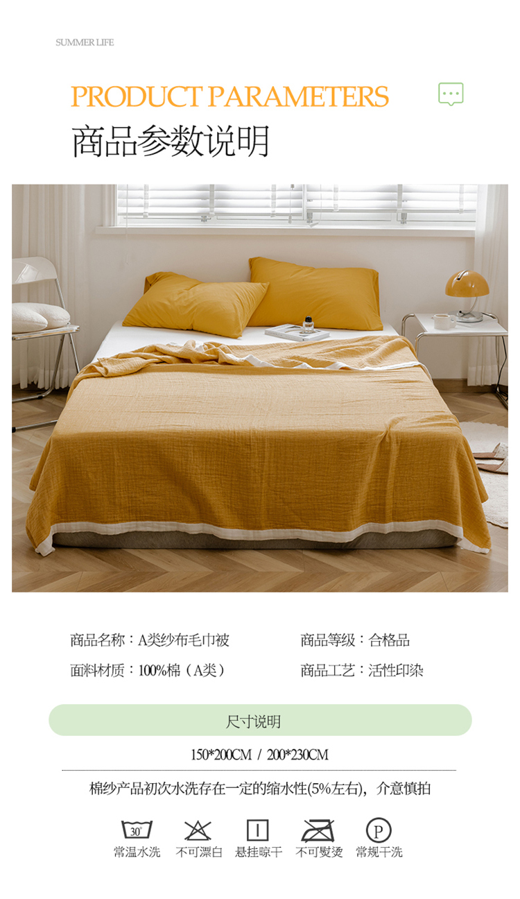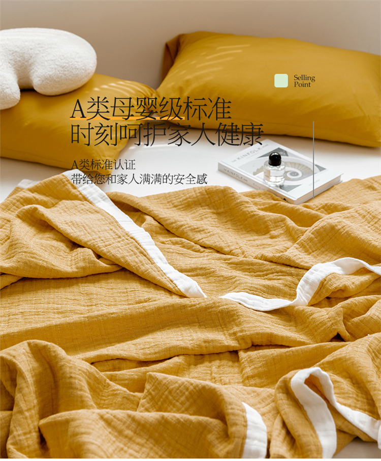 商品名称:雯雨家纺2023新款A类全棉纱布毛巾被 明黄