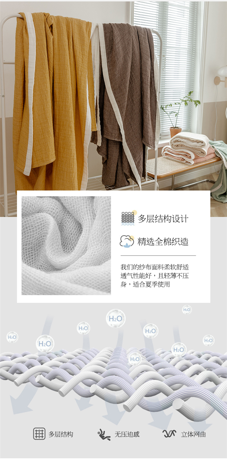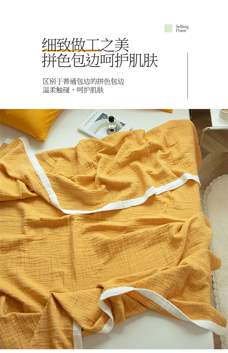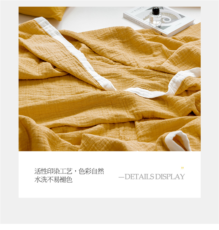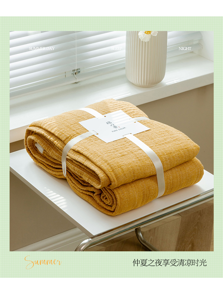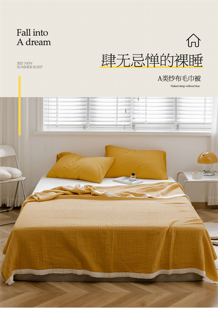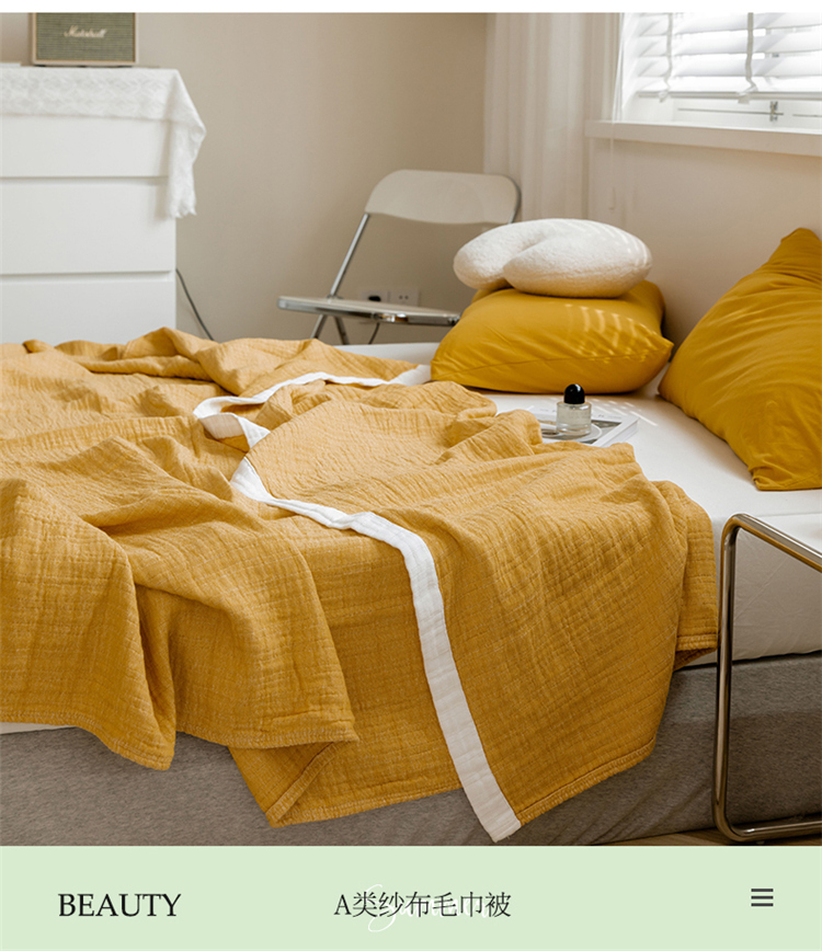 雯雨家纺2023新款A类全棉纱布毛巾被 明黄
