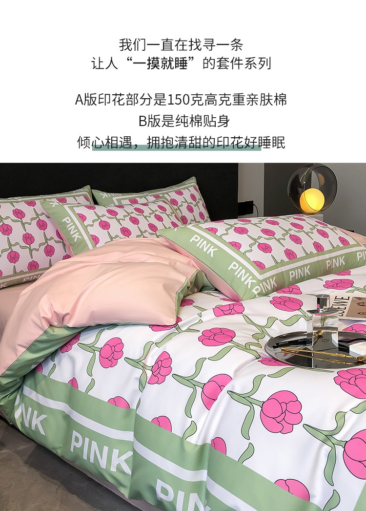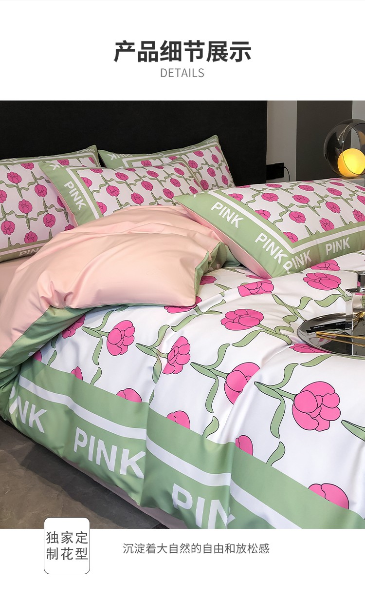 当前位置: 91家纺网 > 商品网购 > 床品套件 > 四件套 > 全棉普通四件套 > 色鬼布艺 2023新款13376纯棉潮牌床单床笠款四件套 轻奢粉色郁金香