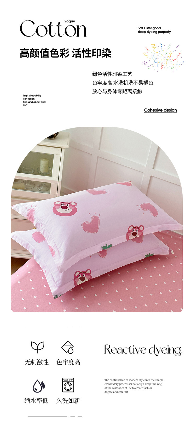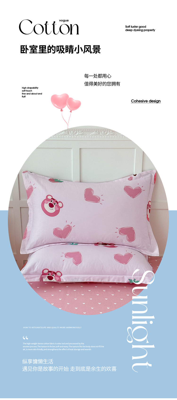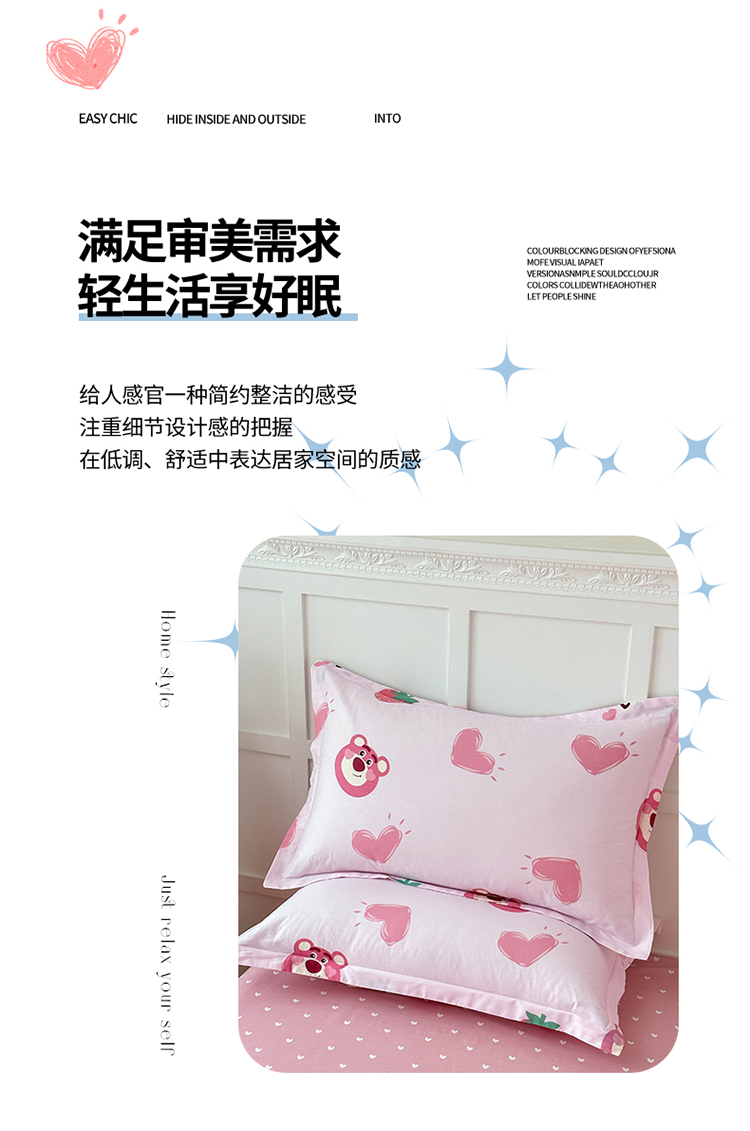 商品名称:帛织澜 2025新款全棉喷气12868系列纯棉枕套 甜心乐园