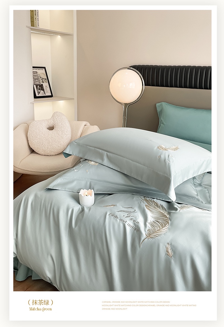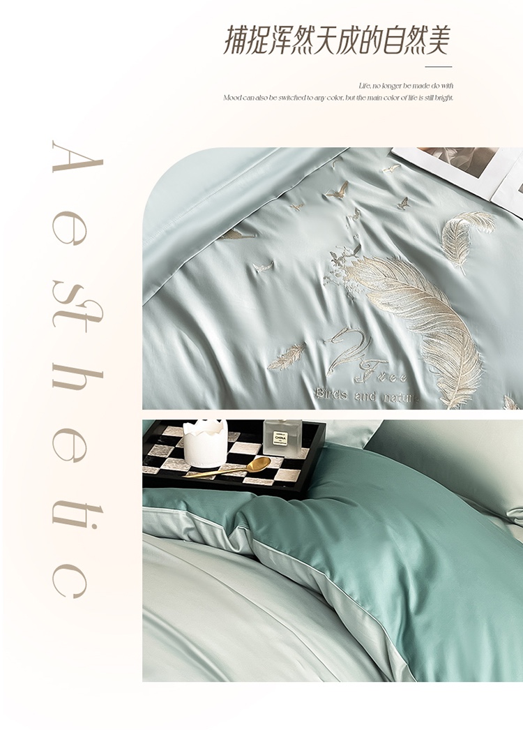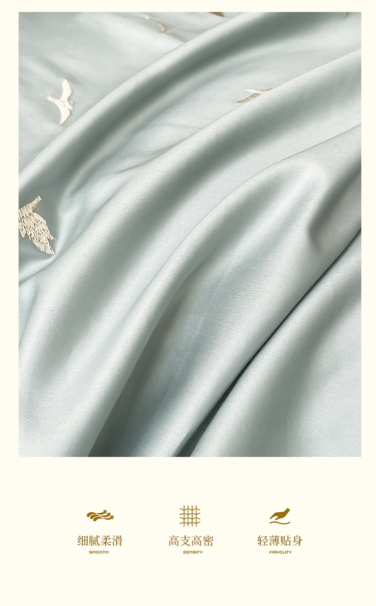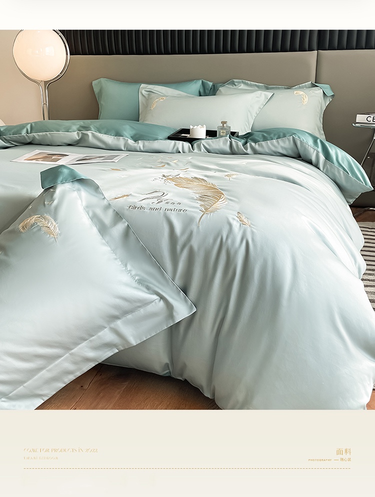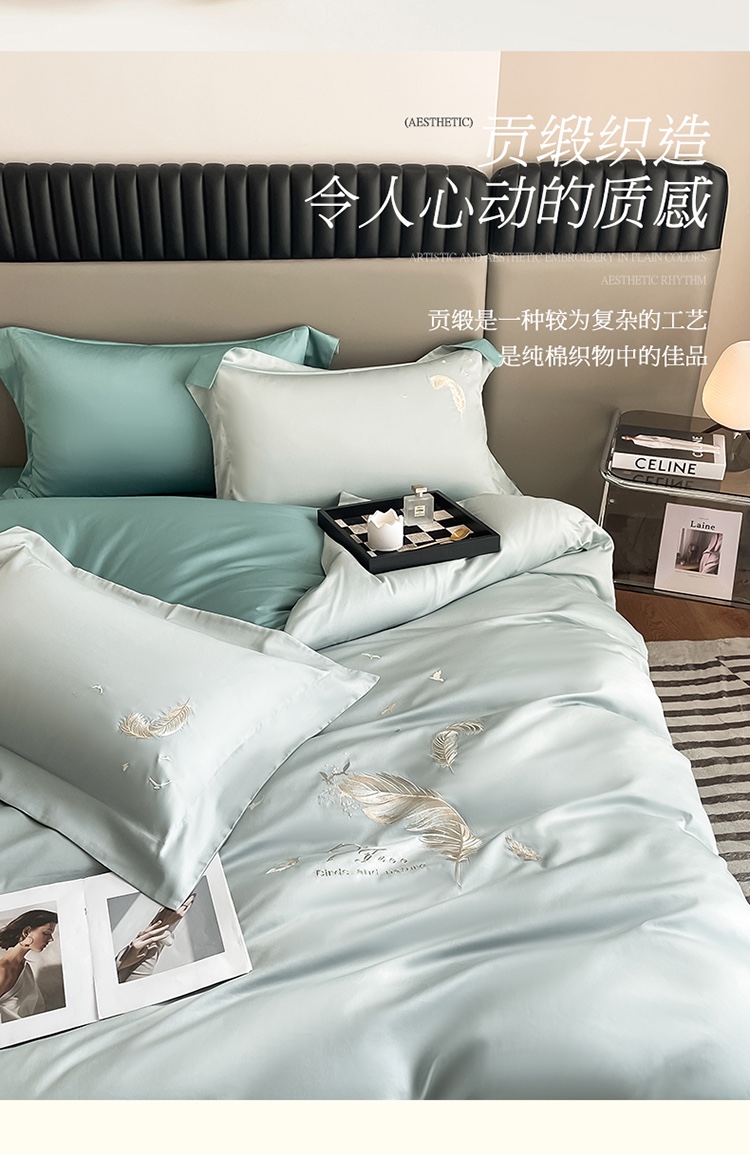 商品名称:蓝米卡夫 2024全棉高级感长绒棉刺绣兰羽系列-单被套 兰羽-梵星石蓝