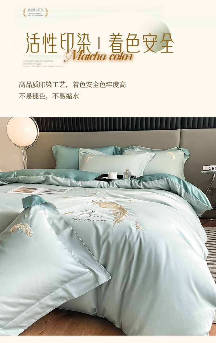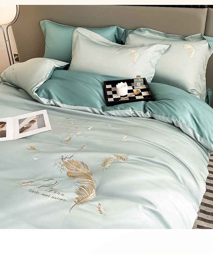 蓝米卡夫 2024全棉高级感长绒棉刺绣兰羽系列-单被套 兰羽-梵星石蓝