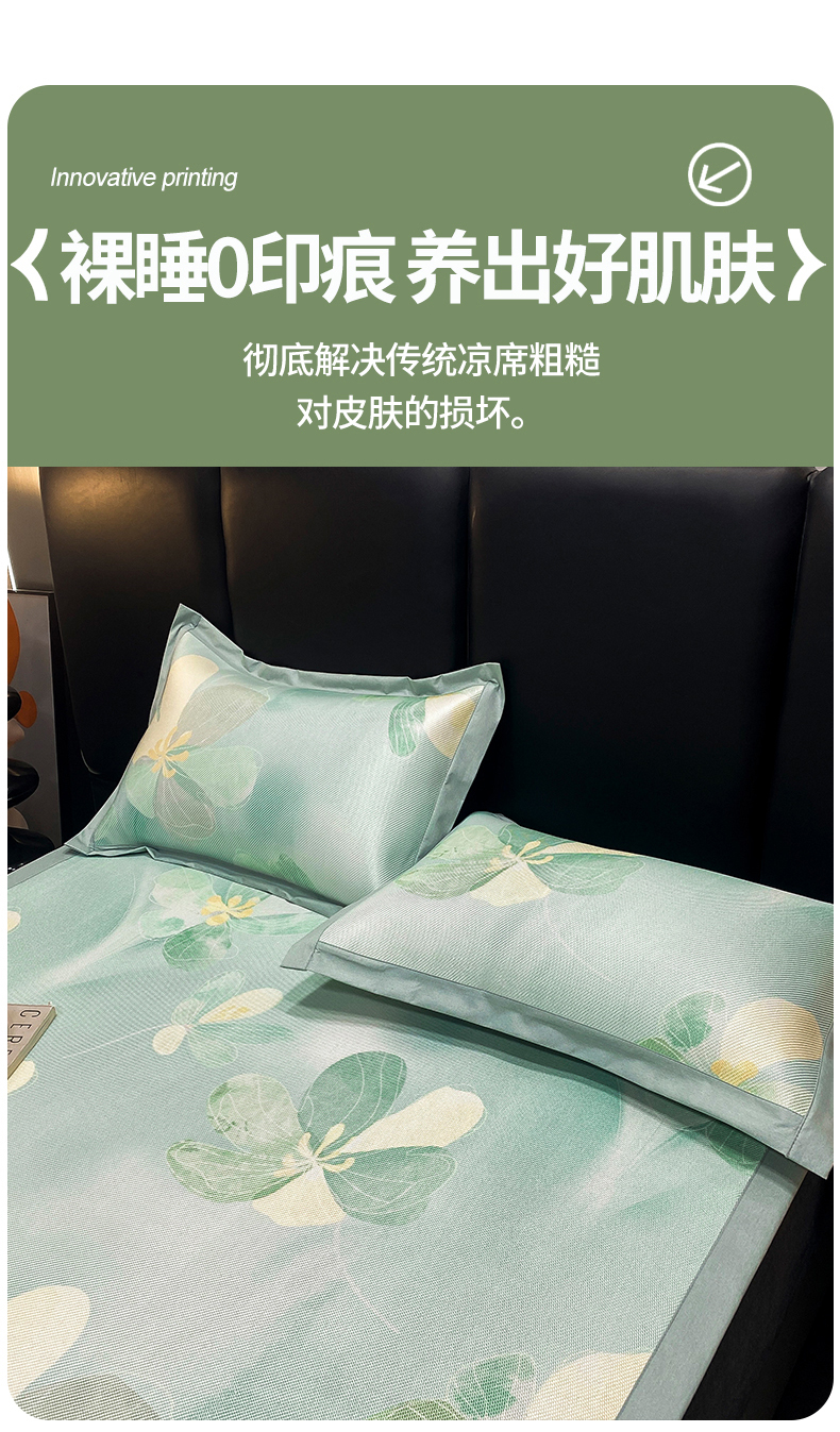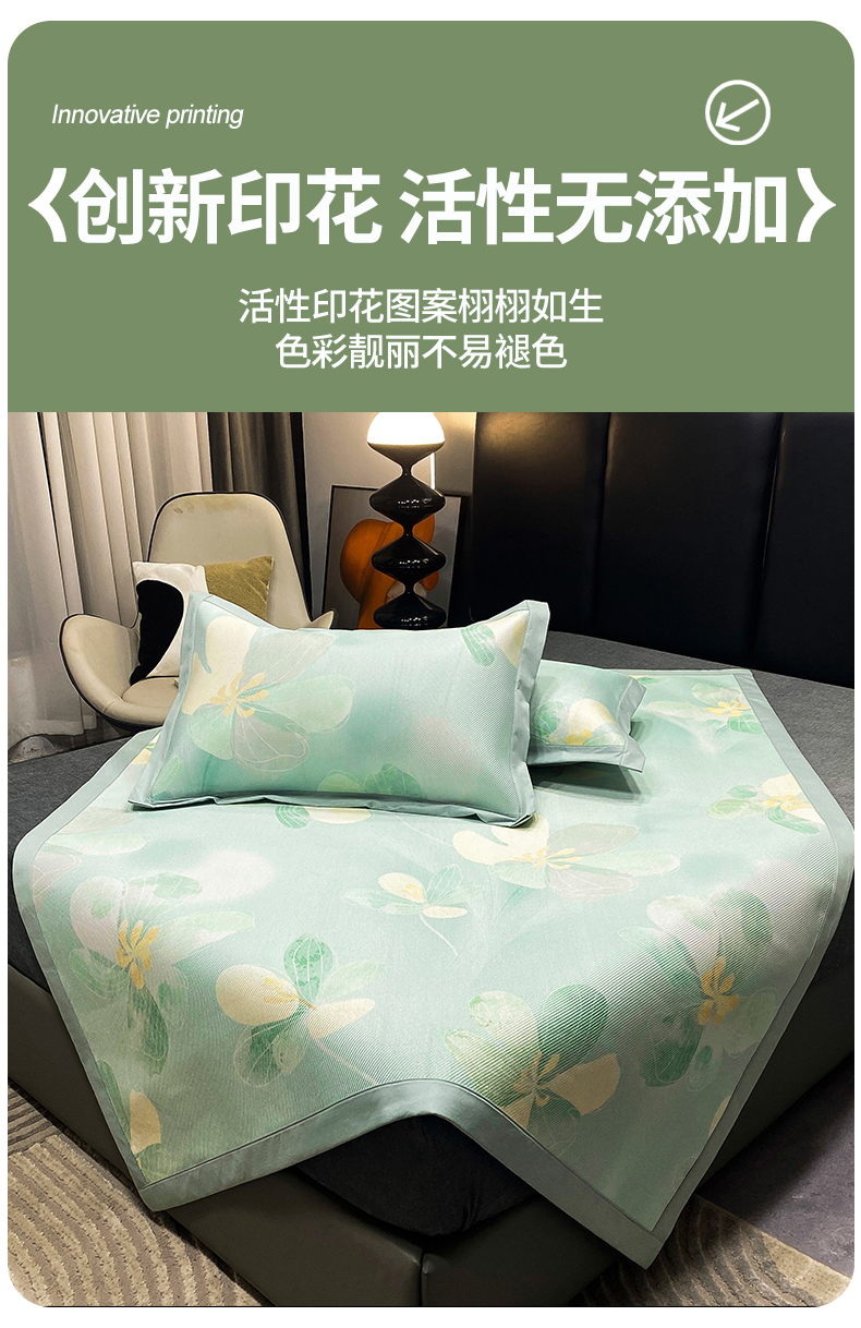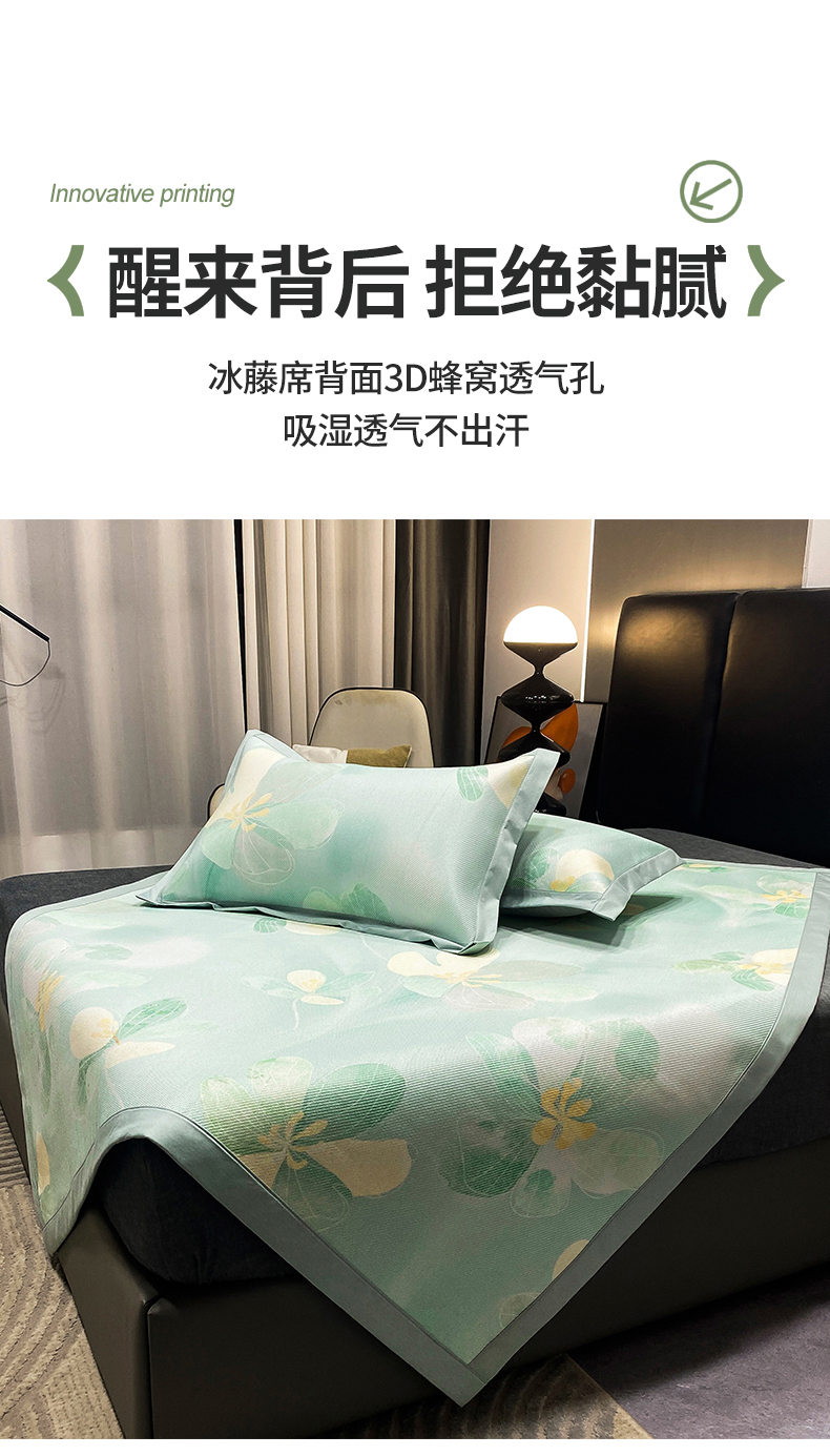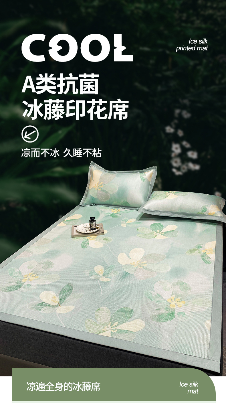 商品名称:席佬大2025新款A类数码印花冰藤软凉席 苍兰