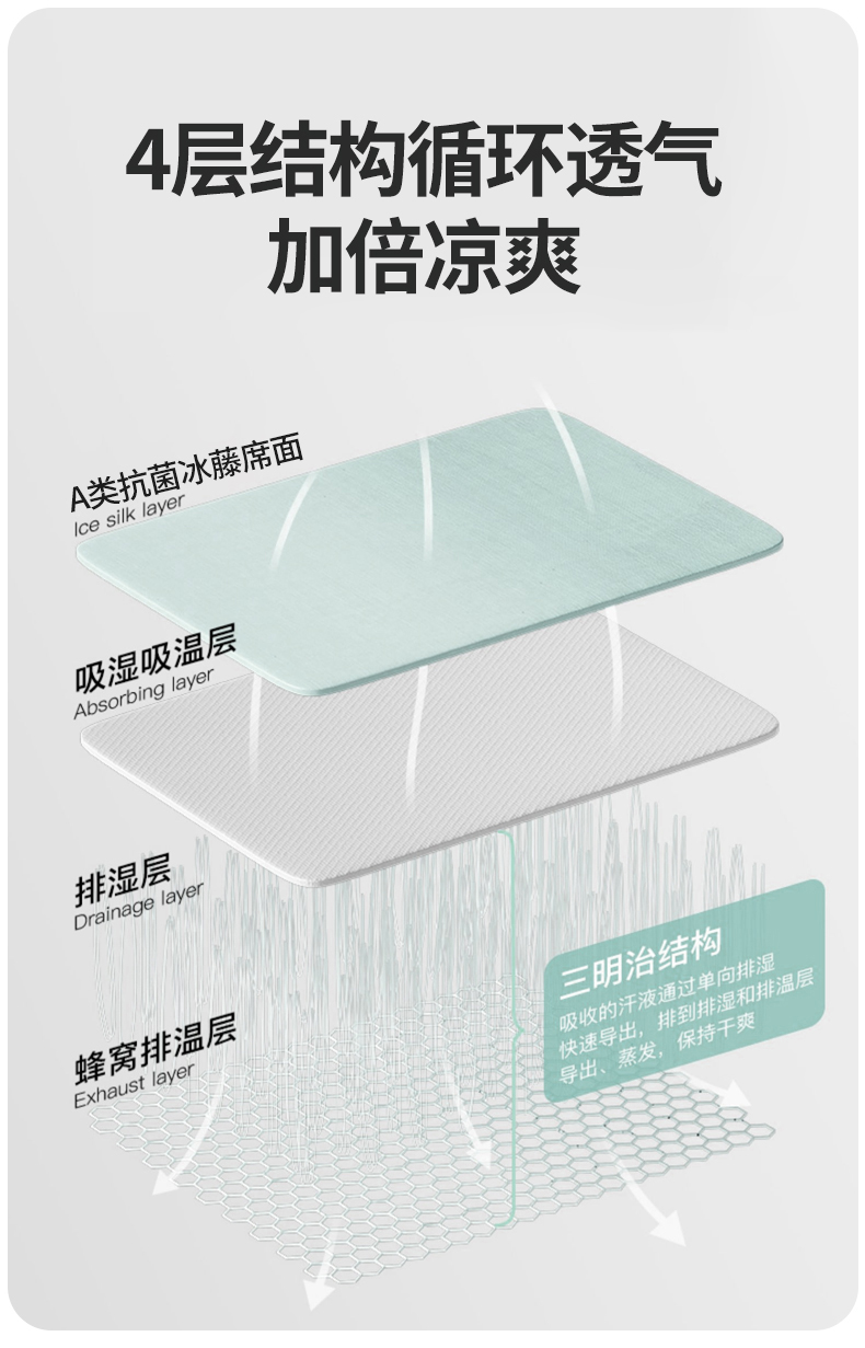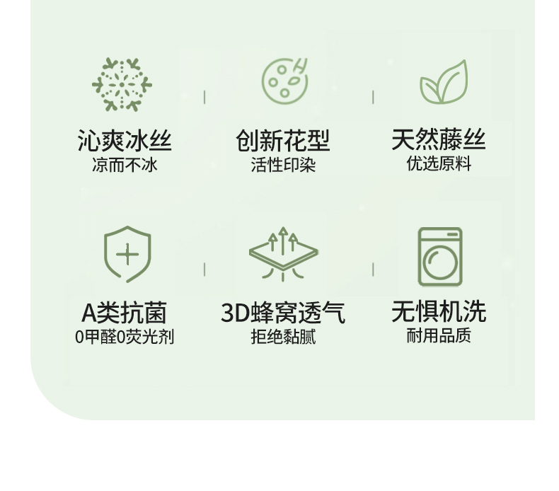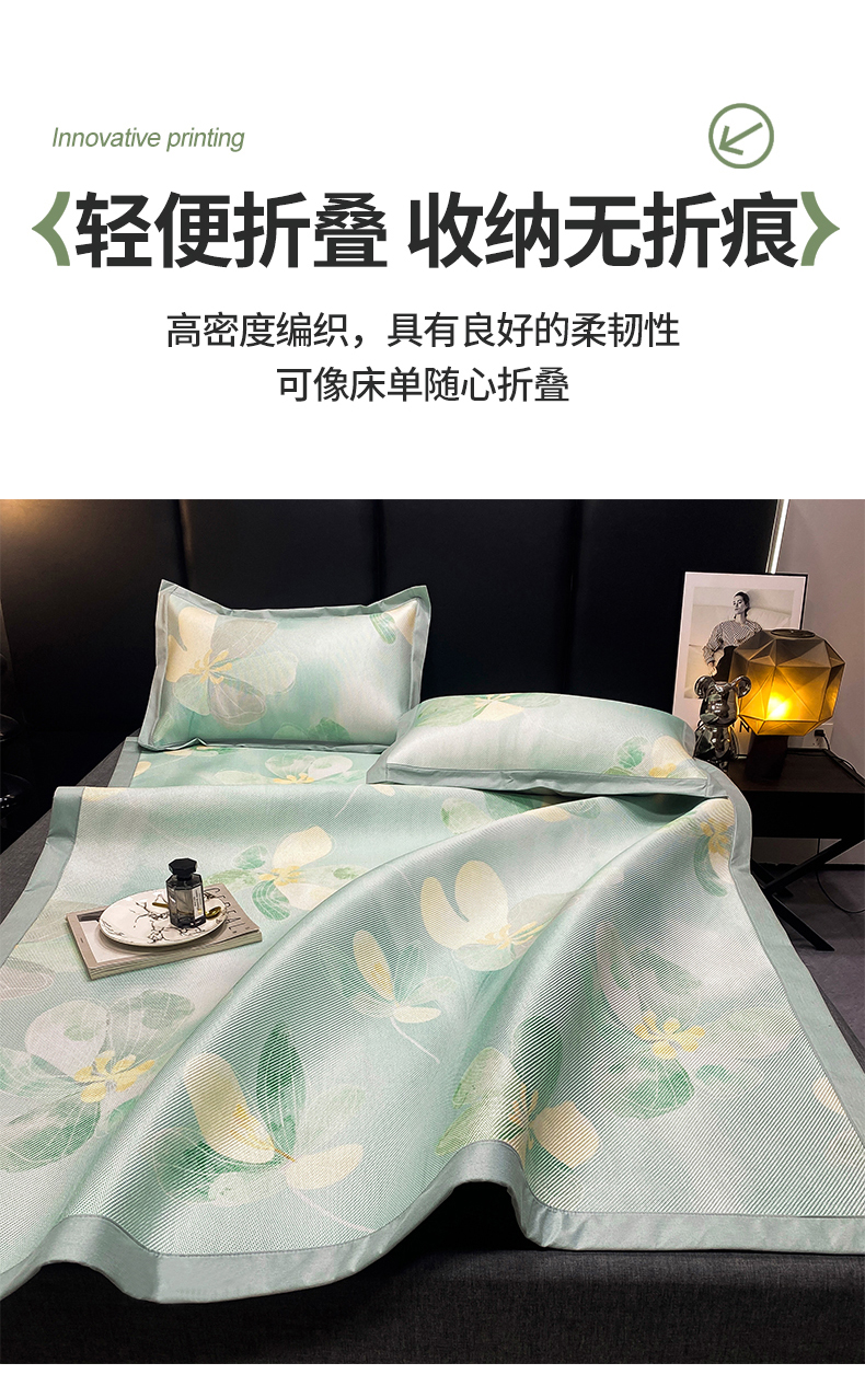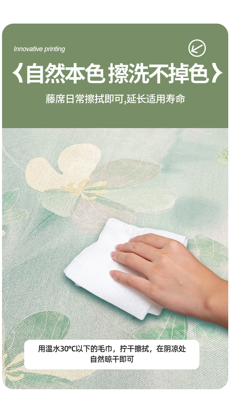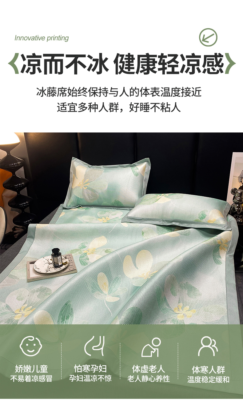 商品名称:席佬大2025新款A类数码印花冰藤软凉席 苍兰
