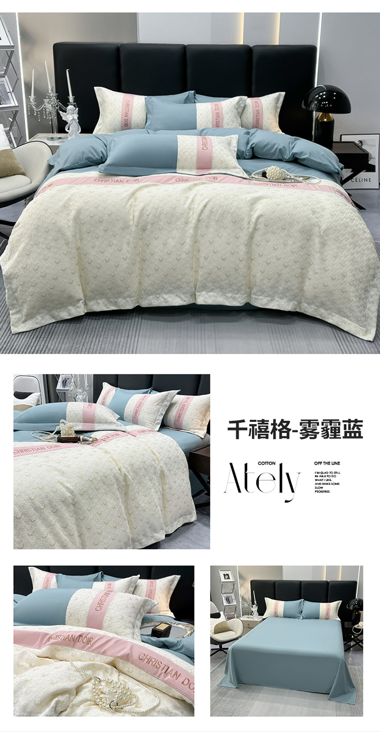 当前位置: 91家纺网 > 商品网购 > 床品套件 > 四件套 > 全棉活性四件套 > 慕语 2023新款千禧格磨毛四件套 千禧格-雾霾蓝