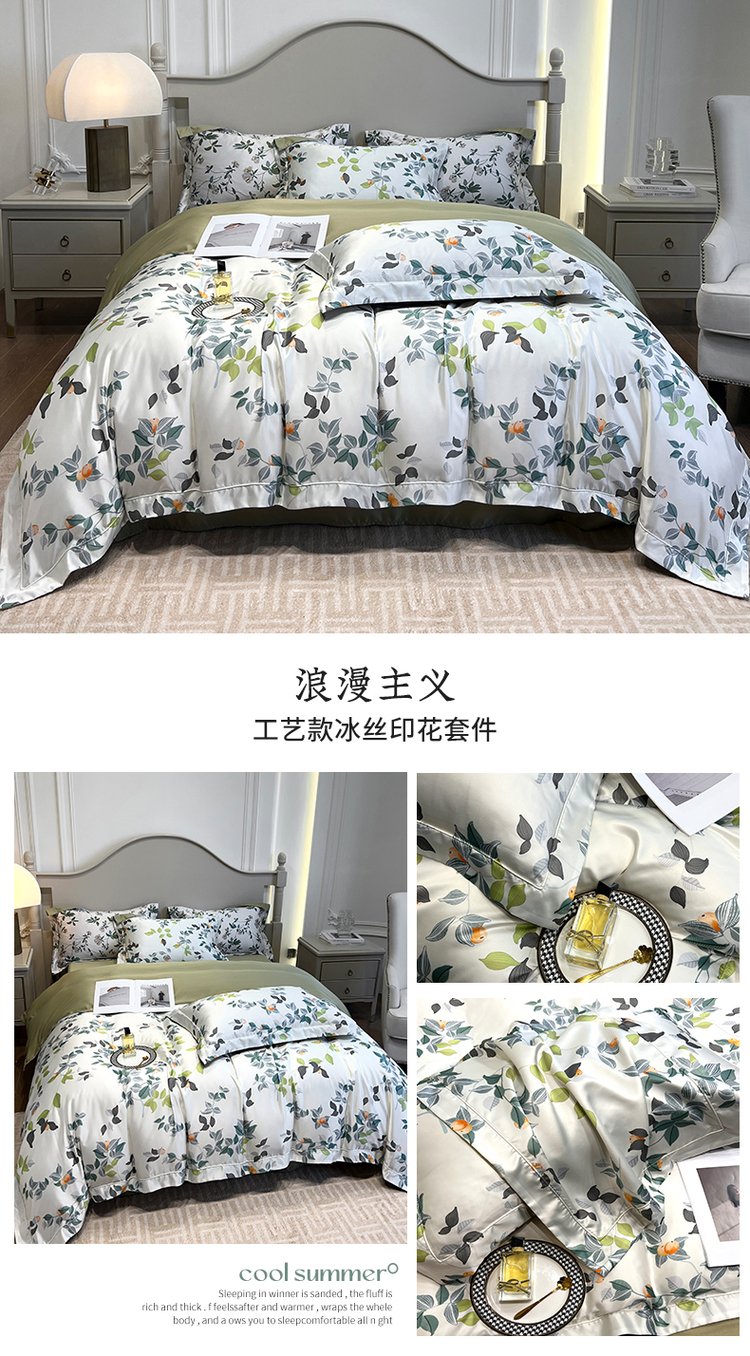 当前位置: 91家纺网 > 商品网购 > 床品套件 > 四件套 > 水洗真丝四件套 > 优悦2023新款印花美式冰丝水洗真丝四件套 浪漫主义