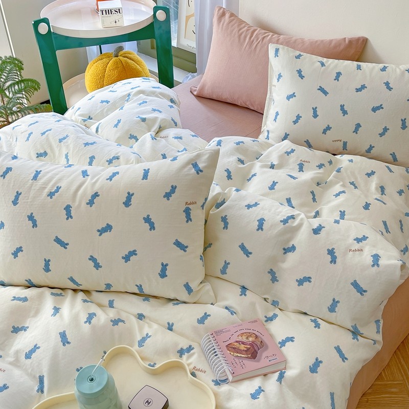 (总)时年 2022新款全棉水洗棉四件套嵌绳款,爱丽丝蓝(浅蓝),克莱因蓝(深蓝)