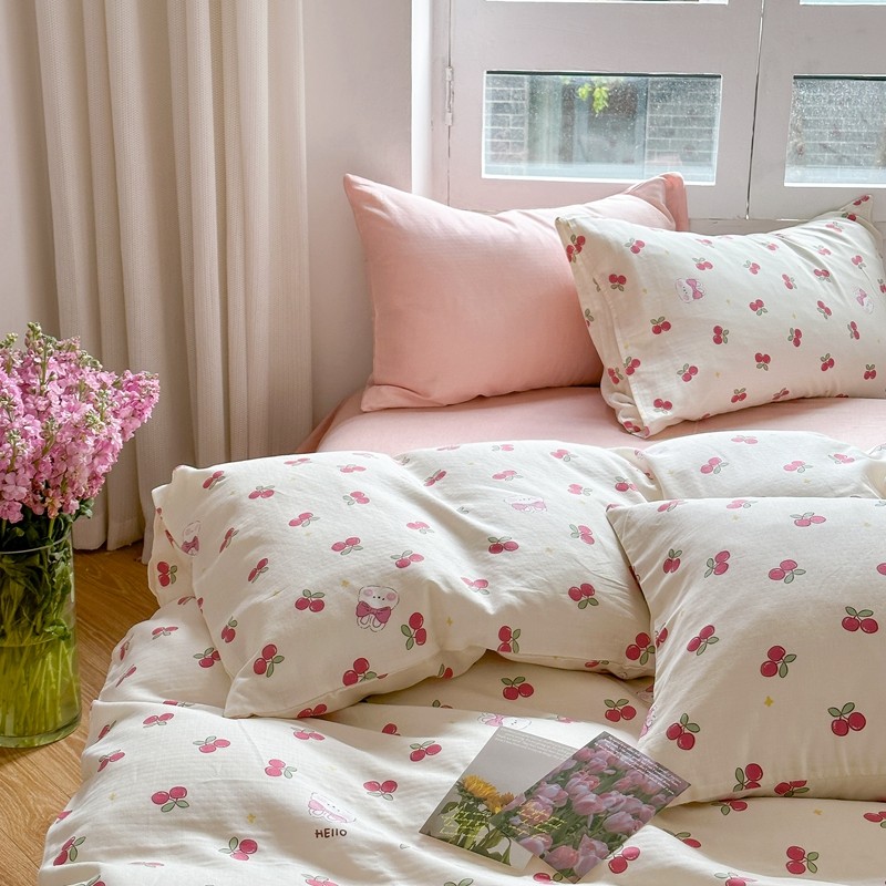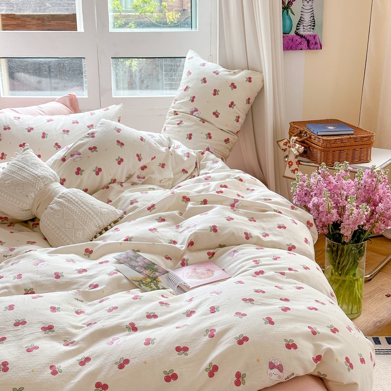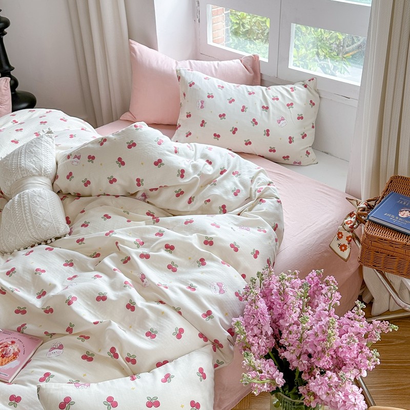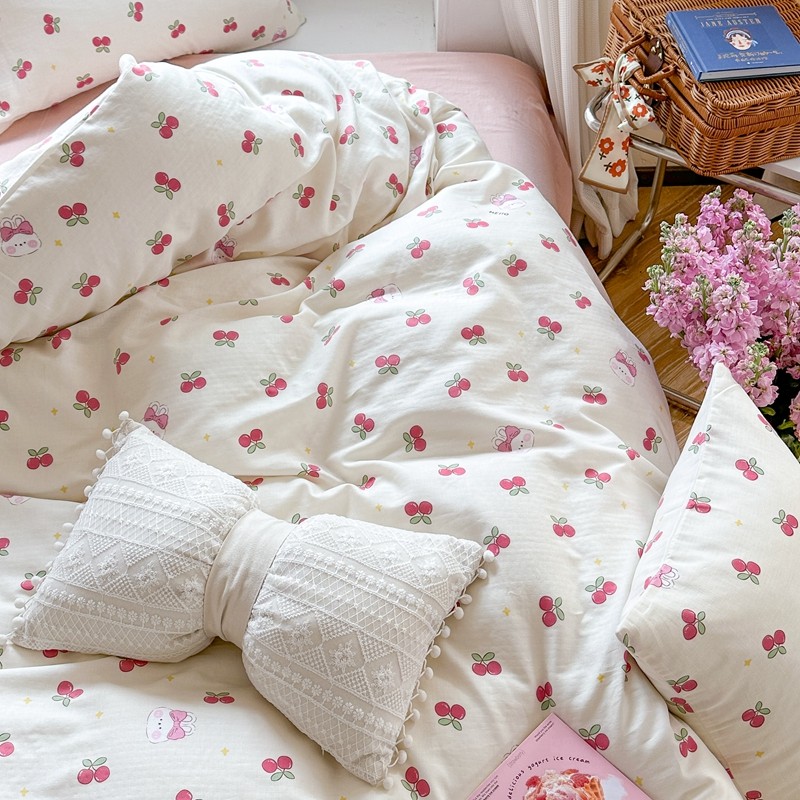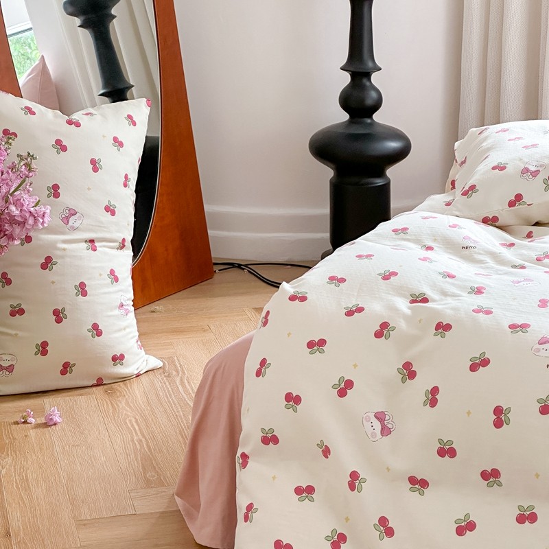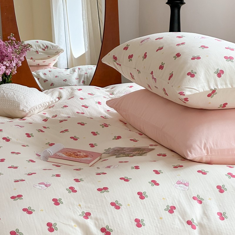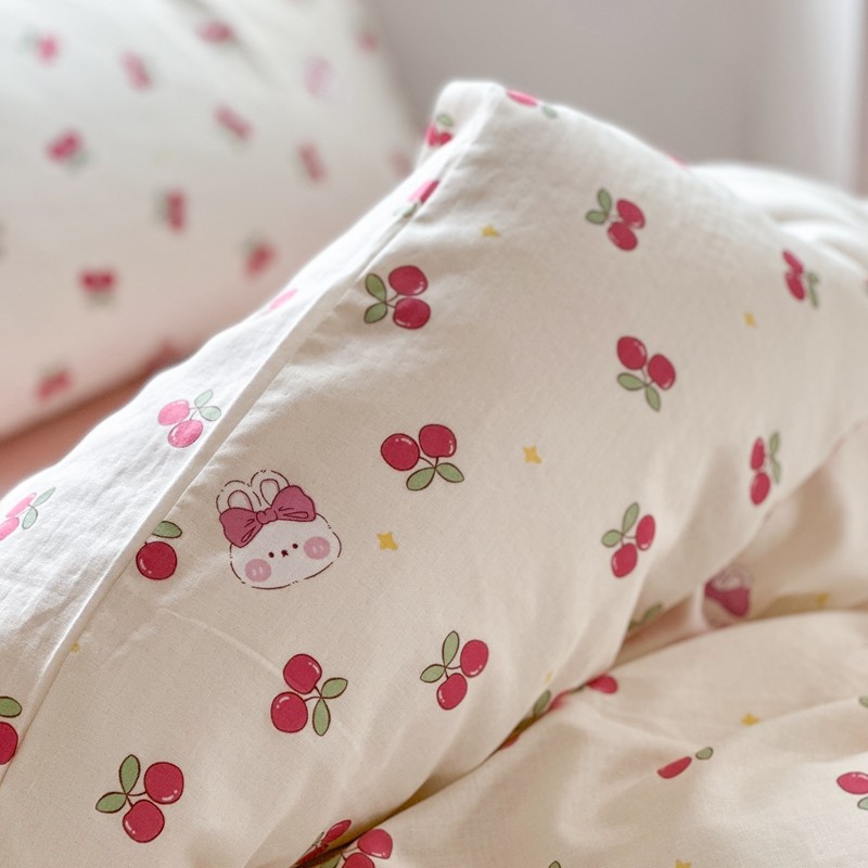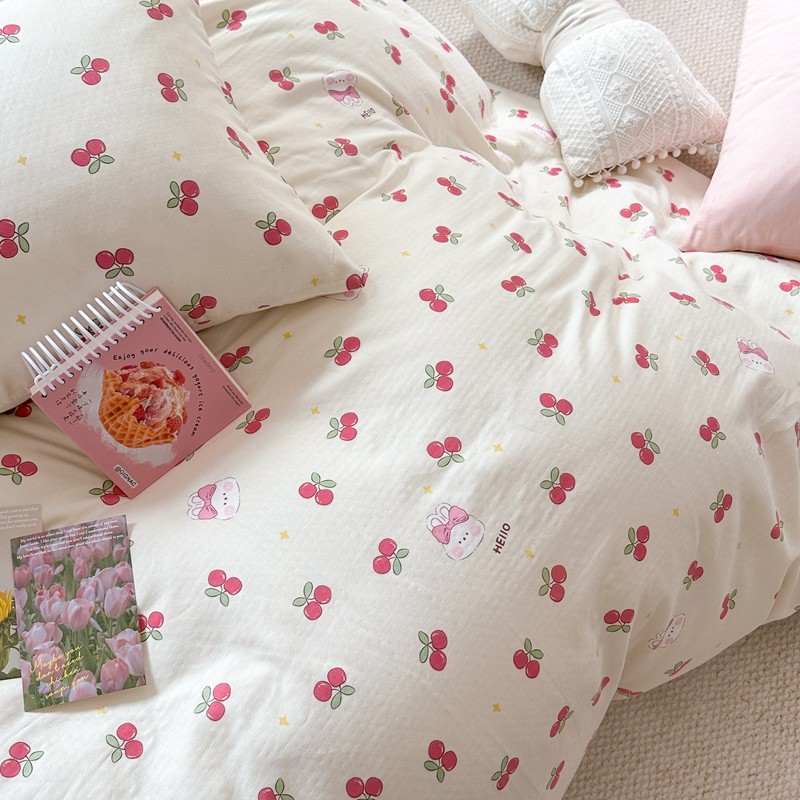 商品名称:时年 2023新款全棉母婴级有氧双层纱夏被四件套 樱桃小兔