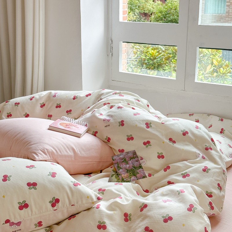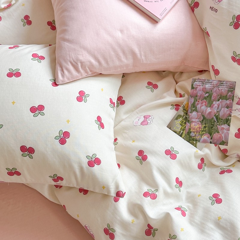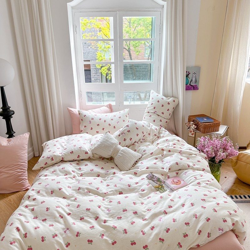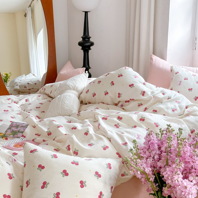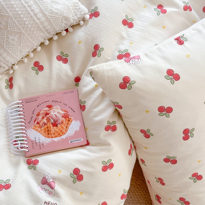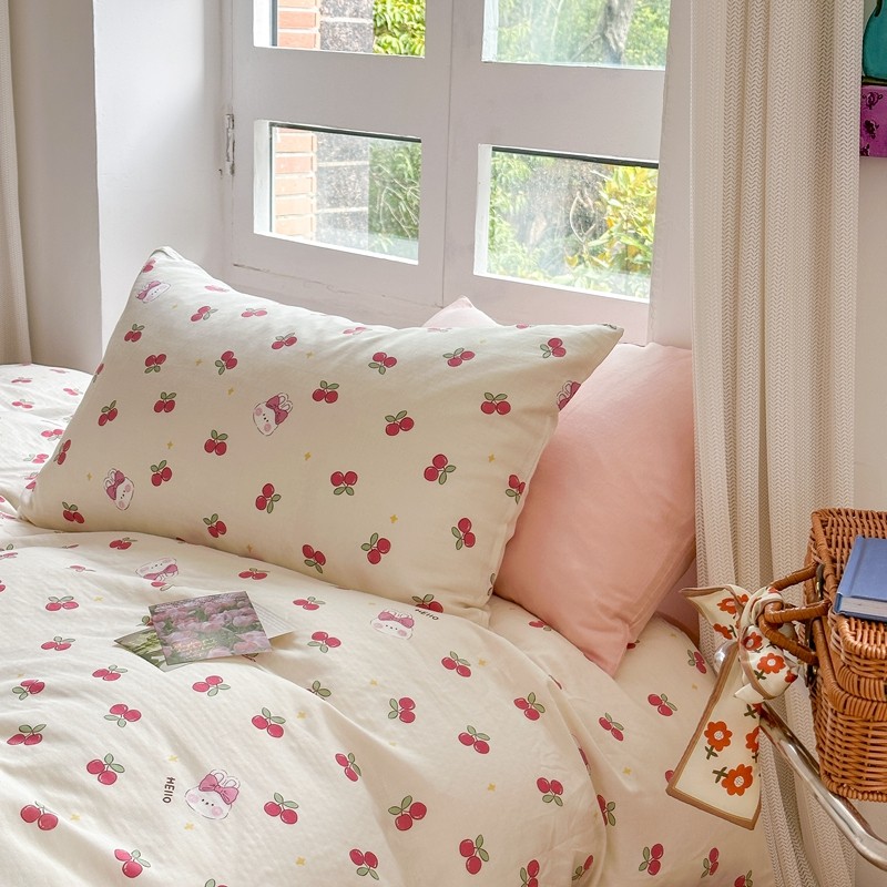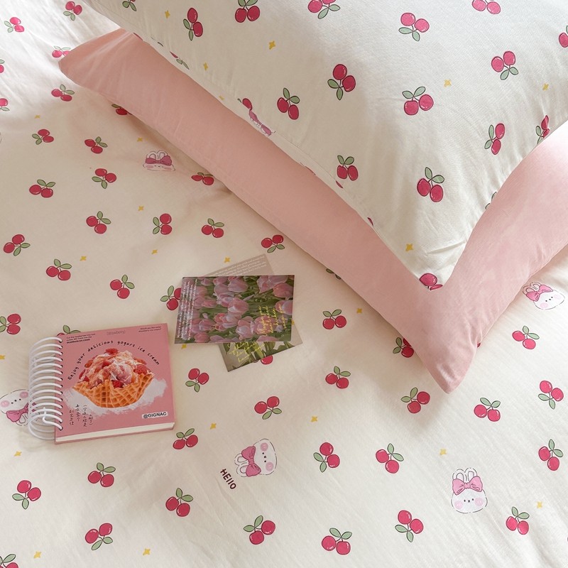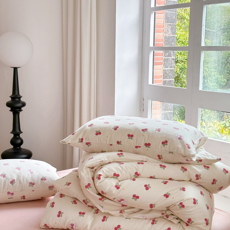 商品名称:时年 2023新款全棉母婴级有氧双层纱夏被四件套 樱桃小兔