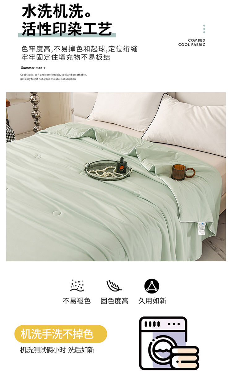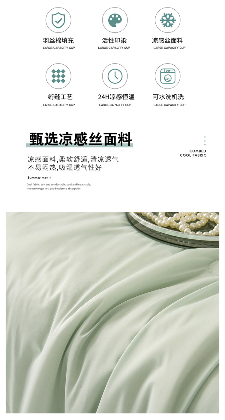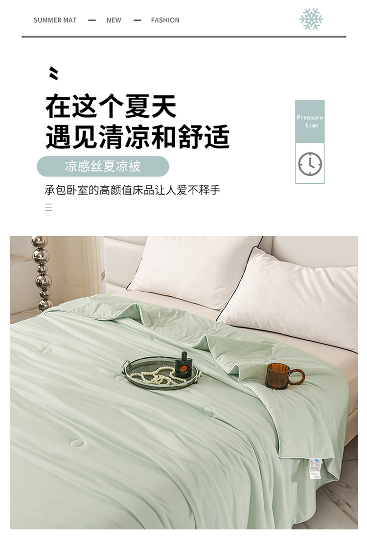 商品名称:恩和家纺 2025新款A类凉感丝冰激凌夏被 淡青绿