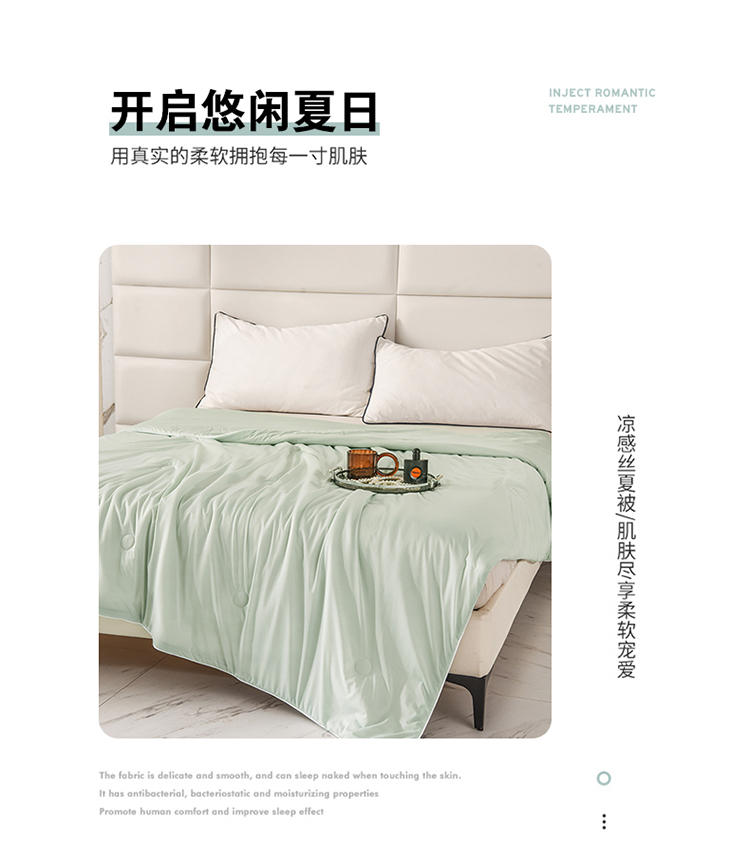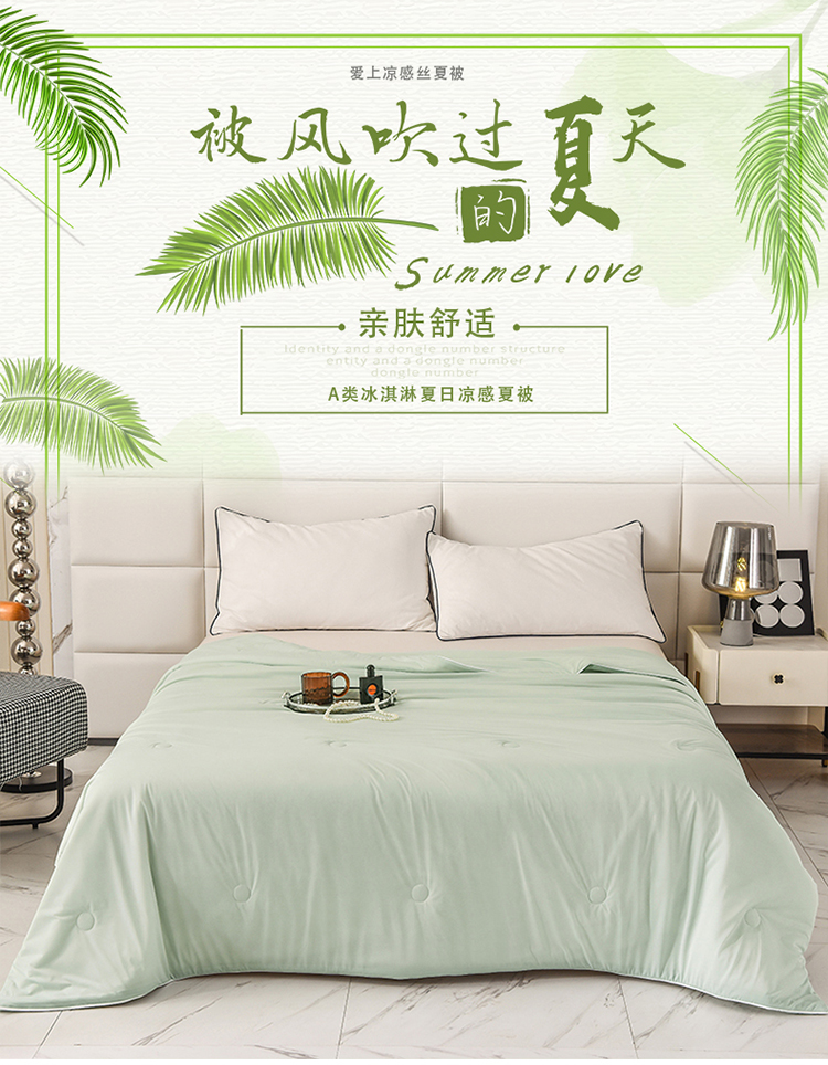 恩和家纺 2025新款A类凉感丝冰激凌夏被 淡青绿