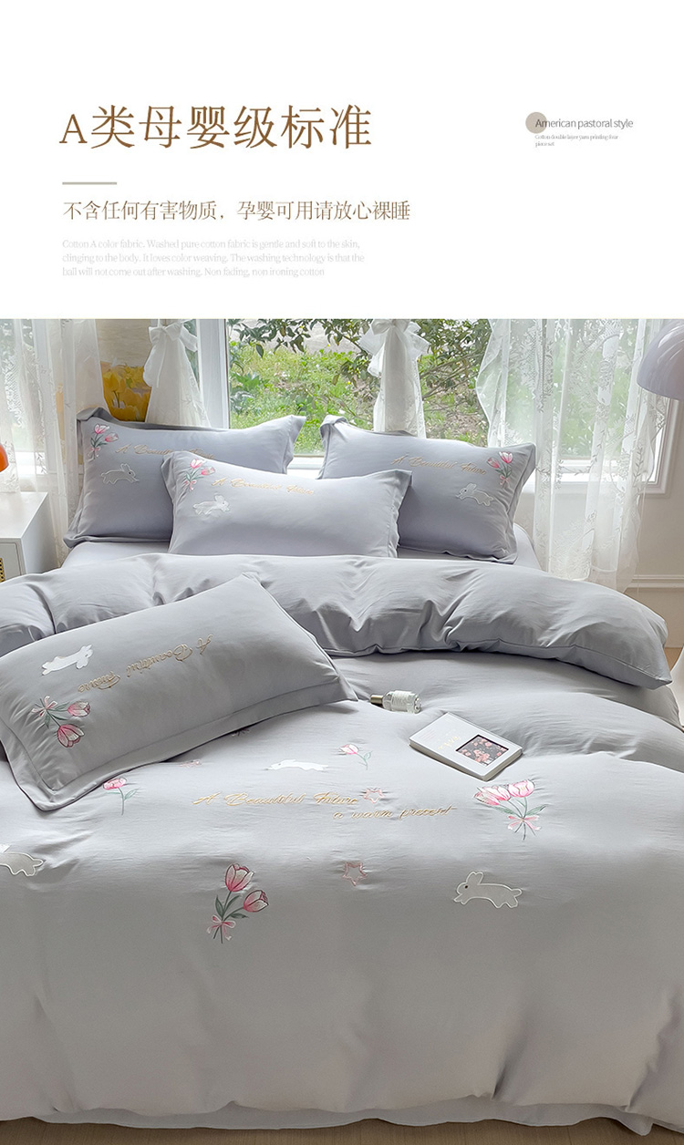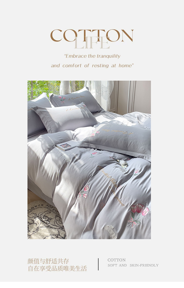 2023春夏新品A类双层纱水洗棉麻四件套-郁金香系列 郁金香-冰川灰