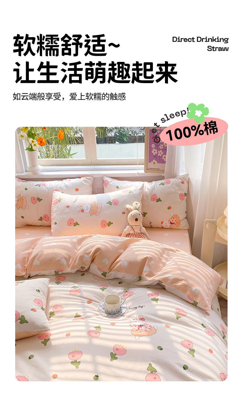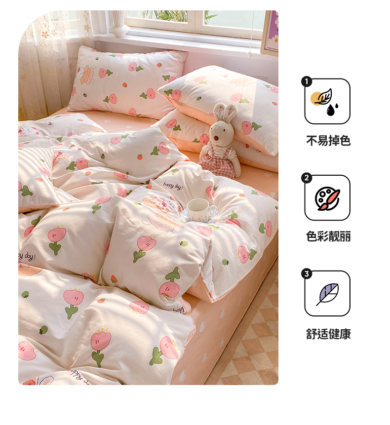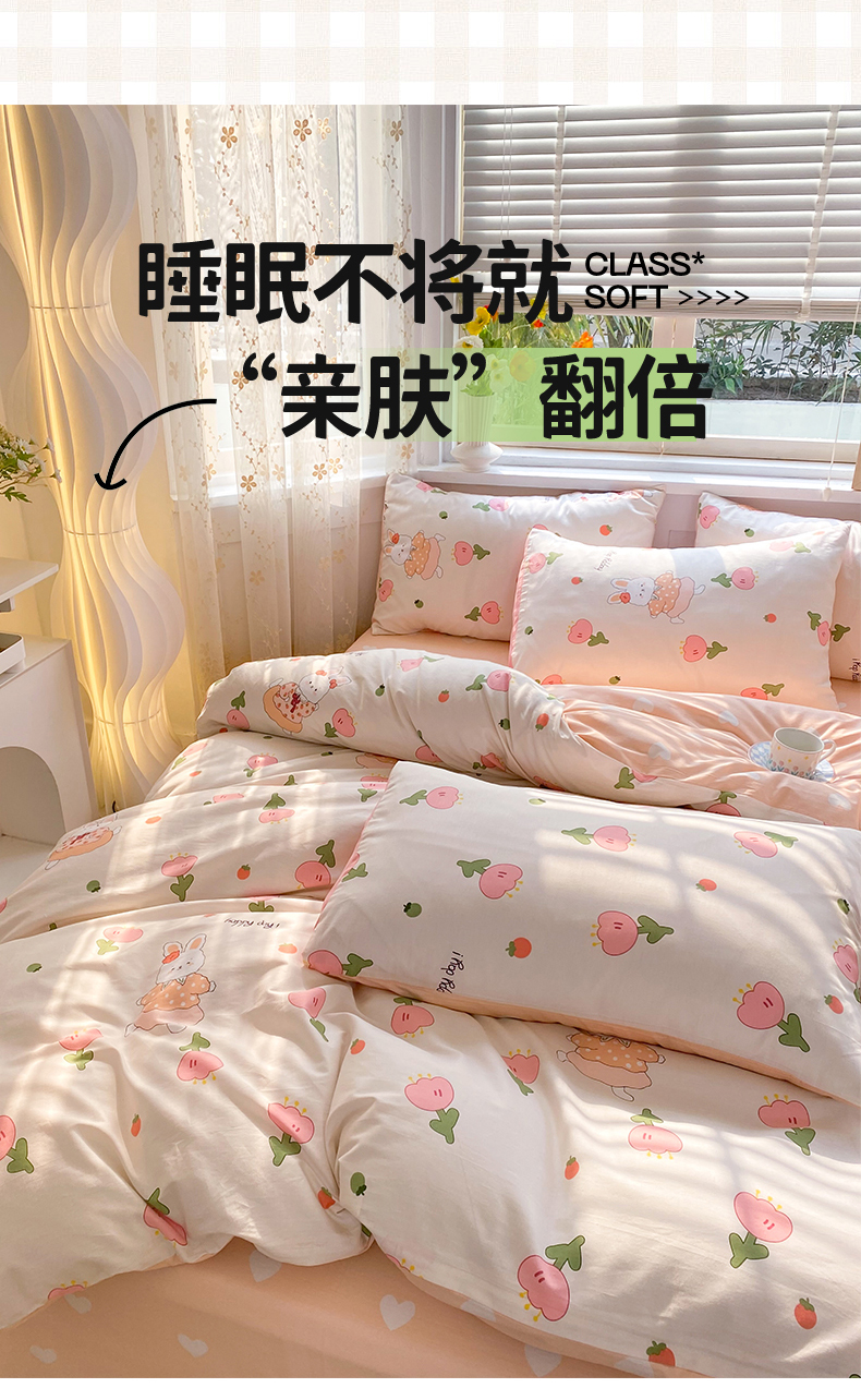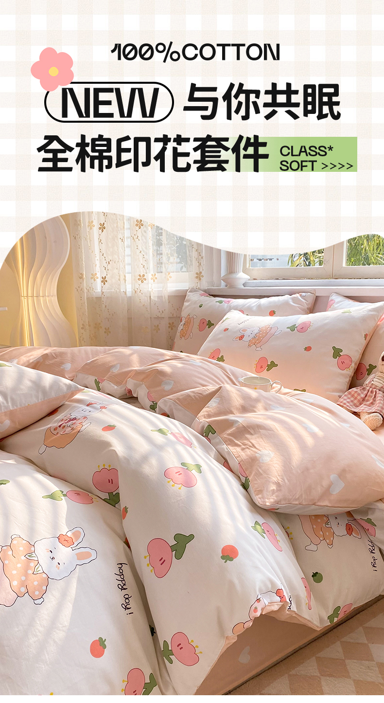 当前位置: 91家纺网 > 商品网购 > 床品套件 > 四件套 > 全棉普通四件套 > 多品家纺 2023新款暗线13070印花全棉四件套 花季兔