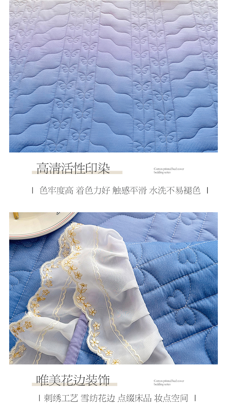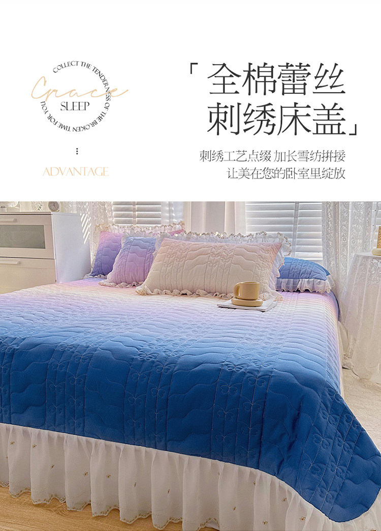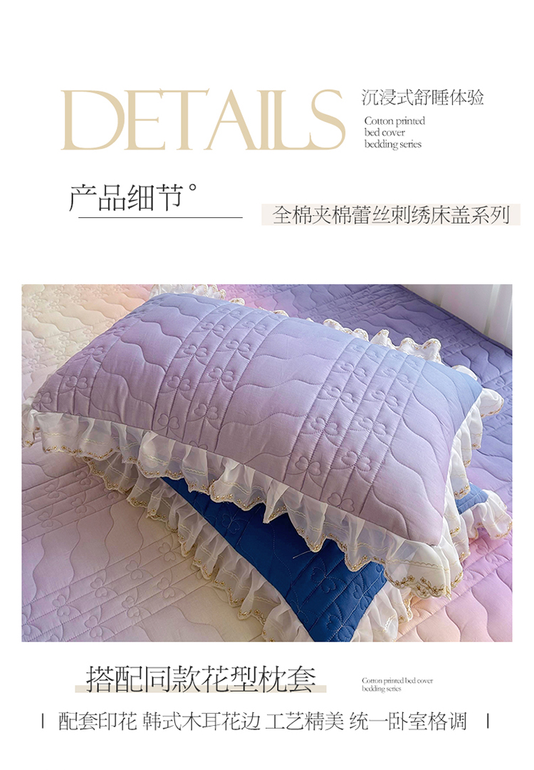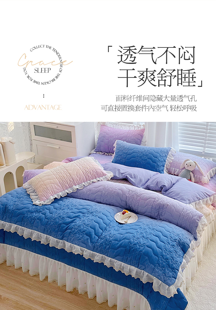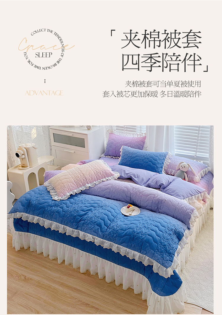 • 91家纺网 家纺一手货源 找家纺  2023新款全棉蕾丝刺绣床盖四件套(夹棉被套) 浪漫紫