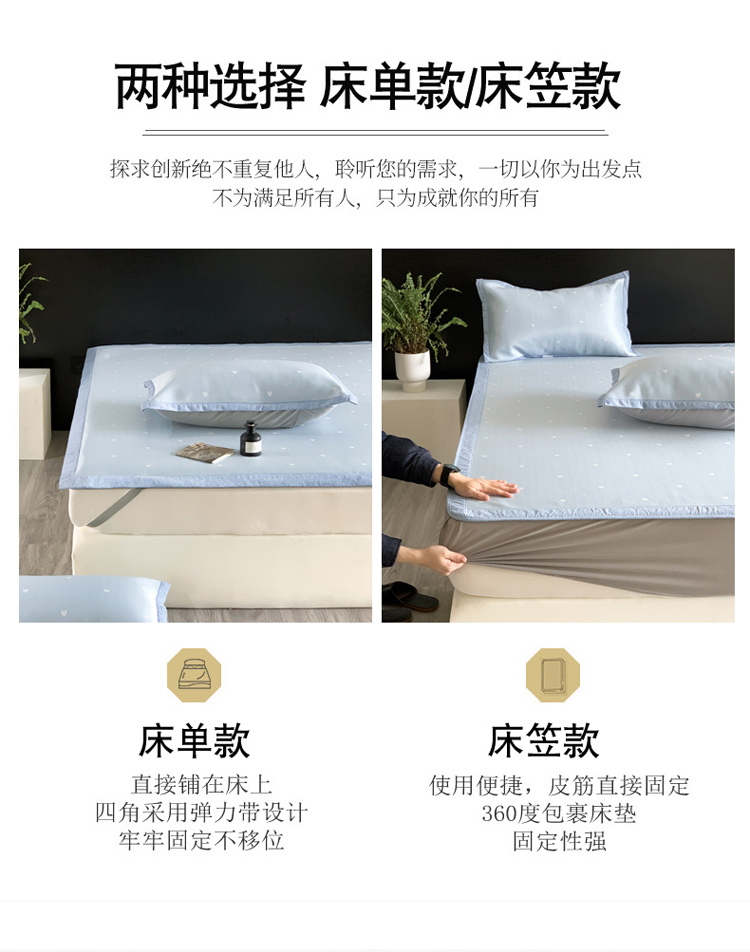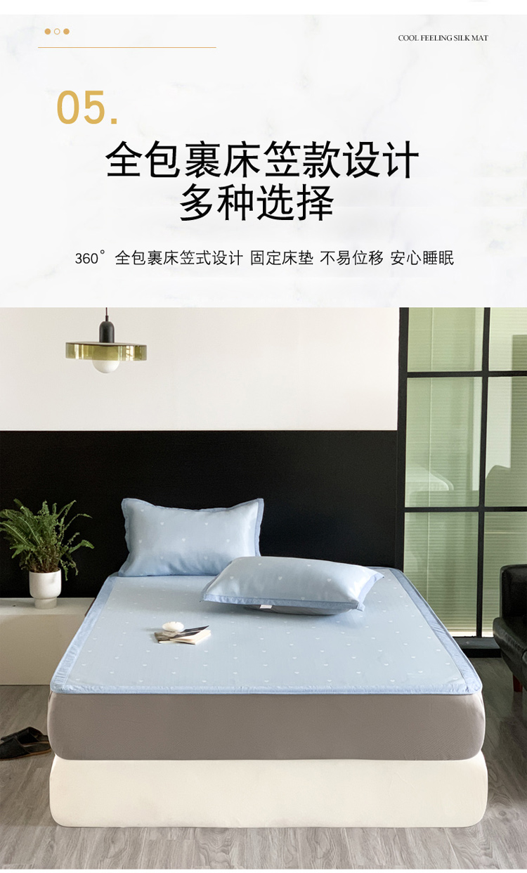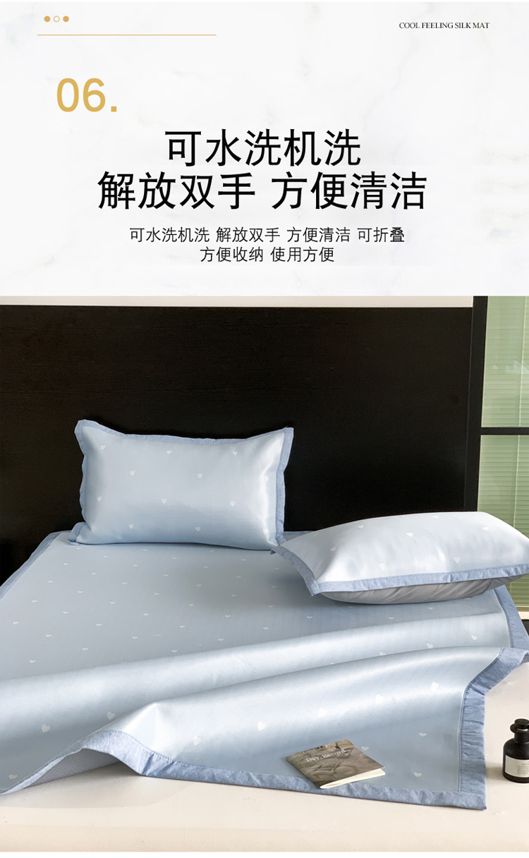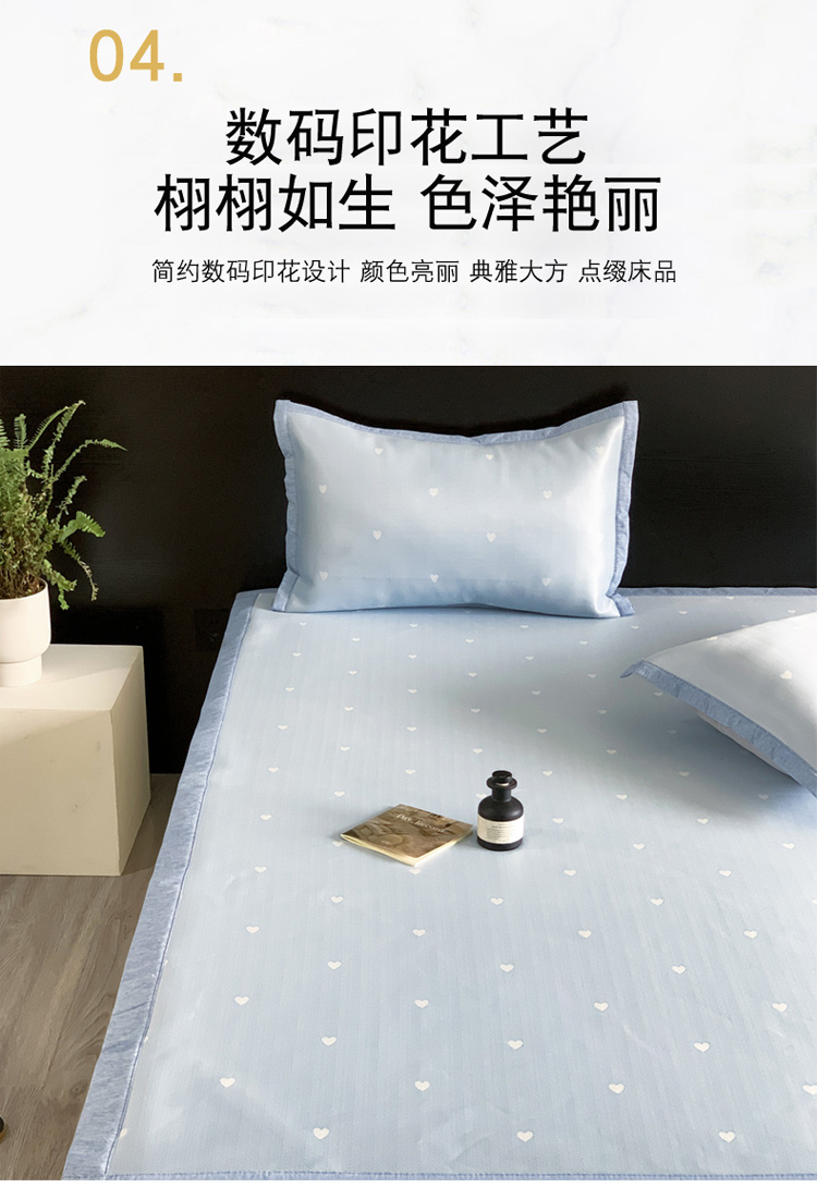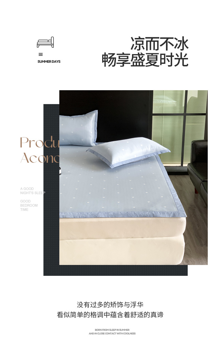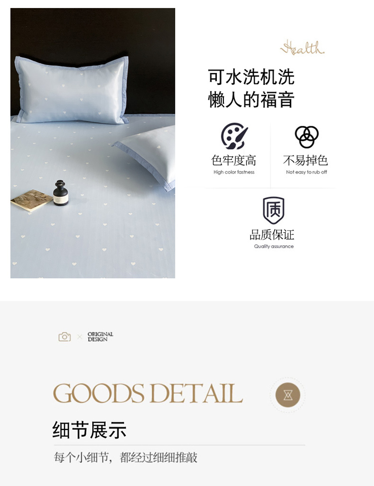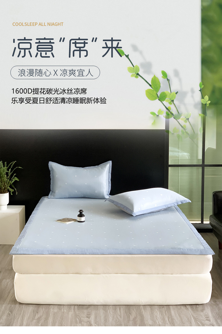 商品名称:沐慕 2023新款提花冰丝席 爱心-浅蓝