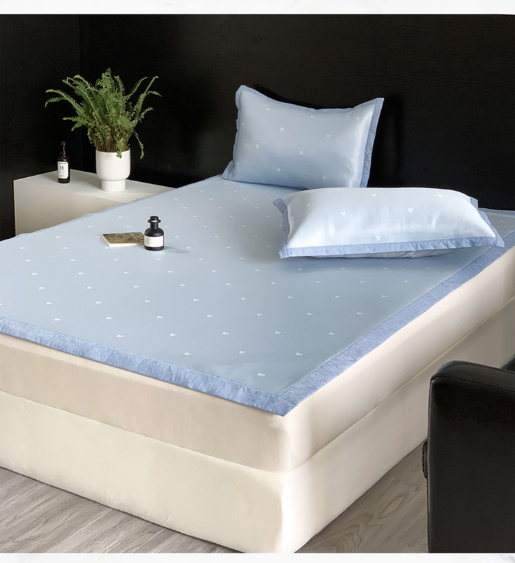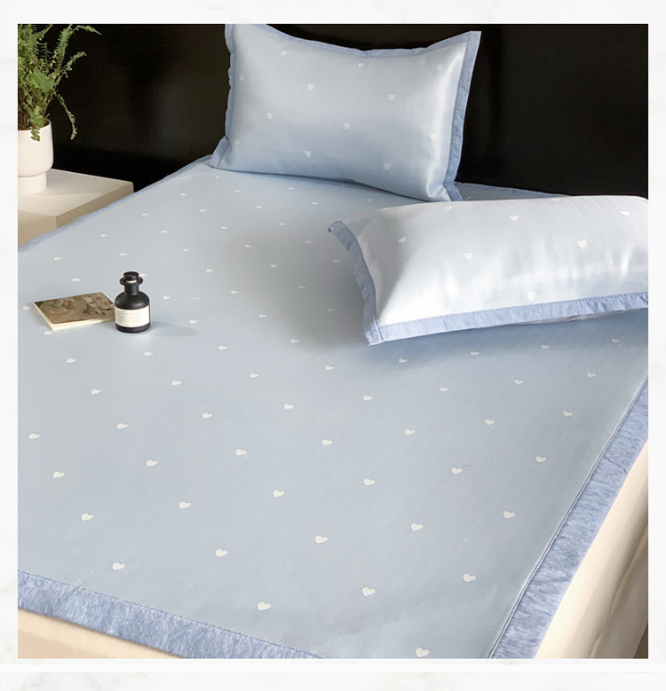 沐慕 2023新款提花冰丝席 爱心-浅蓝